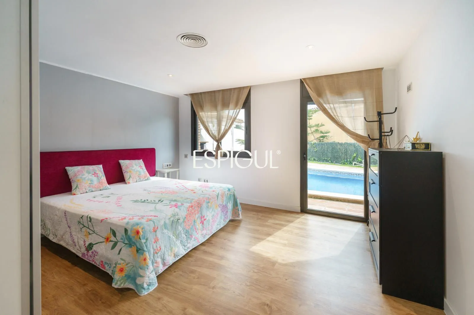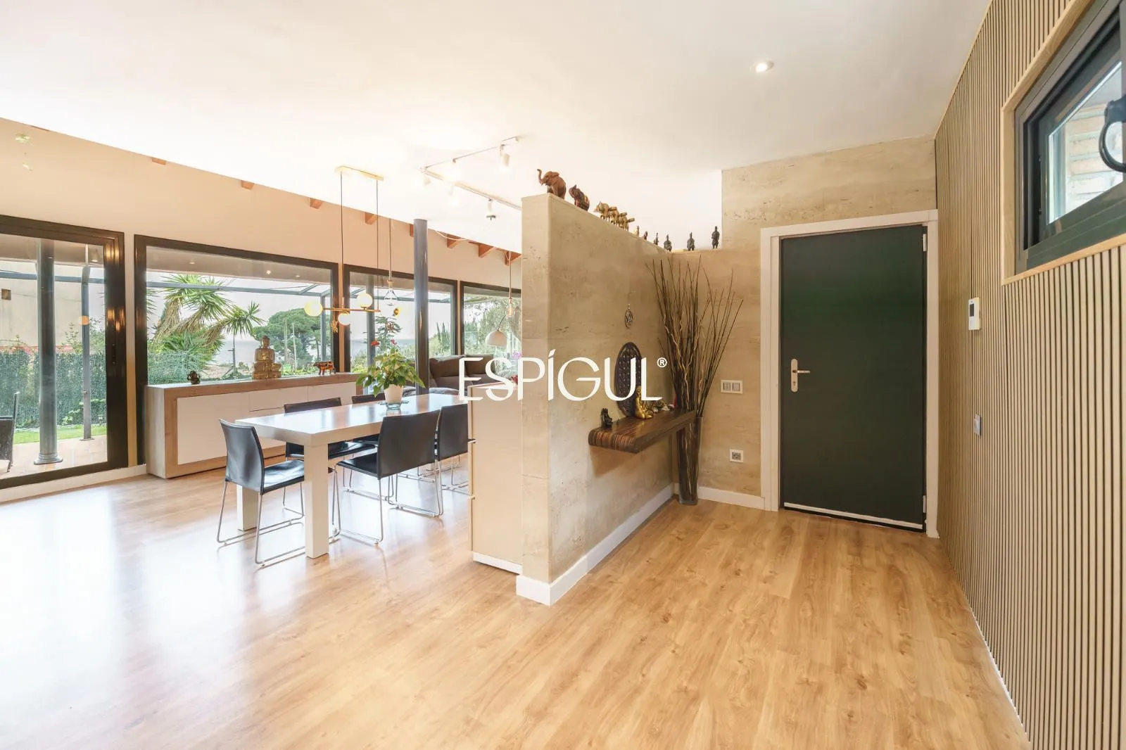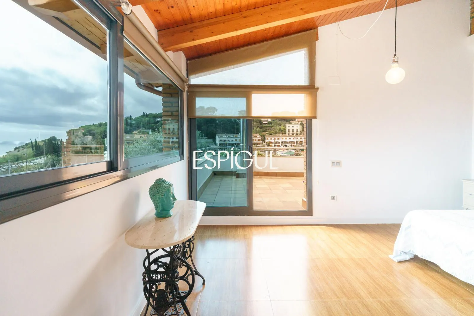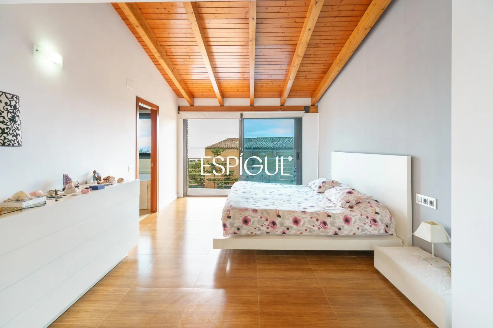 En creuar el llindar, la sensació d’amplitud és immediata. El saló, banyat pel sol, disposa de finestrals panoràmics que integren el paisatge marí a l’interior de la llar. La zona de descans ofereix cinc dormitoris, destacant una Master Suite concebuda com un santuari de pau amb bany privat, a més d’una habitació addicional a la planta baixa, ideal per a visites o com a despatx amb accés directe.