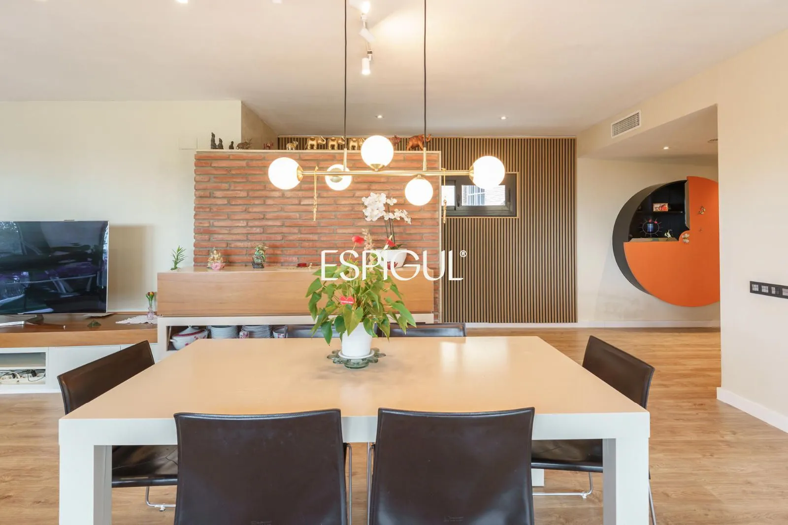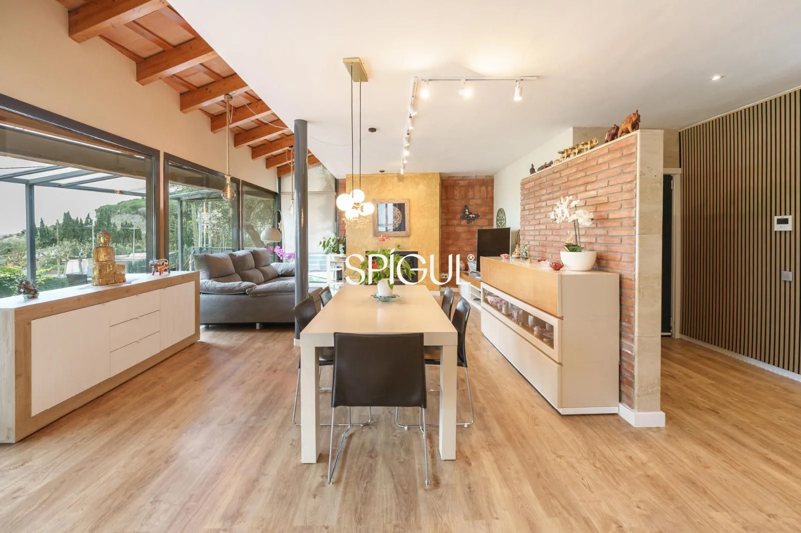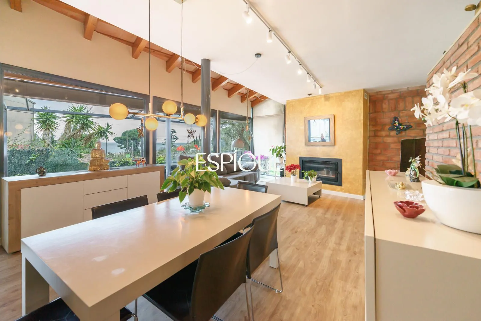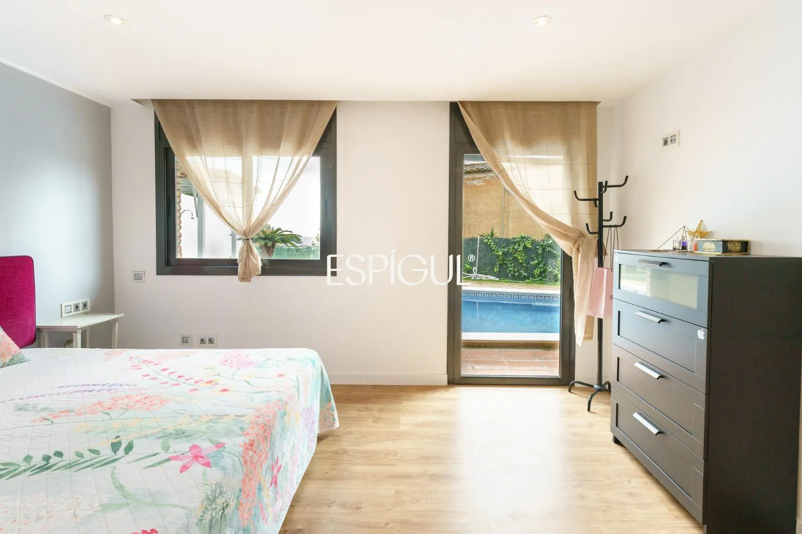 En creuar el llindar, la sensació d’amplitud és immediata. El saló, banyat pel sol, disposa de finestrals panoràmics que integren el paisatge marí a l’interior de la llar. La zona de descans ofereix cinc dormitoris, destacant una Master Suite concebuda com un santuari de pau amb bany privat, a més d’una habitació addicional a la planta baixa, ideal per a visites o com a despatx amb accés directe.