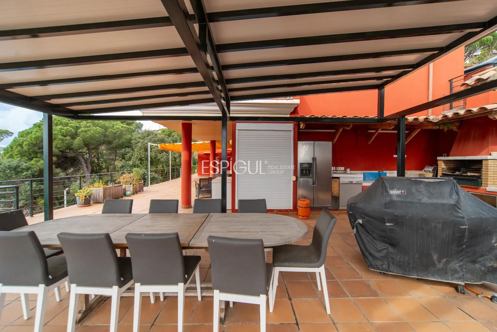 Espectacular casa independent a l’exclusiva urbanització de Mas Semi, a només 5 minuts del centre de Platja d’Aro, a la Costa Brava. Gaudeix d’unes impressionants vistes panoràmiques al mar i a la muntanya en un entorn privilegiat, envoltat de natura i tranquil·litat. L’habitatge compta amb 530 m² útils distribuïts en dues plantes. Des del rebedor, accedim a un ampli i lluminós saló-menjador amb sortida directa a la terrassa, ideal per contemplar el paisatge. Al costat d’aquest espai, hi trobem una cuina independent, completament equipada amb electrodomèstics d’alta gamma. Disposa de 6 habitacions dobles i 5 banys, a més d’una espaiosa zona polivalent, actualment utilitzada com a safareig. A la planta inferior, la casa alberga un garatge tancat amb capacitat per a 3 cotxes i un celler climatitzat. També compta amb gimnàs privat. A l’exterior, el gran jardí amb piscina privada i vistes al mar és perfecte per relaxar-se. A més, la zona de barbacoa i la cuina exterior totalment equipada converteixen aquest espai en un lloc ideal per a reunions i celebracions. La finca està acuradament aprofitada, incloent-hi arbres fruiters i un hort. Per a major eficiència energètica, la propietat està equipada amb plaques solars. Si desitges més informació, no dubtis a contactar-nos o visitar-nos a la nostra oficina a l’Avinguda de la Pau, Platja d’Aro. T’hi esperem!