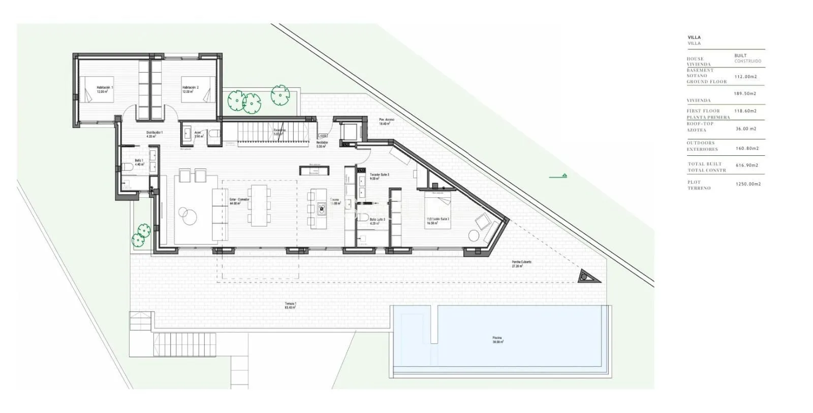 - Construïts 616 m2