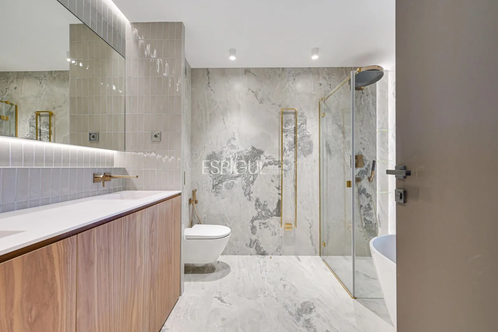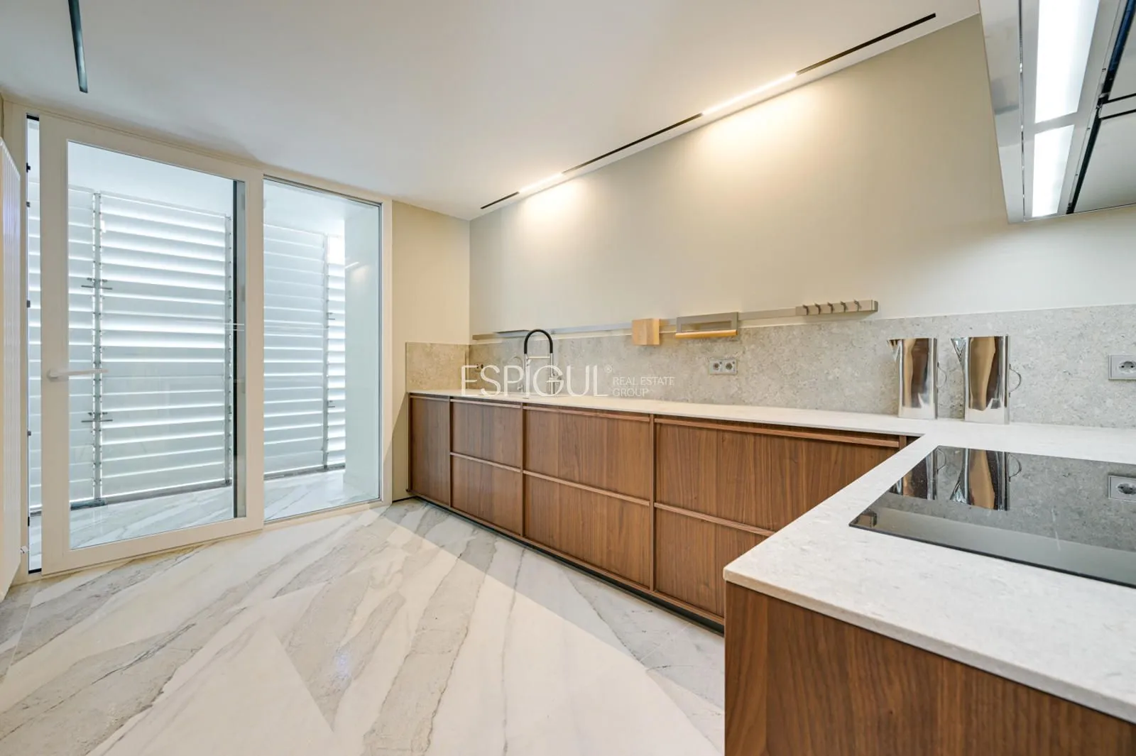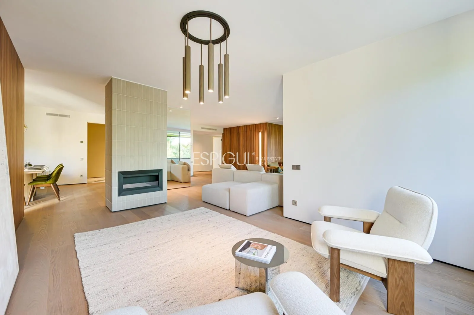 El saló-menjador, dividit en dos ambients, es converteix en el cor de la llar, amb sortida directa a una agradable terrassa privada amb vistes al jardí comunitari. El menjador incorpora una vinoteca integrada de disseny, ideal per als amants del vi i la gastronomia. La cuina independent, de línies netes i estil funcional, està completament equipada i des d’ella, s’accedeix a una pràctica zona d’aigües amb galeria. La vivenda alberga cinc dormitoris amb armaris encastats, entre ells una suite amb bany complet i vestidor. Es completa amb dos banys addicionals i un lavabo de cortesia.