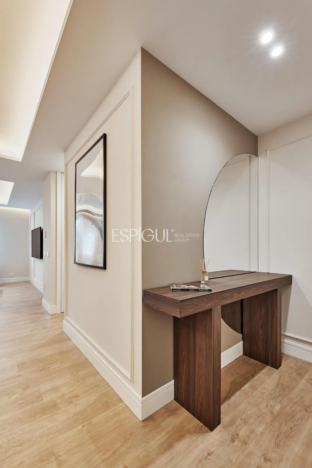 Ubicat a Francisco Silvela, una de les artèries més exclusives del Barri de Salamanca, hi ha aquest pis de luxe de 213 m², dissenyat per als que busquen un estil de vida distingit, sofisticat i contemporani. La propietat, situada en una finca representativa amb servei de porteria, ha estat reformada íntegrament amb materials de la més alta qualitat, cuidant cada detall per oferir una llar elegant i funcional. Es lliura moblada, amb peces de disseny que aporten caràcter, equilibri i harmonia a cada estança.