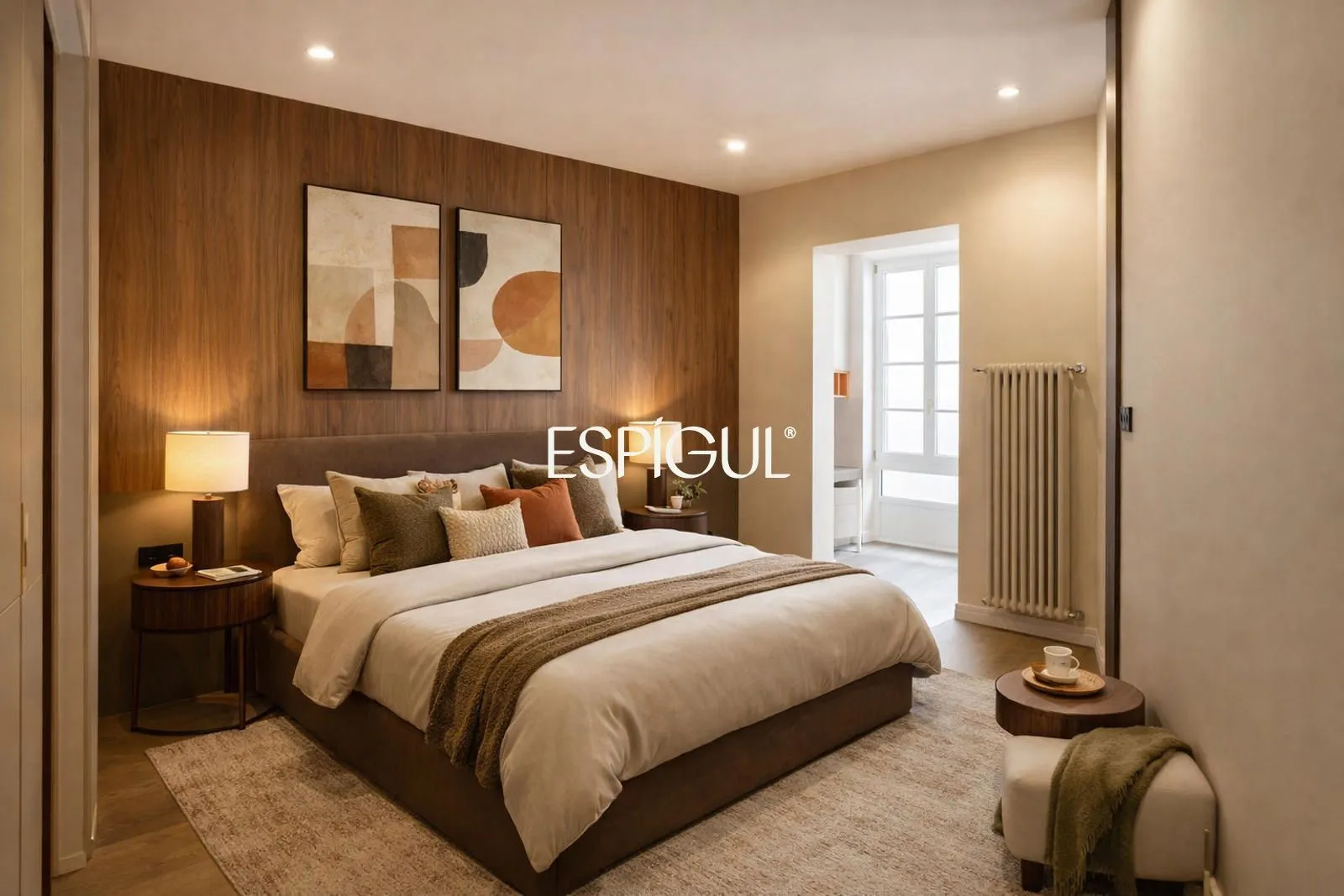L’habitatge, de doble orientació, ofereix espectaculars vistes a la Sagrada Família. Ha estat acuradament renovat, preservant elements originals com les motllures, la volta catalana i els terres hidràulics, que conviuen en harmonia amb materials de primera qualitat i un disseny contemporani.