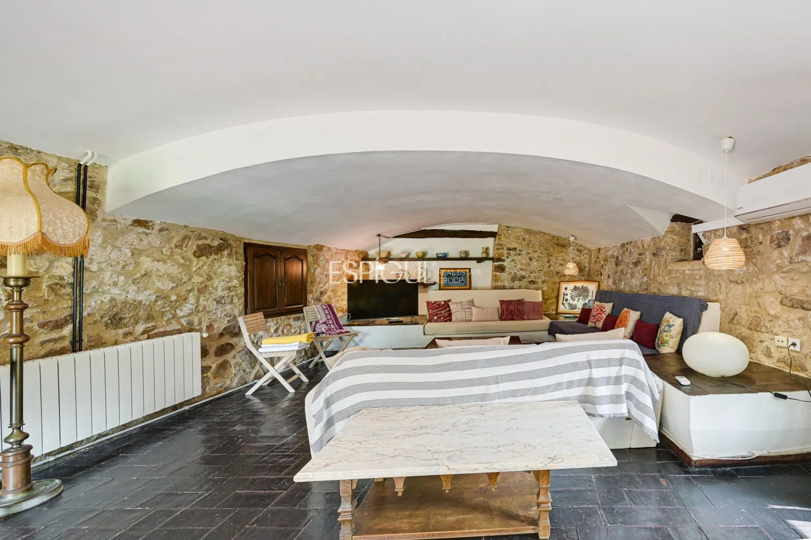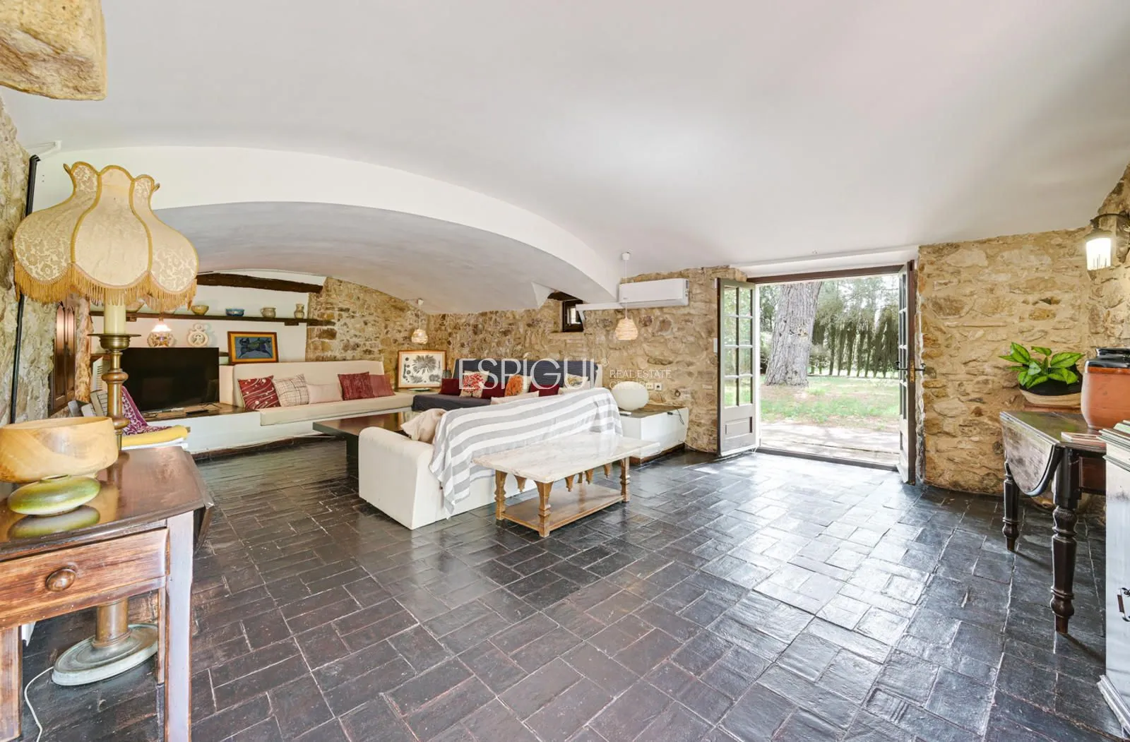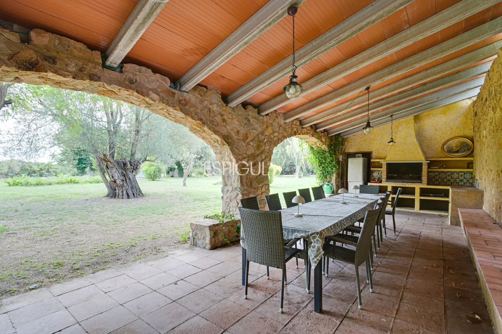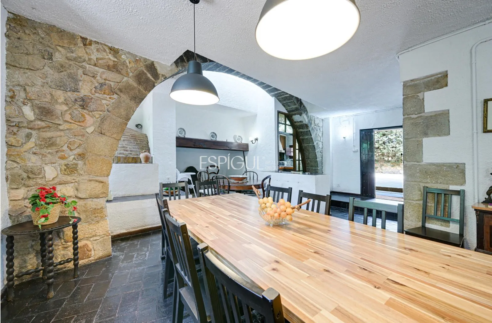 Aquesta masia del segle XVII, oficialment protegida pel seu valor històric, conserva l’encant de la seva època original sense renunciar a les comoditats actuals. La casa principal compta amb uns 600 m² construïts i s’assenta sobre un terreny pla de 14.000 m², on també s’inclouen un porxo cobert de 80 m², una construcció auxiliar de 40 m² i zones enjardinades amb oliveres centenàries. Al seu interior es mantenen elements únics com un arc de pedra medieval, un forn antic, xemeneies restaurades fidels a les originals, murs de gran gruix i detalls que evoquen el seu passat defensiu.