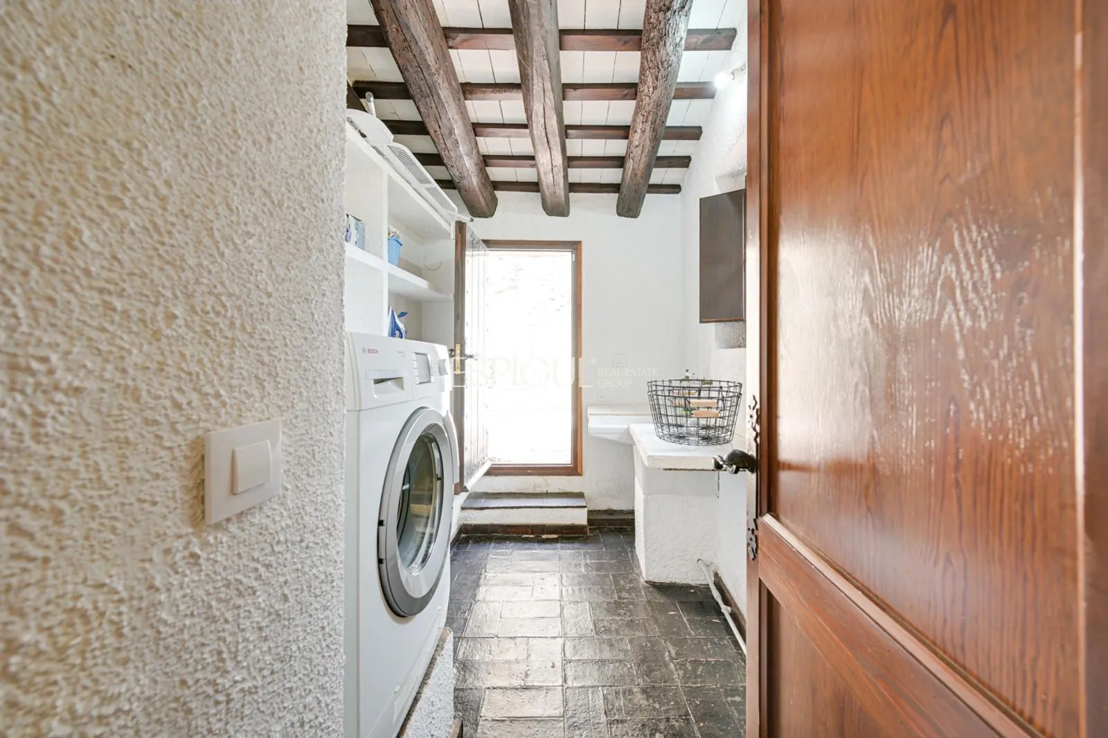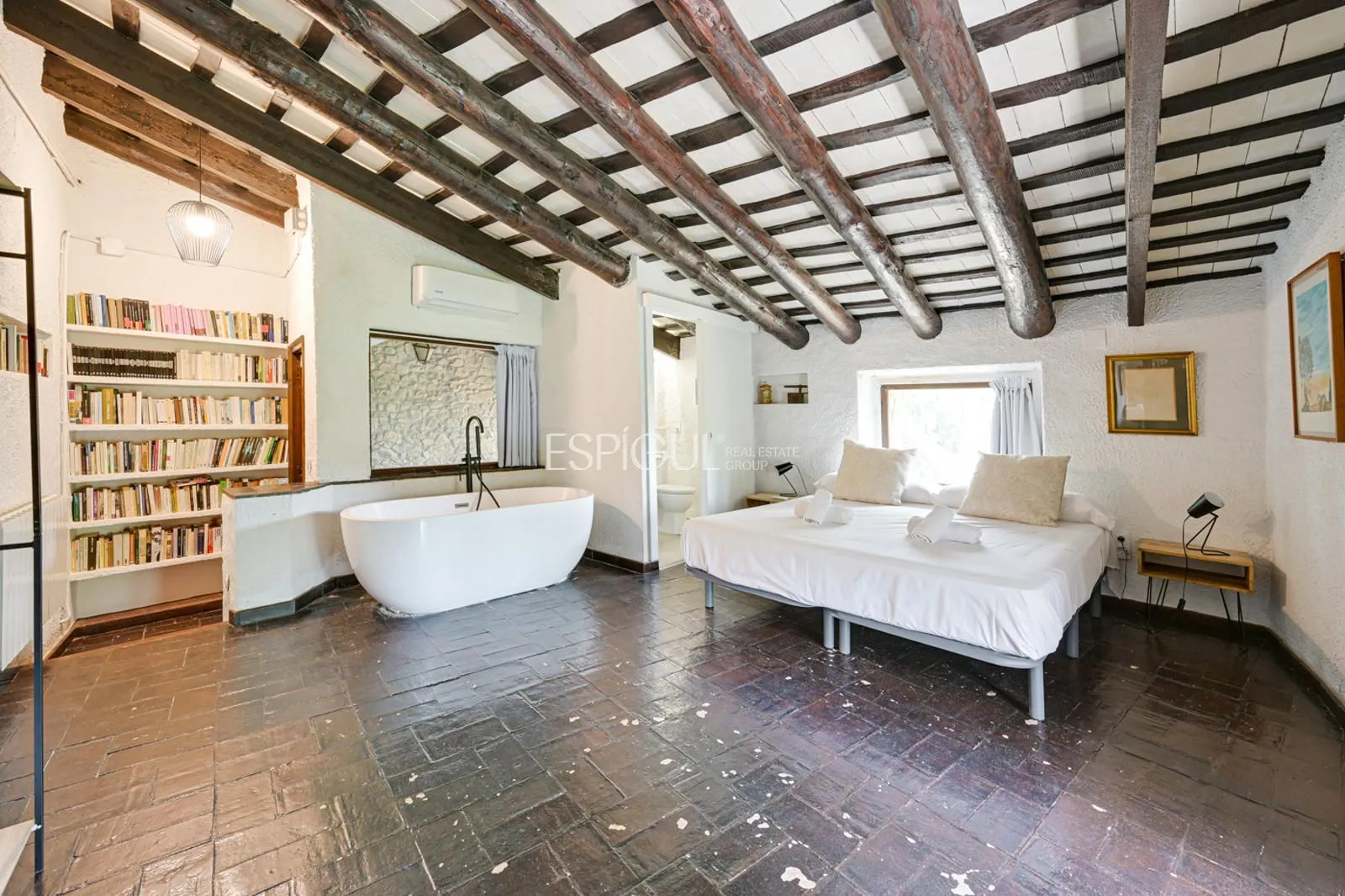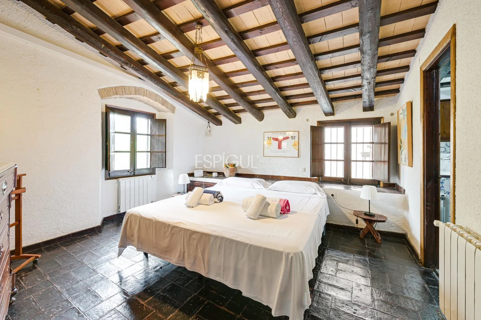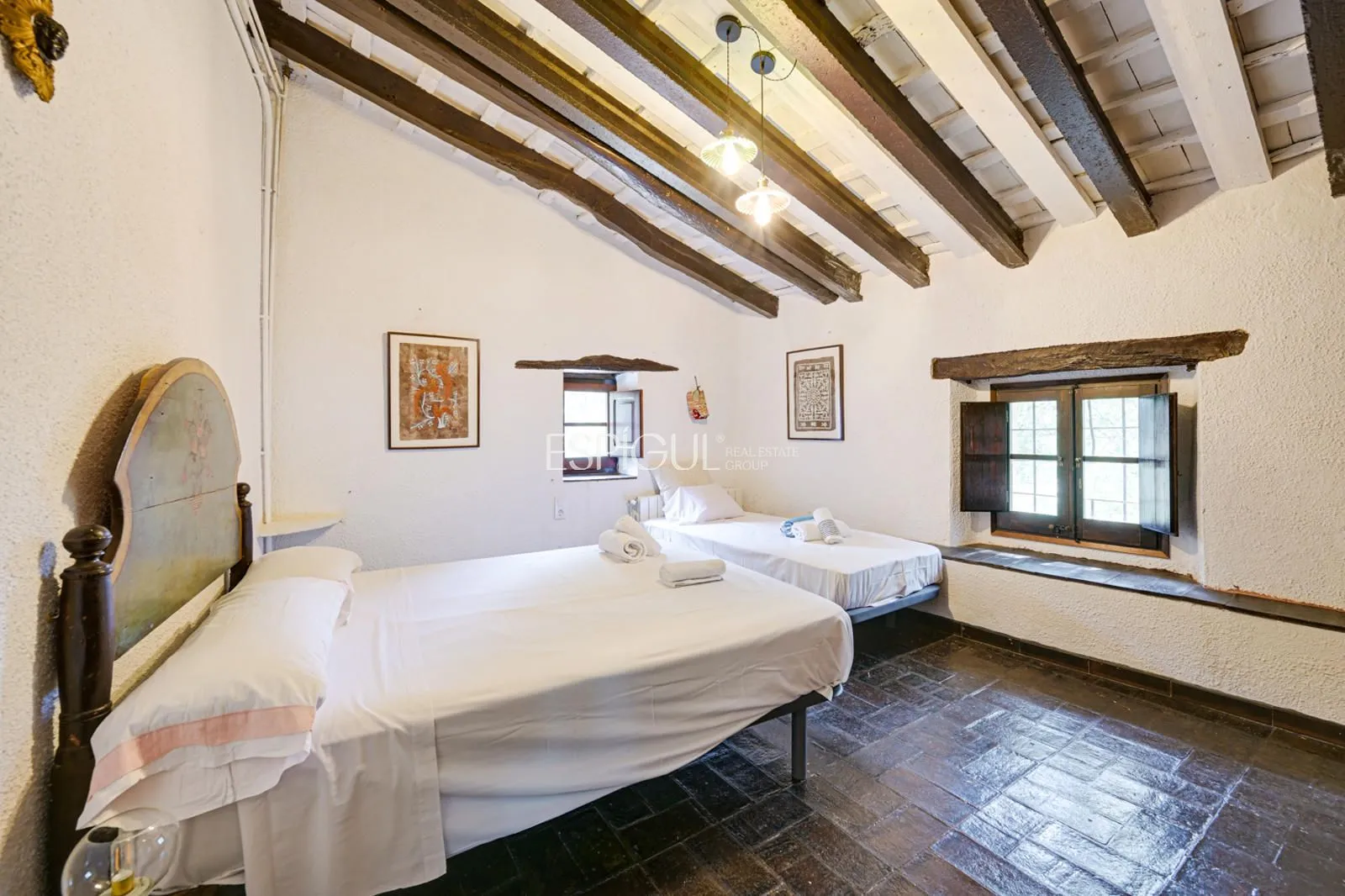 L’habitatge ofereix espais amplis i funcionals: diverses sales amb xemeneia, cuina independent, dormitoris en suite, zona de lectura, safareig amb accés directe al jardí i garatge. A l’exterior destaquen la piscina de 6 x 12 metres, un estany ornamental, terrasses espaioses i un pou artesà encara en ús, que completen un entorn pensat per gaudir en total privacitat. La finca disposa d’electricitat, calefacció, aigua pròpia i connexió a internet, la qual cosa permet viure amb totes les comoditats modernes en un entorn amb una forta identitat històrica.