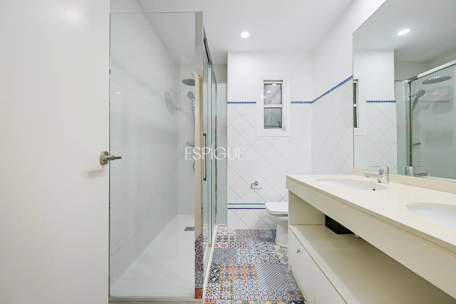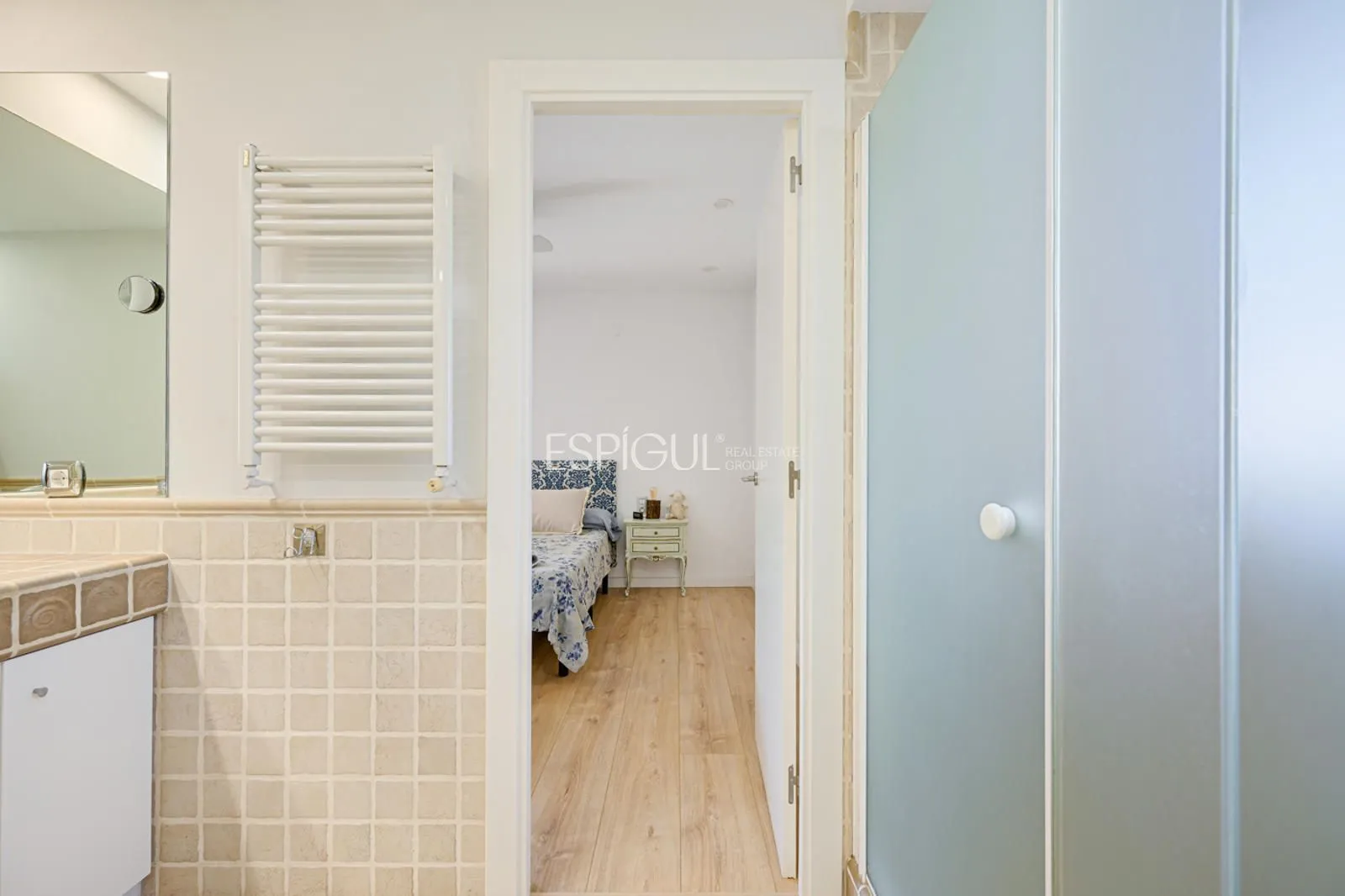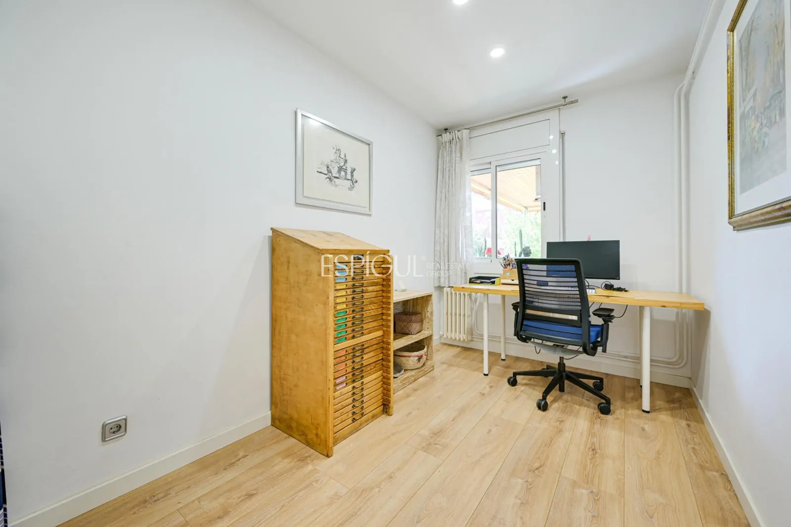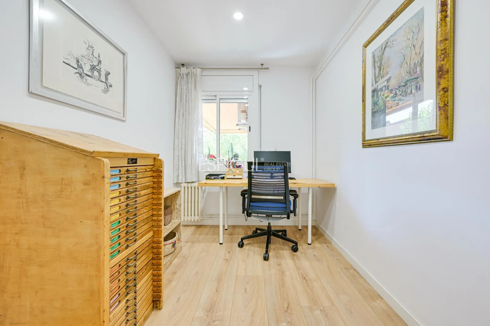 En accedir-hi, un ampli rebedor ens condueix a la zona de dia, on trobem un elegant saló-menjador amb llar de foc i sortida directa a una terrassa de 20 m², perfecta per gaudir de moments de relax. Davant del saló hi ha un bany complet amb dutxa, recentment reformat, ideal també com a bany de cortesia. La cuina, totalment equipada i amb espai office, disposa de sortida a una galeria exterior ventilada amb punt d’aigua. Al costat de l’entrada, un dormitori actualment habilitat com a despatx ofereix la possibilitat de convertir-se en una habitació individual.
