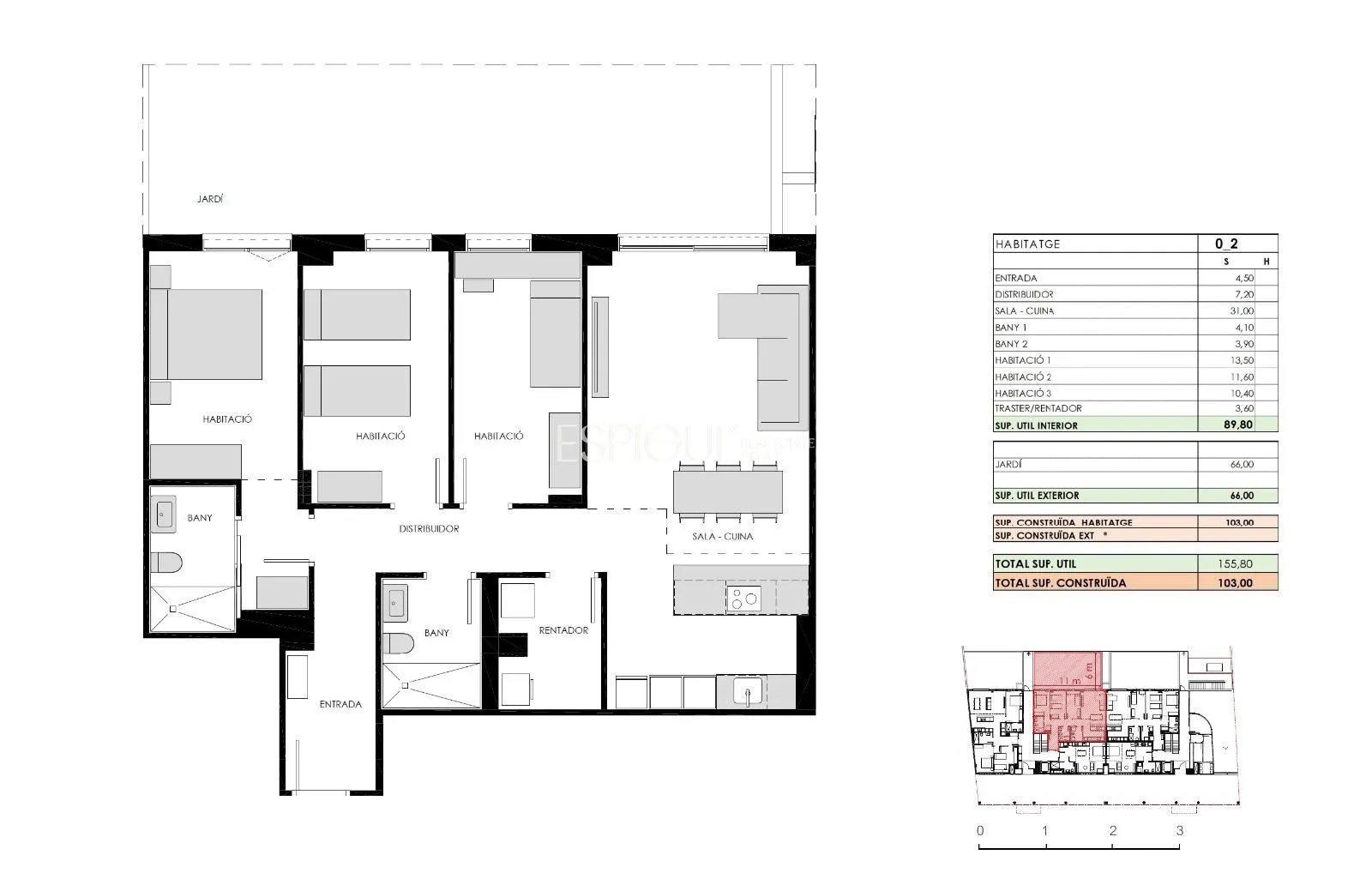 Tots els pisos de 3 i 4 dormitoris disposen de jardí i/o terrassa privada de grans dimensions, oferint així una experiència encara més exclusiva als nostres clients. Compten amb acabats d’alta qualitat, seguint l’estàndard habitual d’Espígul, una de les promotores més reconegudes de Catalunya, amb més de 35 anys d’experiència en el sector de la construcció.