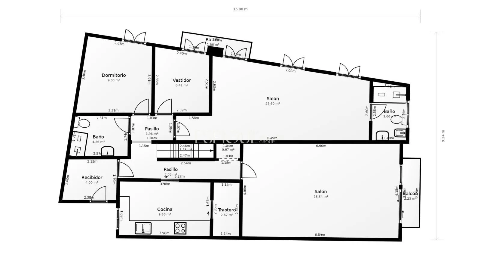 En accedir a l’habitatge, ens rep un ampli i lluminós saló-menjador amb sortida directa a un balcó exterior, ideal per gaudir del pols de la ciutat. La planta principal es completa amb una cuina office totalment funcional, dos dormitoris addicionals, un bany complet i una impressionant suite principal que disposa del seu propi bany privat, oferint un refugi de confort absolut.