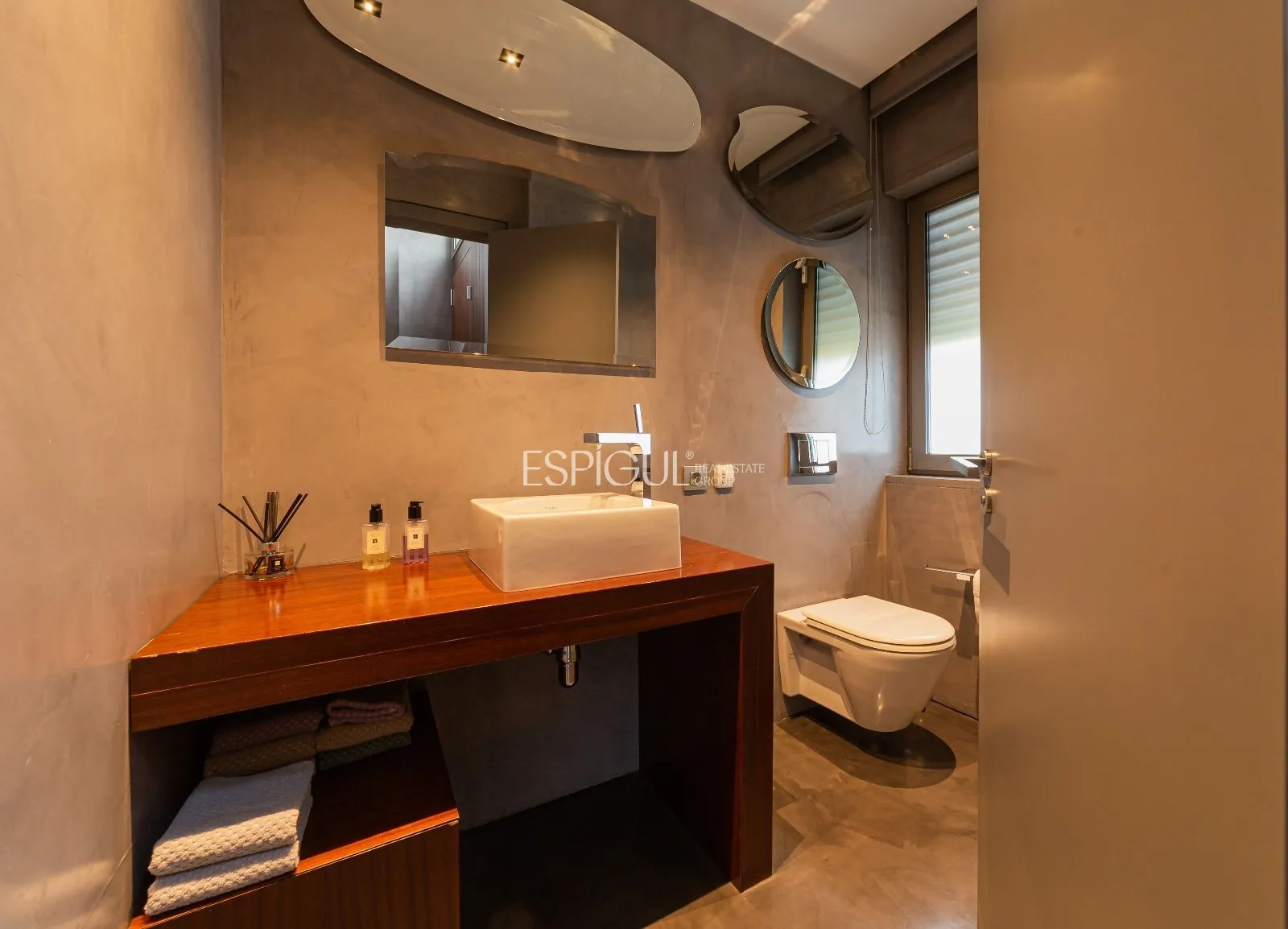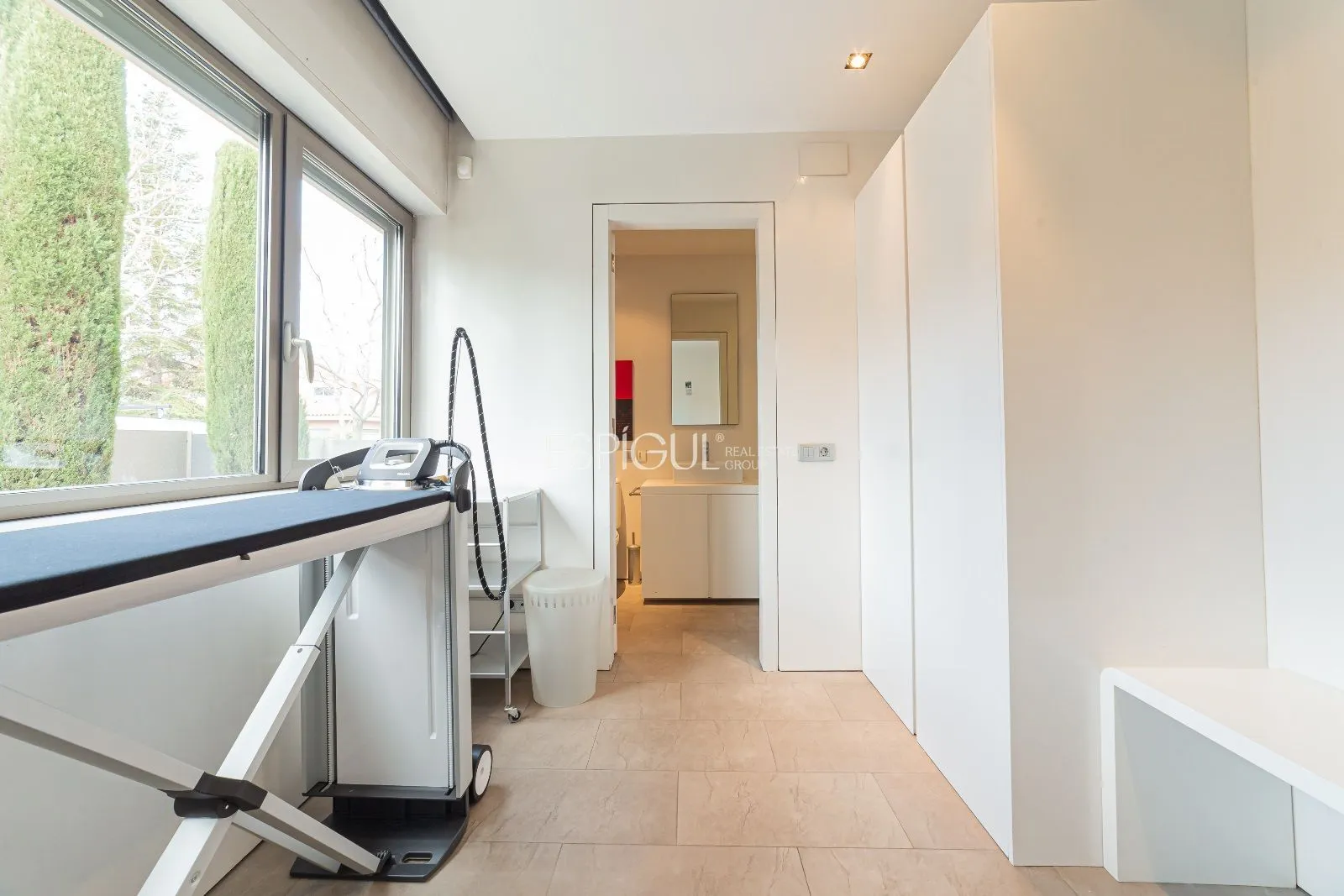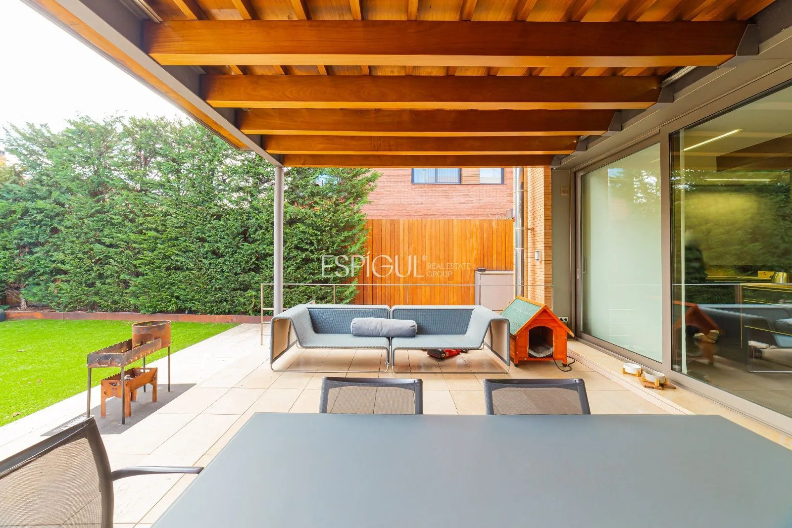 La parcel·la disposa d’un pou d’aigua natural connectat al reg automàtic, per la qual cosa el consum d’aigua per al reg del jardí és nul. Realitzada per l’arquitecte Albert Artigas i l’interiorisme ha estat realitzat per la prestigiosa dissenyadora, Estrella Salietti, amb mobles i equipament de les millors marques de luxe i disseny com Cassina, Natuzzi, Kartell, Bulthap, Gaggenau, Fontana Arte, Axor Stark Hansgrove, Duravit, Ritmonia, combinant amb acabats de microciment gris amb calefacció radiant. Fusteria Technal de primera gamma d’alumini anoditzat de color gris amb trencament de pont tèrmic, vidre tèrmic i cambra d’aire. Les persianes són d’alumini enrotllables amb lames orientables o persianes corredisses de lames de fusta per a exterior.