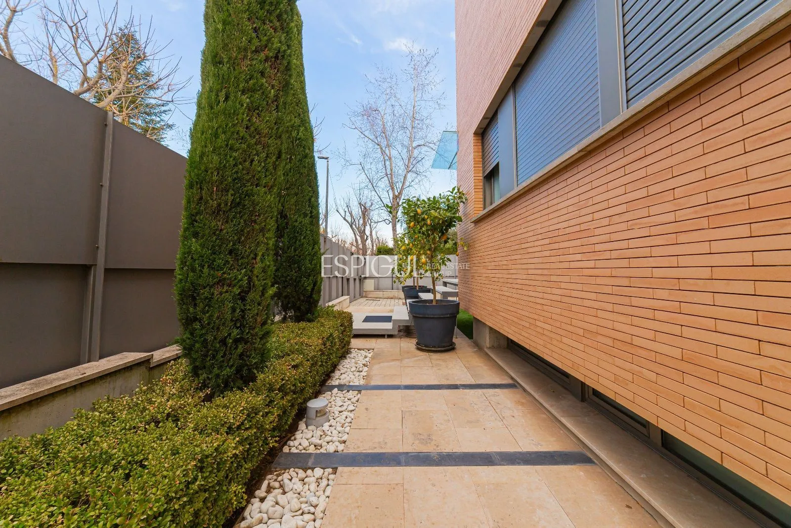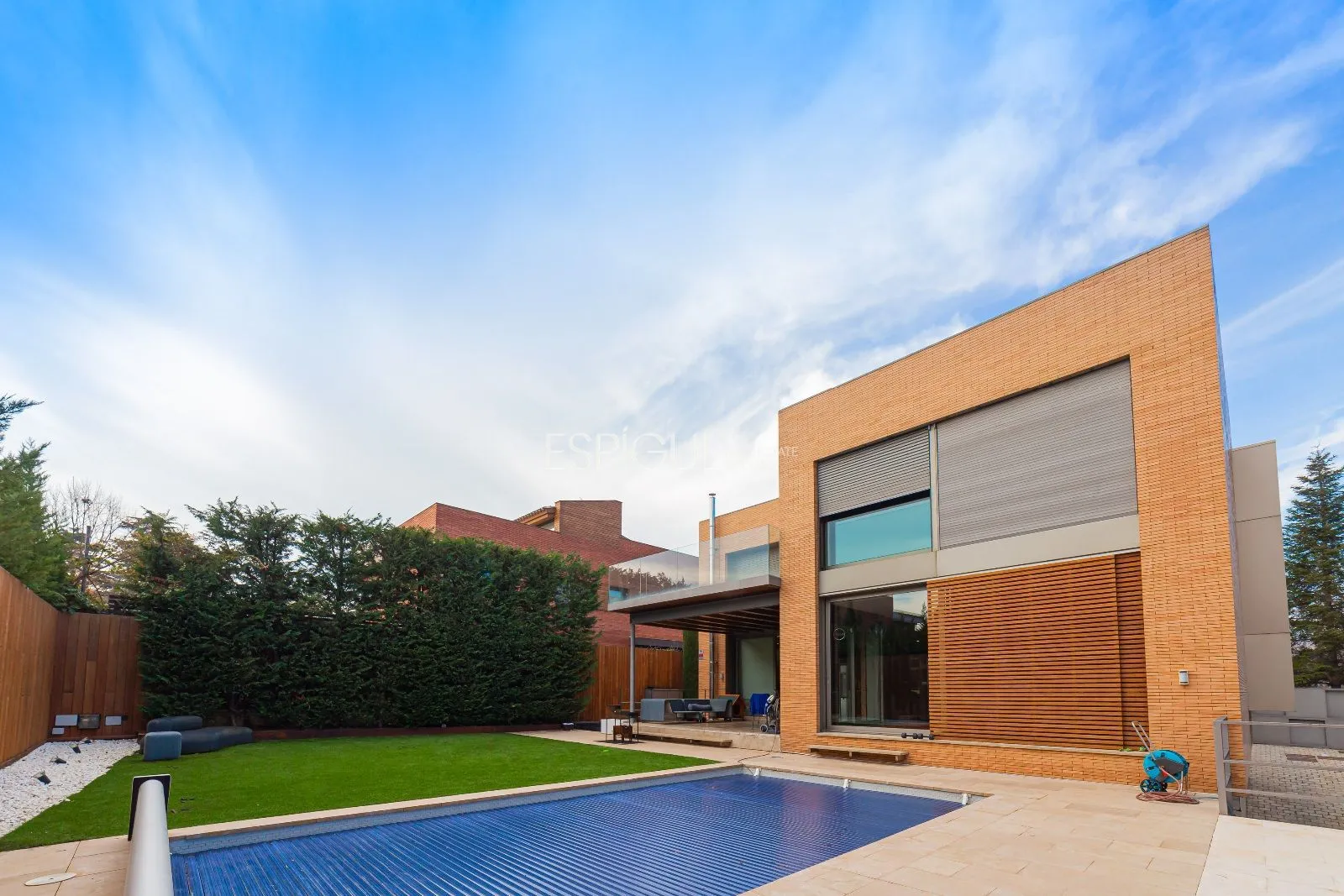 És un xalet cantoner de somni de 550m², independent en una zona residencial de luxe, orientació sud i dissenyat a quatre vents, façana cúbica de dues plantes lleugerament aixecades del terreny, generant una tercera planta que aconsegueix una considerable il·luminació natural, i aportant sensació de levitació i lleugeresa. Façana de maó massís de cara vista, amb el més alt nivell d’estalvi energètic. Envoltat de dos jardins en una parcel·la de superfície total de 700m², amb piscina d’aigua salina i climatitzada i zona de barbacoa.