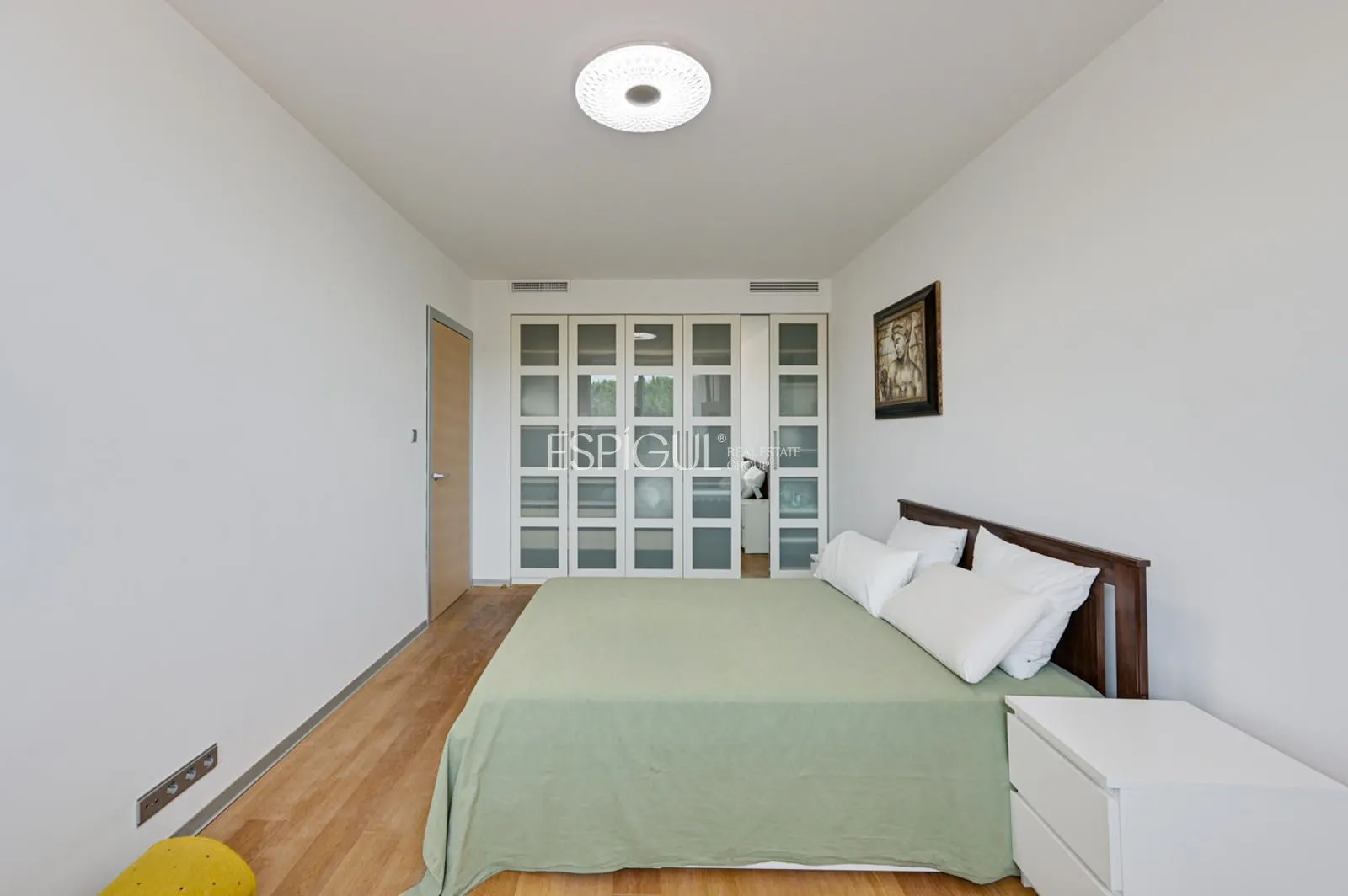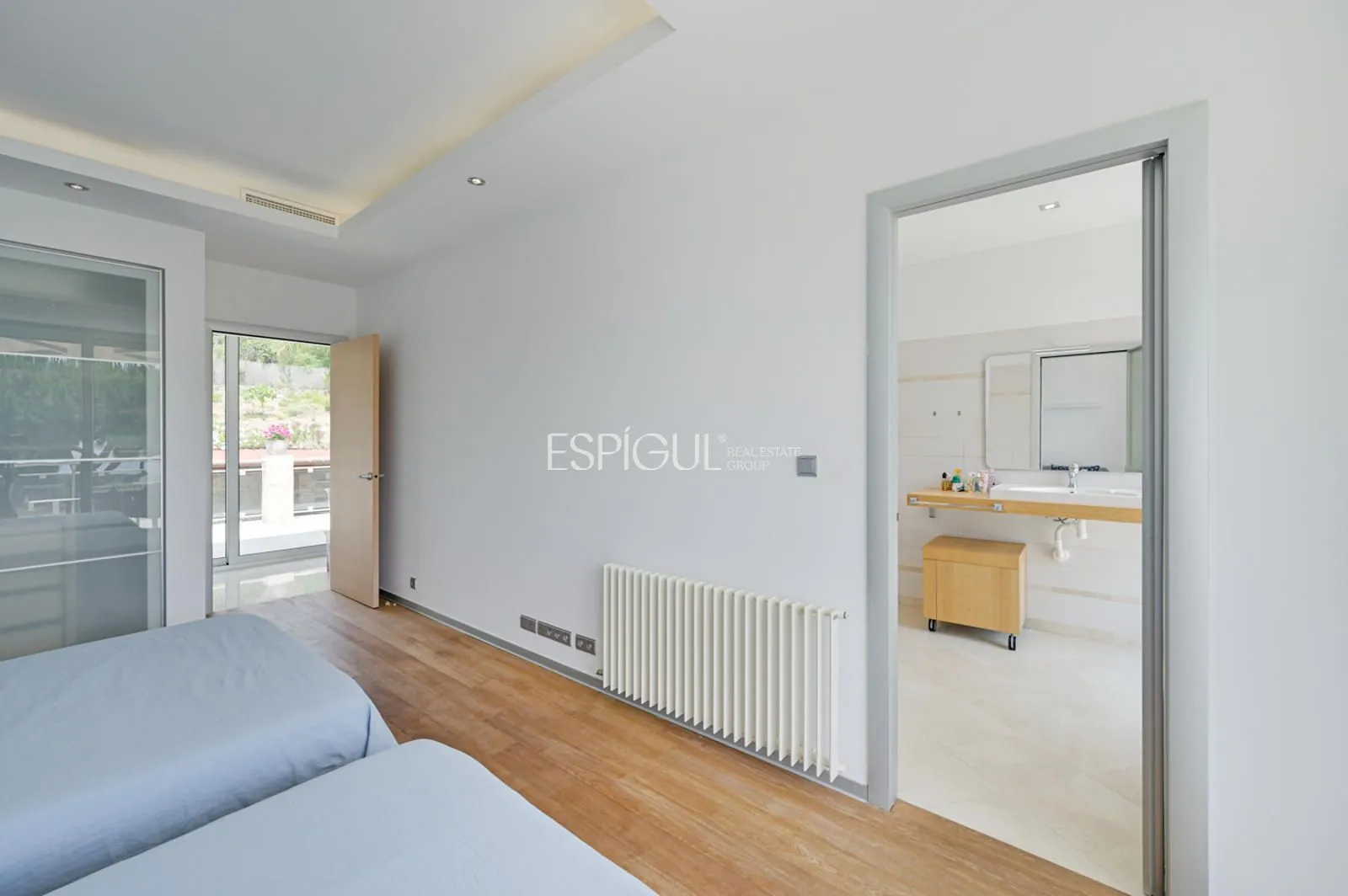 Al nivell superior se situa la zona de descans, presidida per una majestuosa master suite amb bany complet, vestidor de somni i accés a una terrassa privada amb vistes panoràmiques al mar. A aquesta estança l’acompanyen una altra suite completa, dues habitacions dobles addicionals (una d’elles actualment reconvertida en vestidor), i un quart de bany complet.