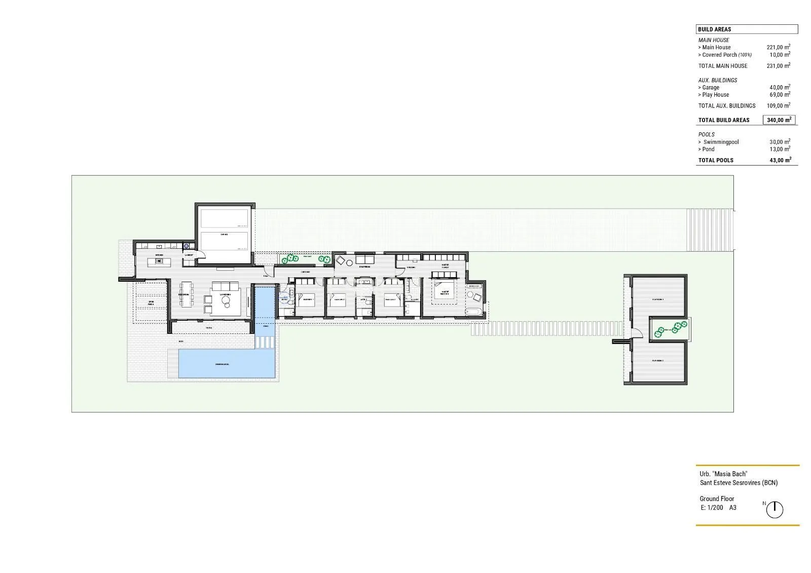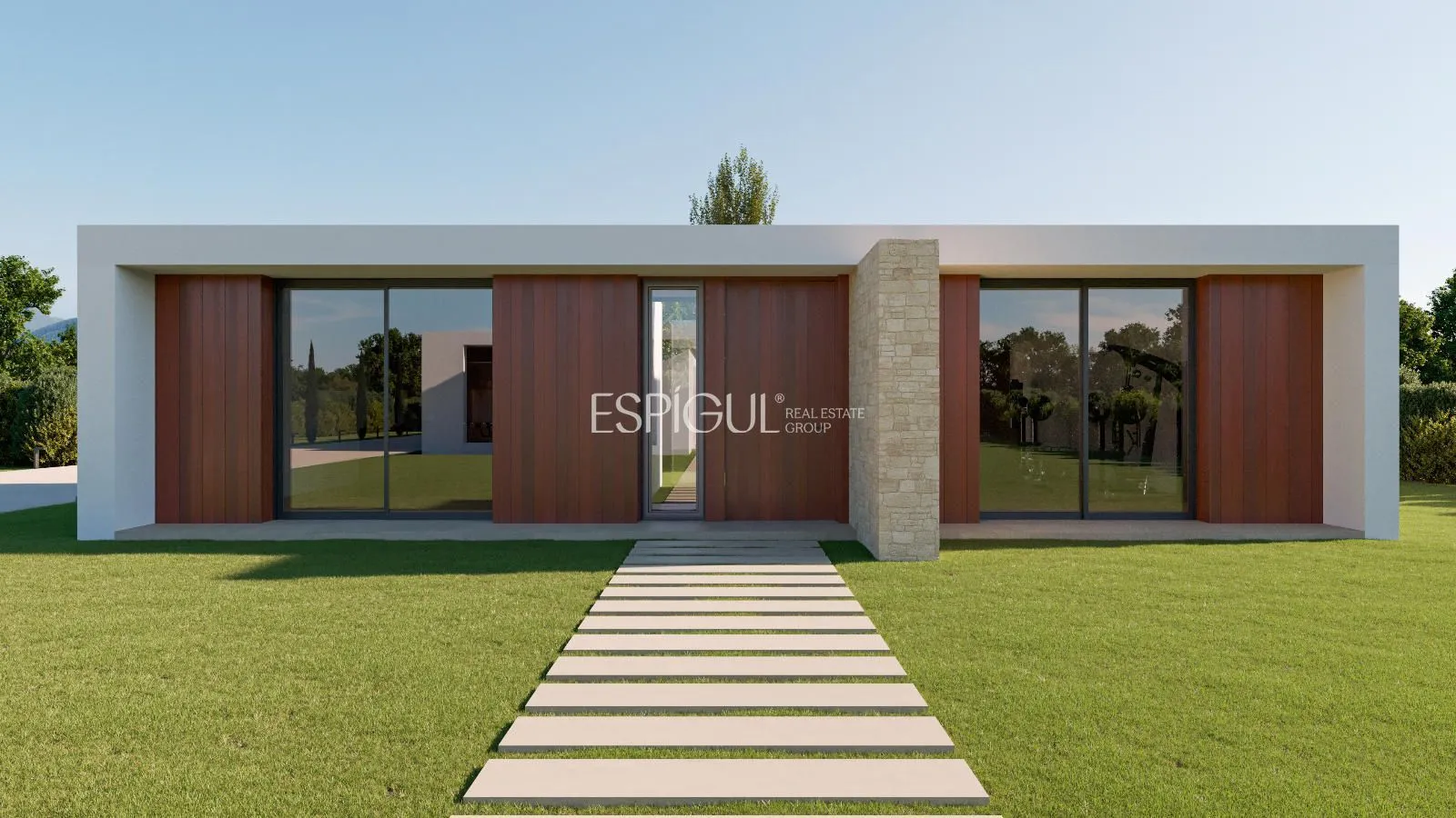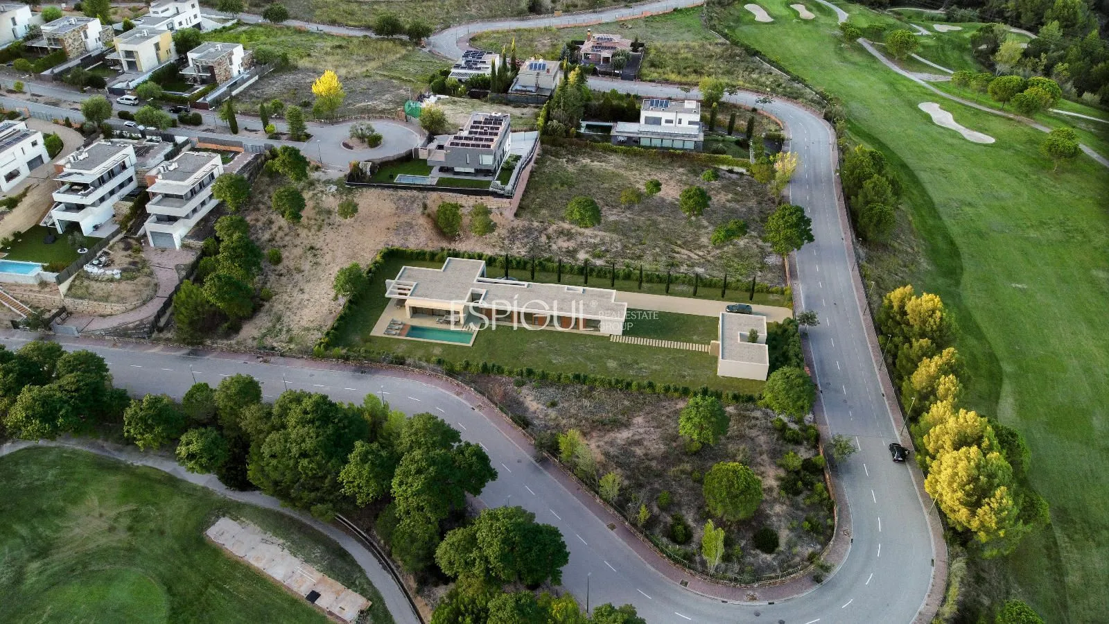Espígul Real Estate Group presenta aquesta espectacular Villa d’Obra Nova distribuïda en una sola planta de 440 m2, situada en una parcel·la completament plana de 1.800 m al Golf Masía Bach.