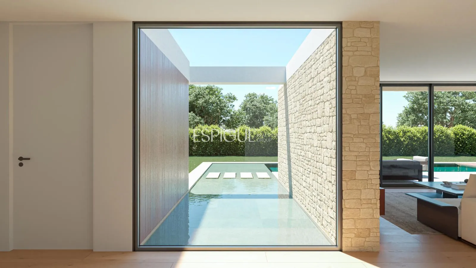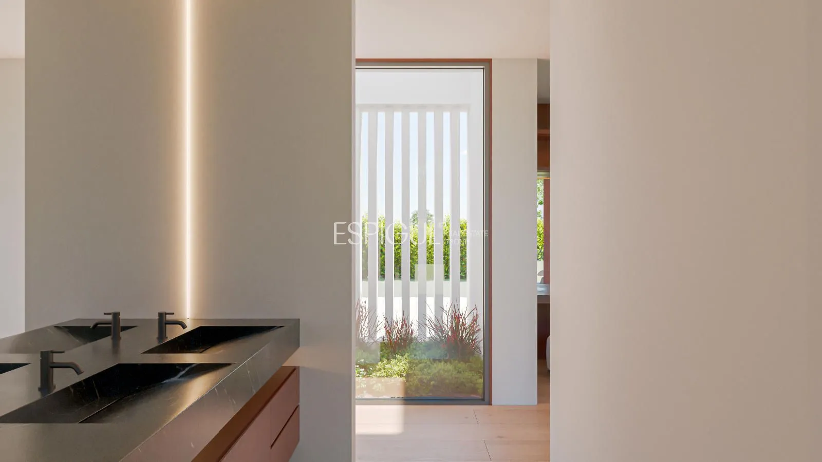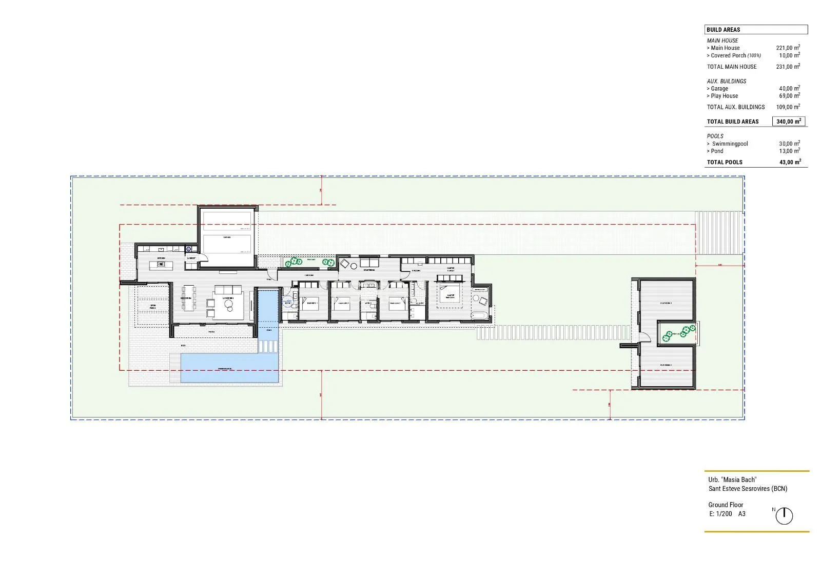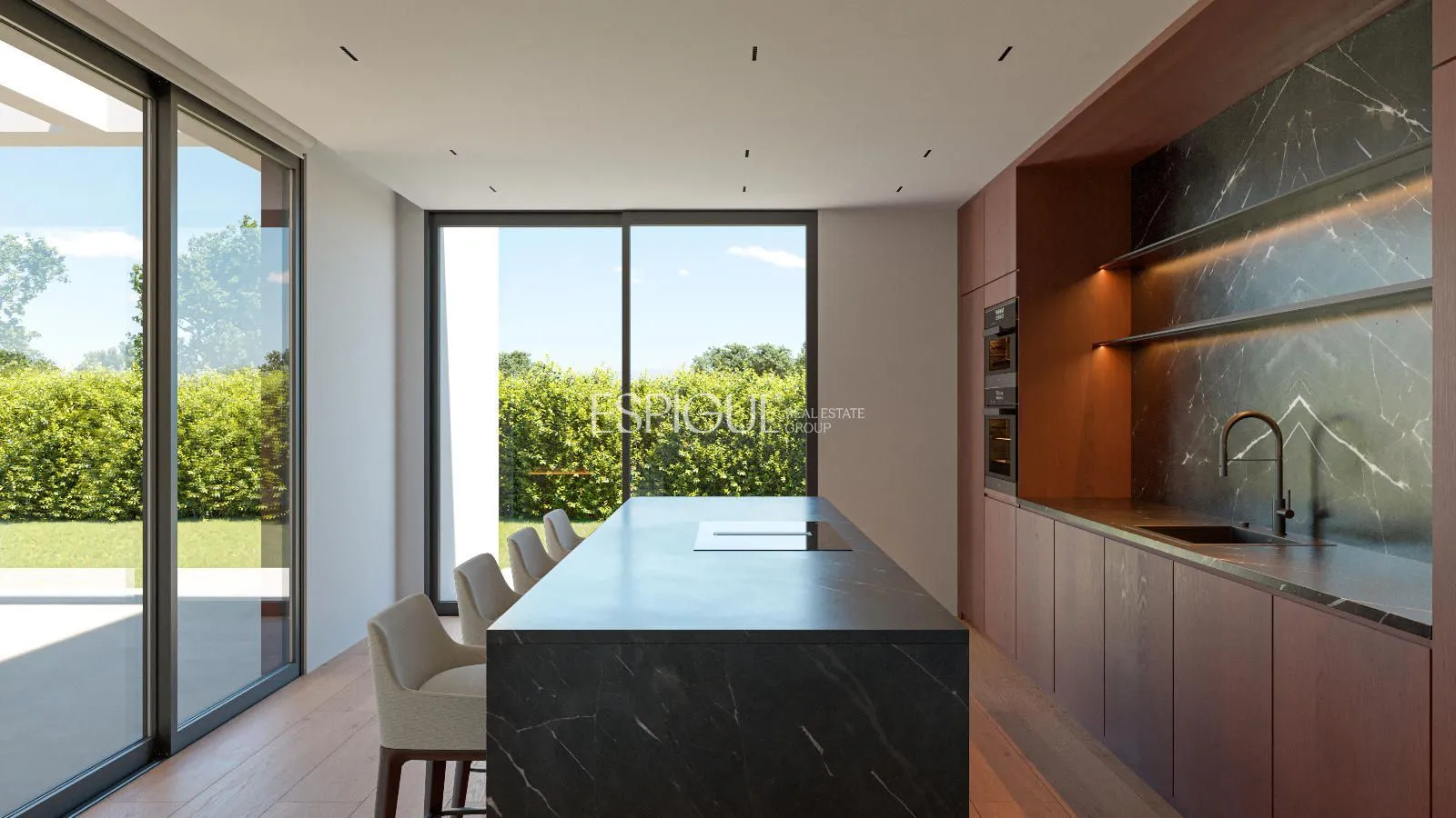Espígul Real Estate Group presenta aquesta espectacular Villa d’Obra Nova distribuïda en una sola planta de 440 m2, situada en una parcel·la completament plana de 1.800 m al Golf Masía Bach.