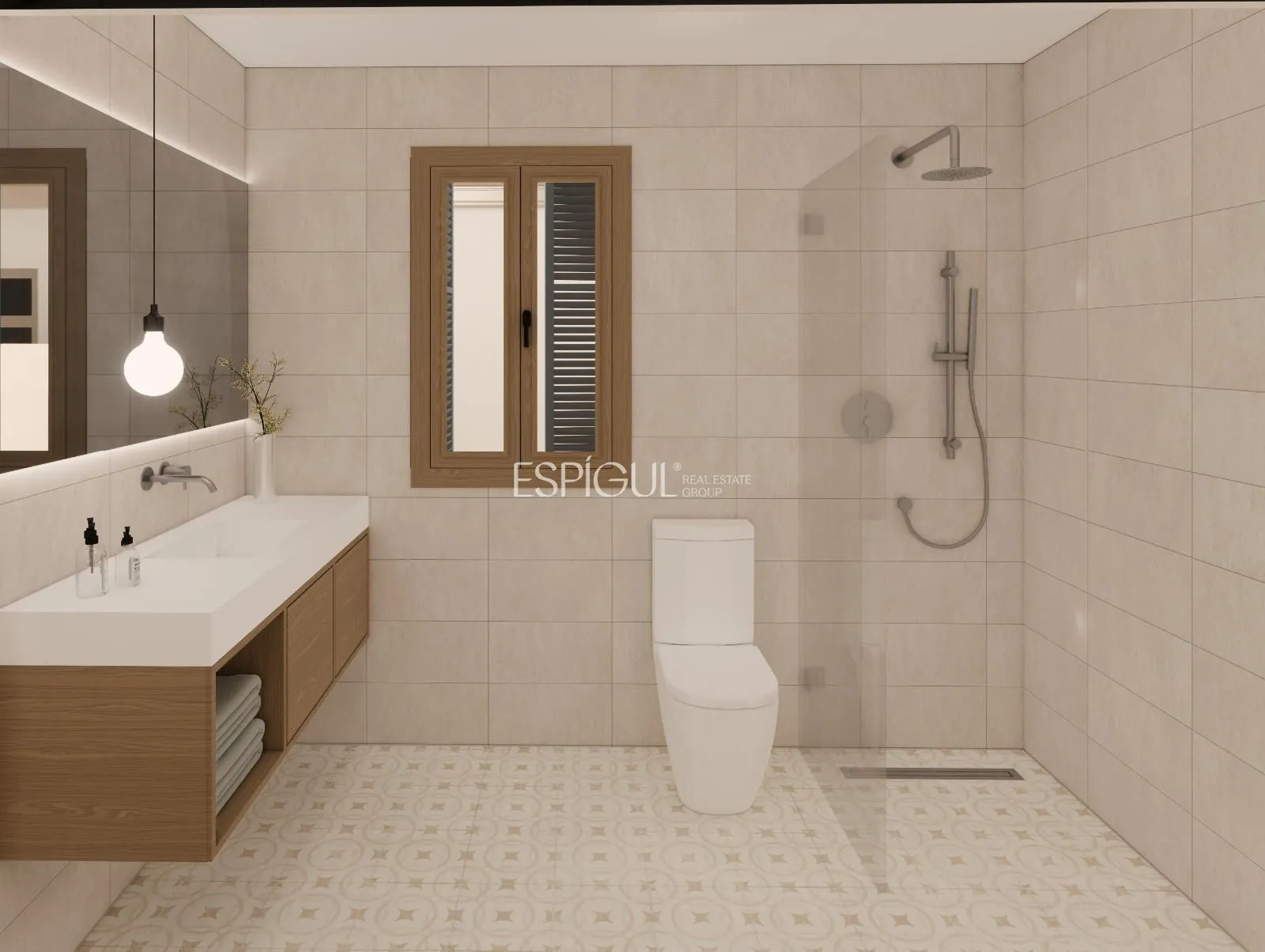 Mit einer Fläche von 100 m² bietet die Wohnung ein geräumiges Wohn-Esszimmer mit integrierter Designerküche, das zum Genießen und Teilen einlädt. Von diesem Zimmer aus haben Sie direkten Zugang zu zwei Außenbalkonen, die sich perfekt zum Entspannen in der Sonne oder zum Genießen der städtischen Umgebung eignen.