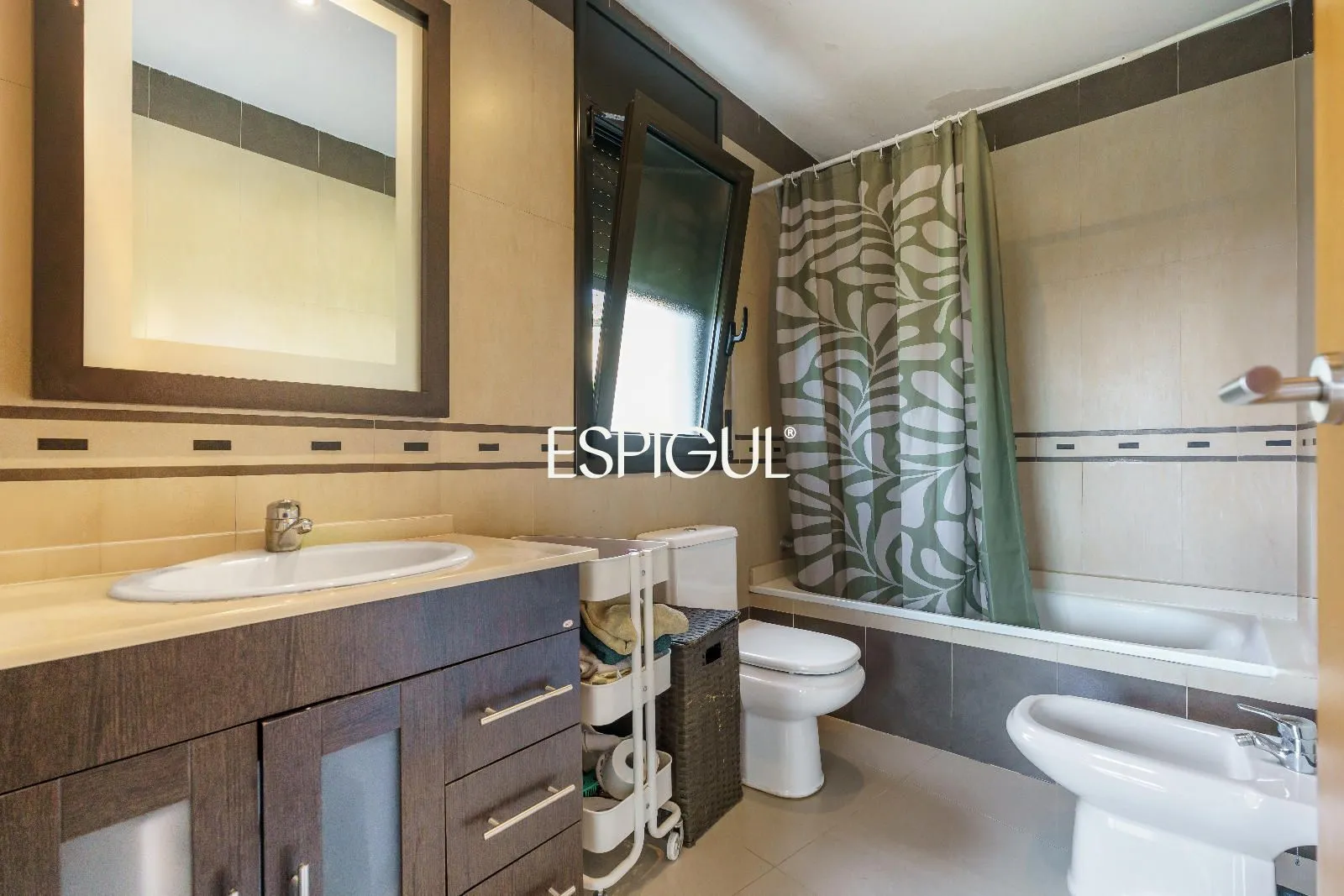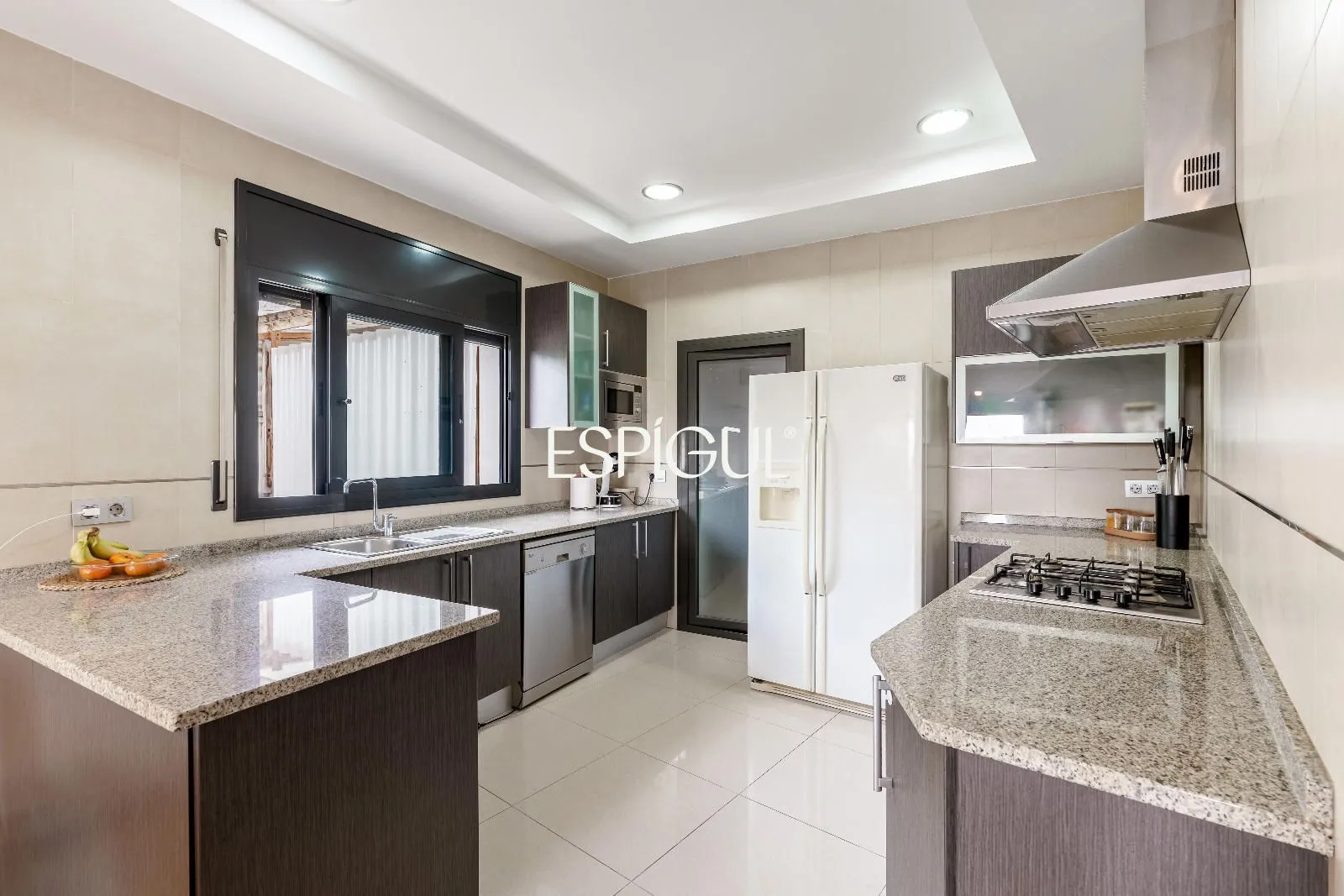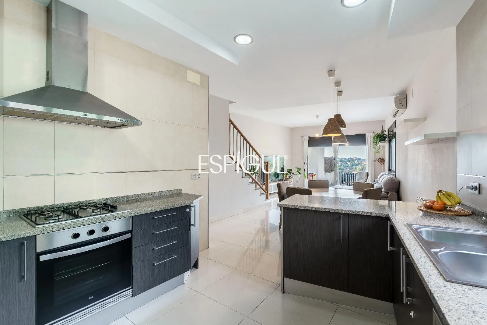Die Immobilie verfügt über ca. 150 m² bebaute Fläche, verteilt auf zwei Etagen, mit einer funktionalen Raumaufteilung und guter Lichtdurchflutung. Sie bietet drei großzügige Schlafzimmer, eines davon als Suite, mit Zugang zu einer privaten Terrasse mit freiem Blick – ideal, um die Umgebung zu genießen.
