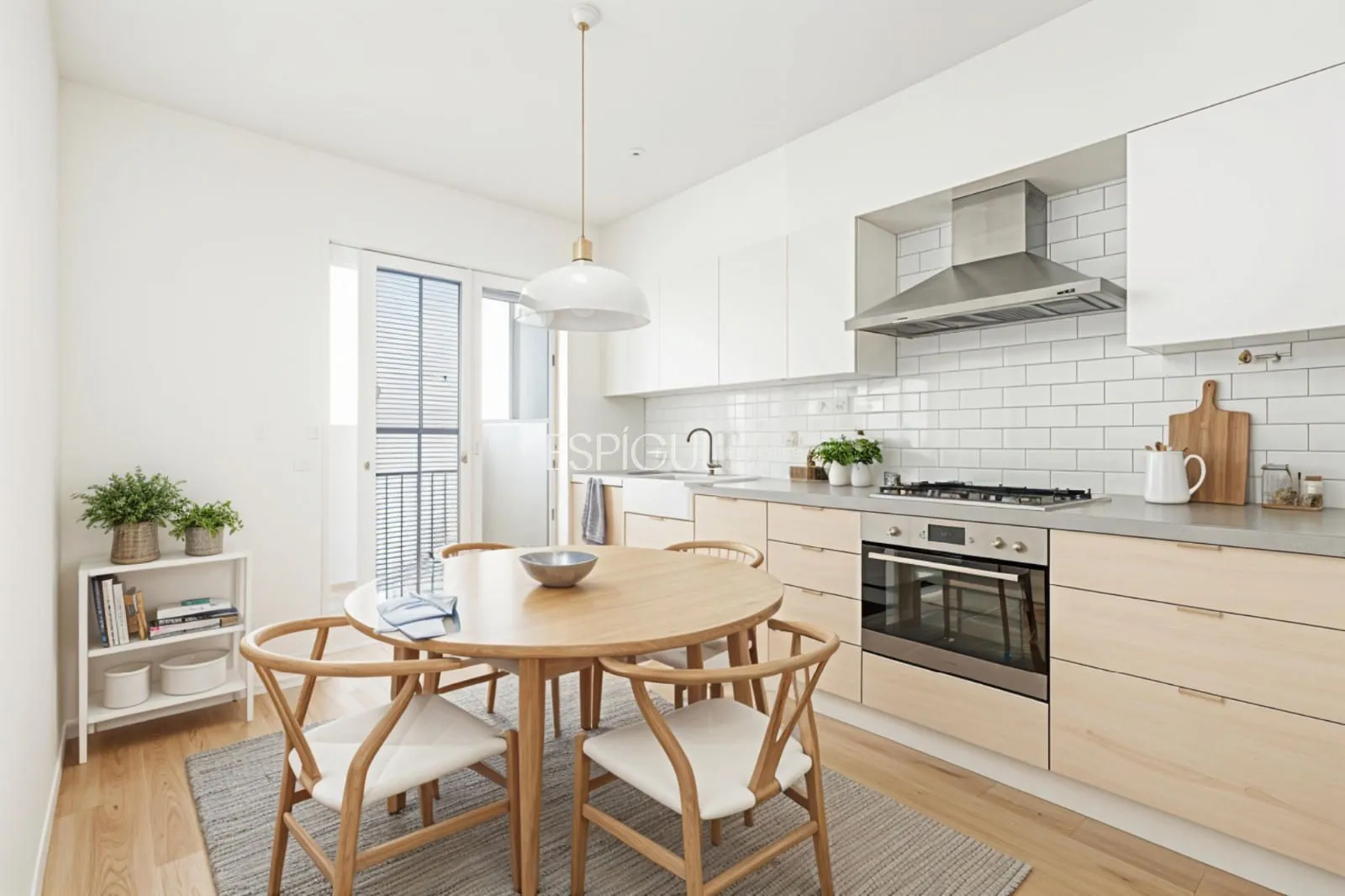 Beim Betreten führt ein geräumiger Flur in den Tagesbereich, wo sich ein elegantes Wohn-Esszimmer mit Kamin und direktem Zugang zu einer 20 m² großen Terrasse befindet, perfekt, um entspannende Momente zu genießen. Gegenüber dem Wohnzimmer befindet sich ein kürzlich renoviertes Badezimmer mit Dusche, das auch ideal als Gästebad dient. Die Küche, komplett ausgestattet und mit Essbereich, verfügt über einen Ausgang zu einer belüfteten Außengalerie mit Wasseranschluss. Neben dem Eingang bietet ein derzeit als Büro genutztes Schlafzimmer die Möglichkeit, in ein Einzelzimmer umgewandelt zu werden.