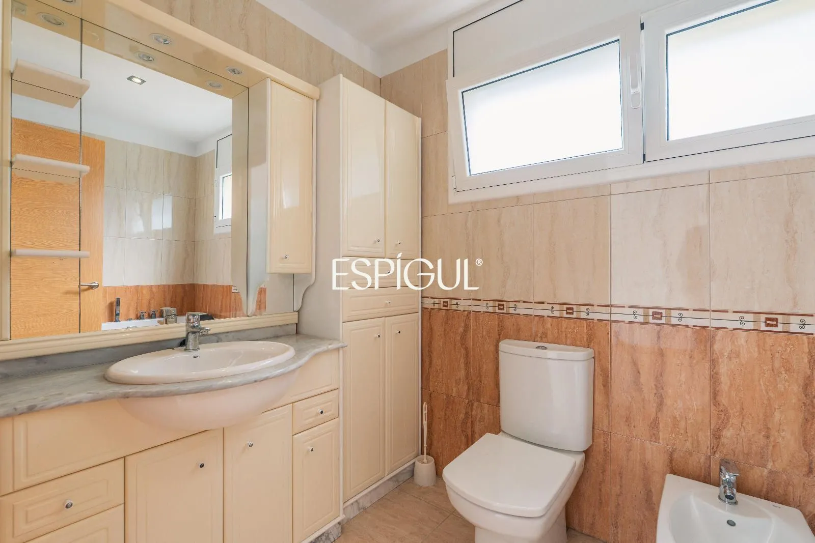 The upper floor houses the night area, consisting of a master suite with private bathroom and dressing room, plus two double bedrooms and another full bathroom. All bedrooms have direct access to a spacious terrace with open views.