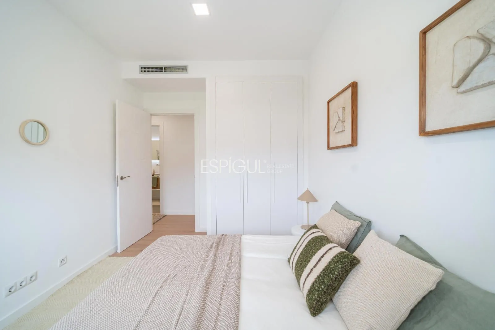 The sleeping area offers four comfortable bedrooms, two full bathrooms, and a guest toilet, as well as a practical independent water area. Each room has been designed to maximize the light and pleasant views of the landscape surrounding the property, creating an atmosphere of calm and well-being.