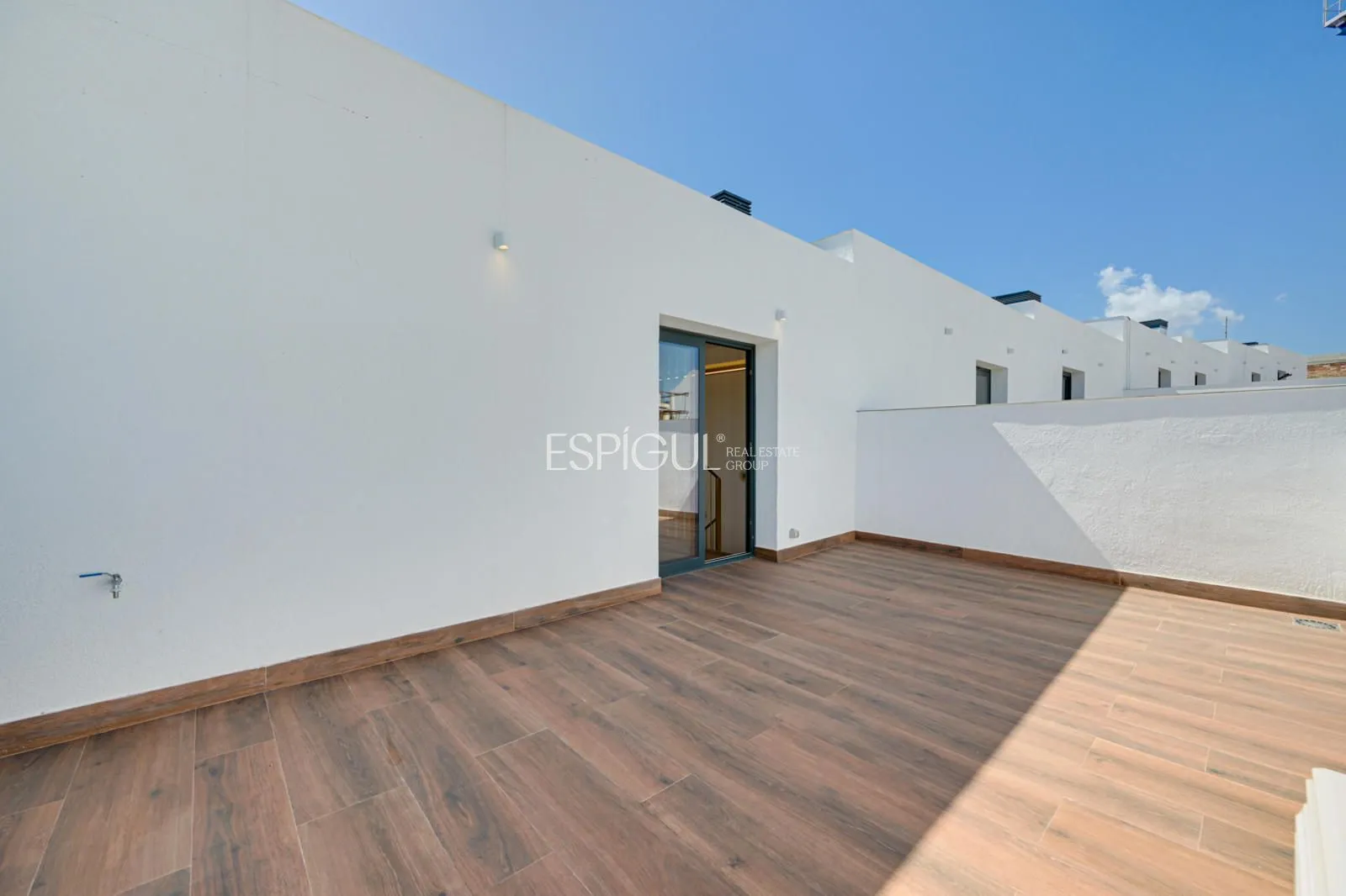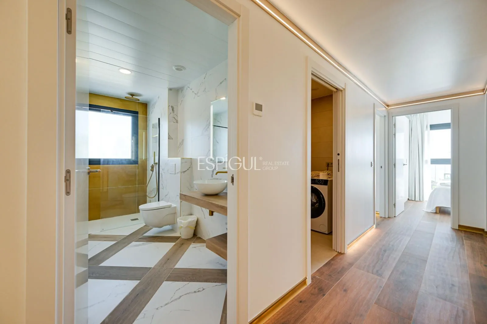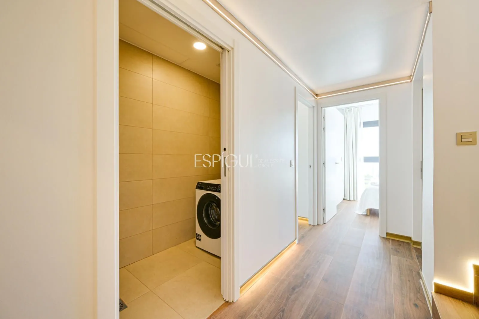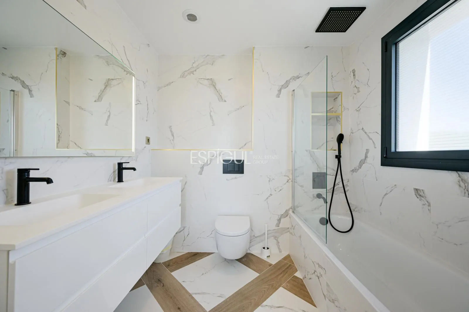 The property includes a private parking space and storage room in the basement, from which all floors are directly accessible via a private elevator. In the daytime area, a bright living-dining room with an open kitchen integrates naturally into family and social life, opening onto a terrace with a garden area ideal for outdoor relaxation. Additionally, an elegant full bathroom serves the entire floor. The nighttime area comprises three double bedrooms with built-in wardrobes, sharing a full bathroom, and a suite with a private bathroom, plus a practical utility area that can be converted into a dressing room, storage room, or an additional bathroom. As the most distinctive space, the upper floor houses an open-plan room with a bathroom, currently functioning as the master suite, but whose versatility allows it to be adapted into an office, living room, or recreational area, while also enjoying two private terraces with spectacular sea and mountain views, one of them equipped with a jacuzzi.