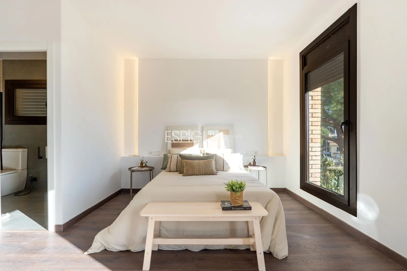 Outside, the private garden is transformed into an authentic oasis with an infinity pool, green areas, and a cozy outdoor dining area, perfect for enjoying Mediterranean nights in good company. It also has covered parking and all the necessary details to guarantee privacy, comfort, and style.