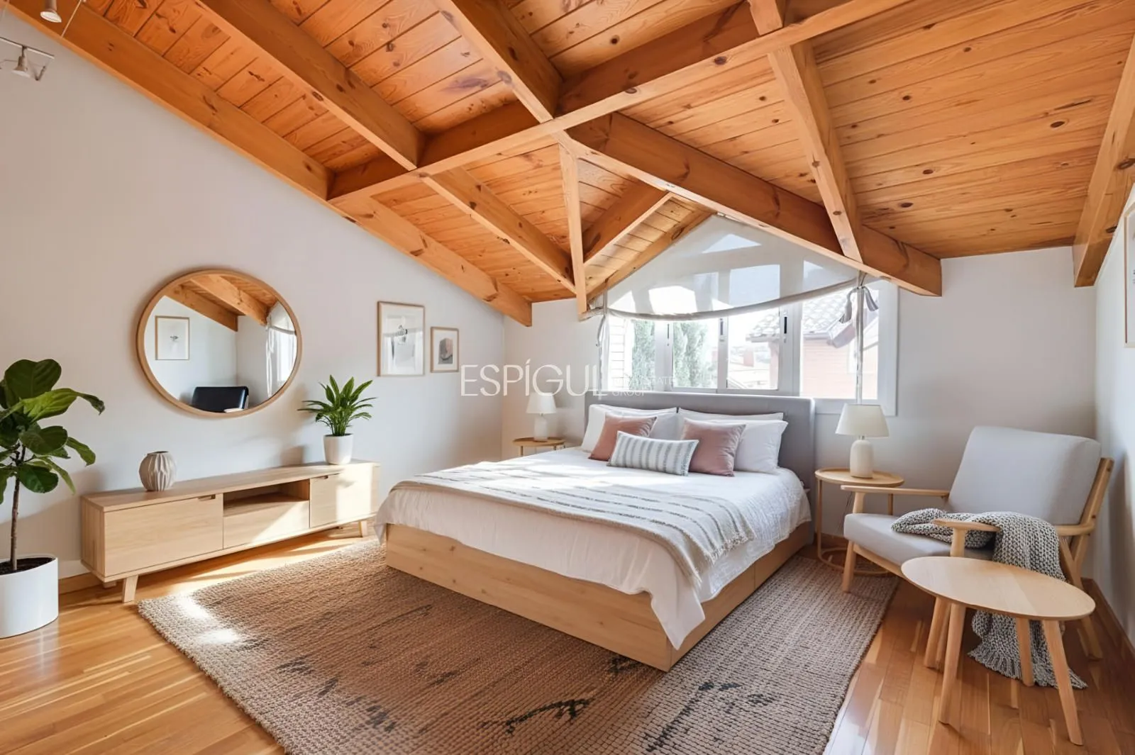 • Spacious and bright living-dining room with large windows and access to the garden that surrounds the house, perfect for relaxing and enjoying the surroundings.