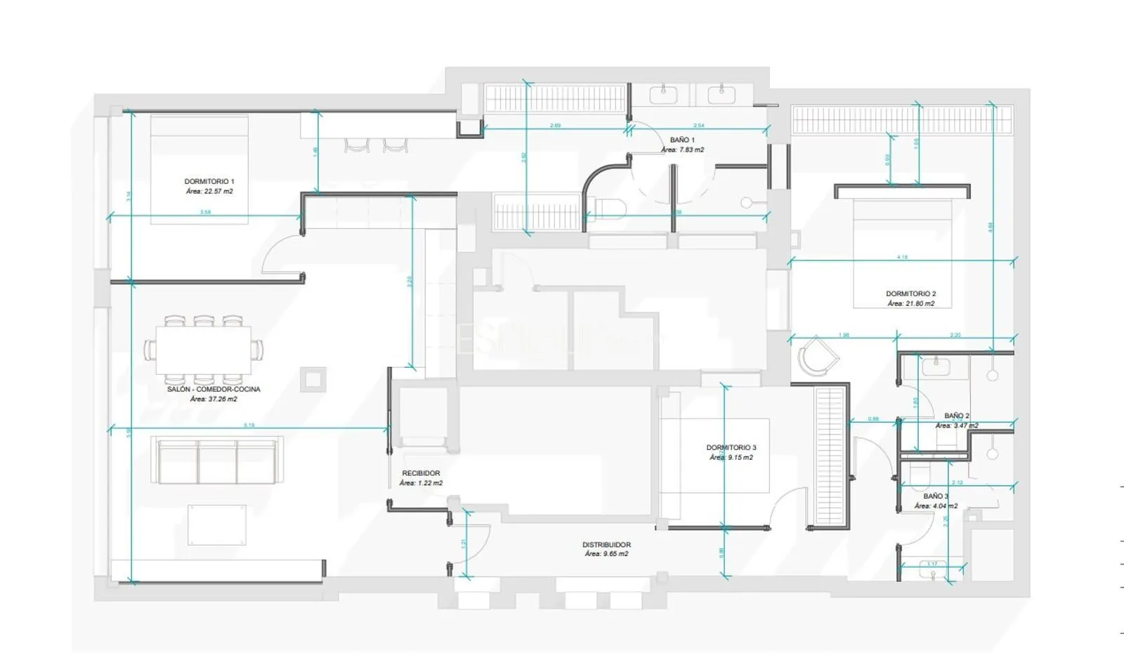 Actualmente, el piso se encuentra para reformar, ofreciendo la oportunidad de diseñar un proyecto a medida con acabados de alta gama y una distribución moderna adaptada a las necesidades del comprador. La propuesta de reforma contempla un espacioso salón-comedor con cocina abierta, ideal para disfrutar de momentos sociales y familiares, además de tres dormitorios, dos de ellos en suite con baño privado, y un tercer dormitorio o despacho, junto a un aseo de cortesía que completa la distribución.