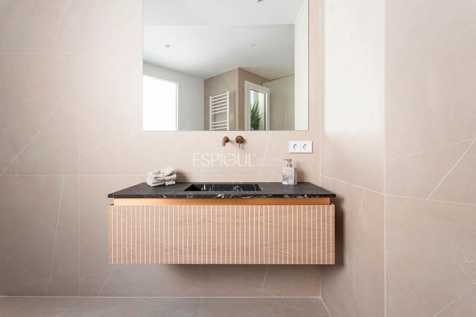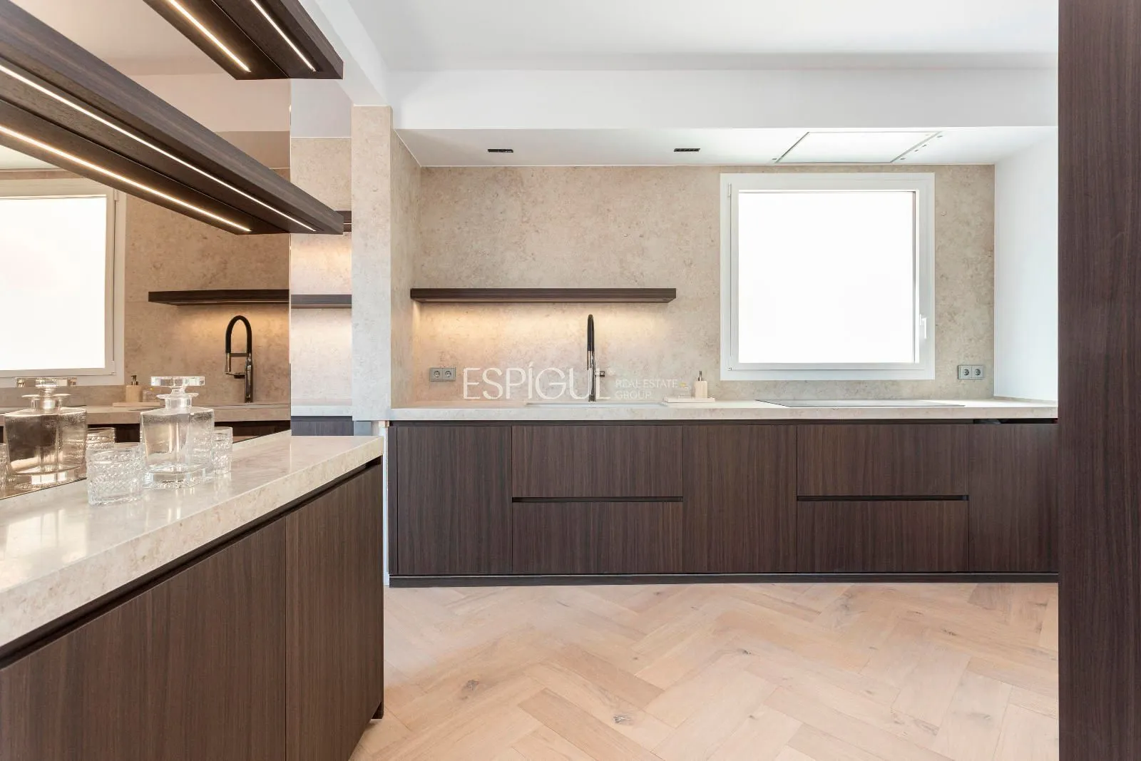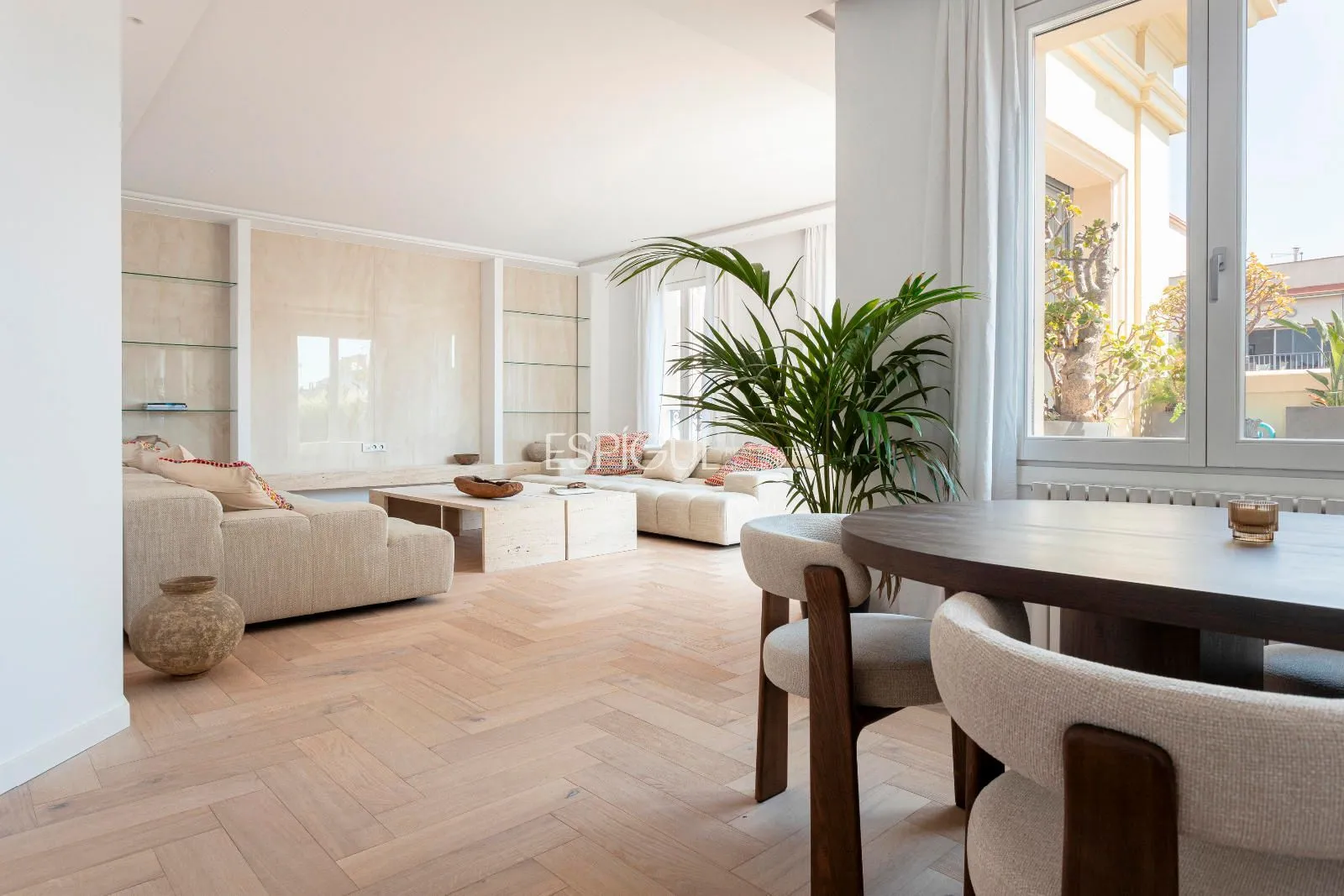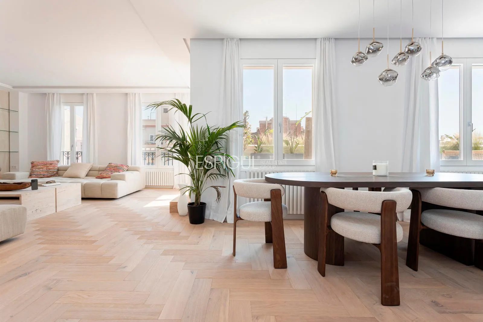 Con más de 241 m² reformados íntegramente, el piso destaca por su extraordinaria amplitud y la luz natural que lo envuelve. Su zona de día, un sofisticado salón-comedor de más de 55 m², se proyecta hacia una terraza de 30 m² que ofrece privacidad, ambiente chill-out y espacio para grandes encuentros al aire libre con vistas abiertas sobre Barcelona.