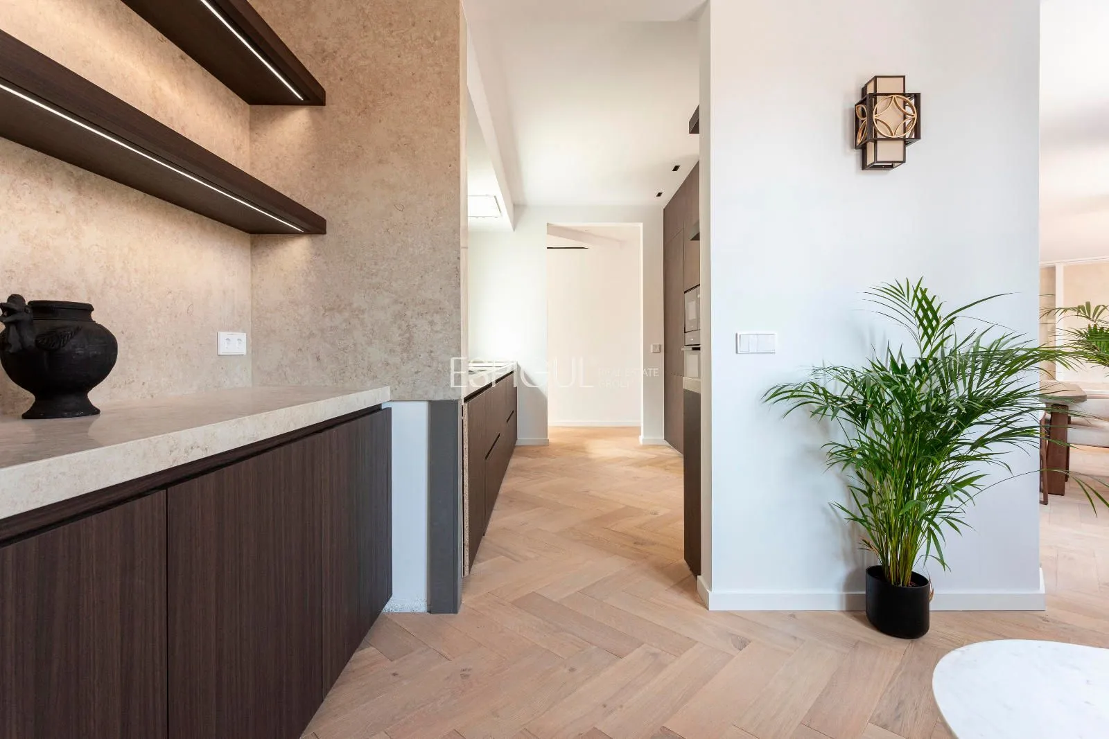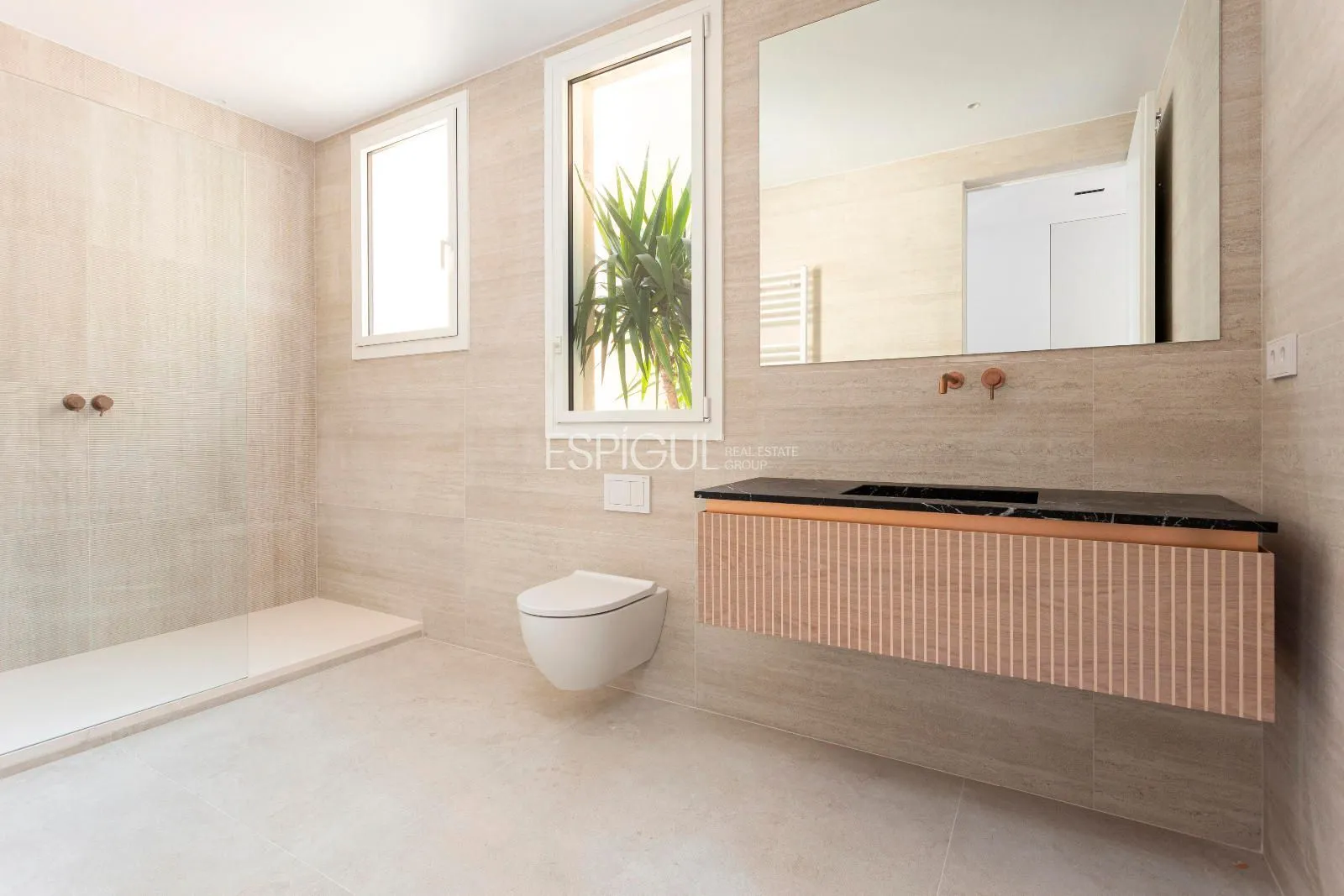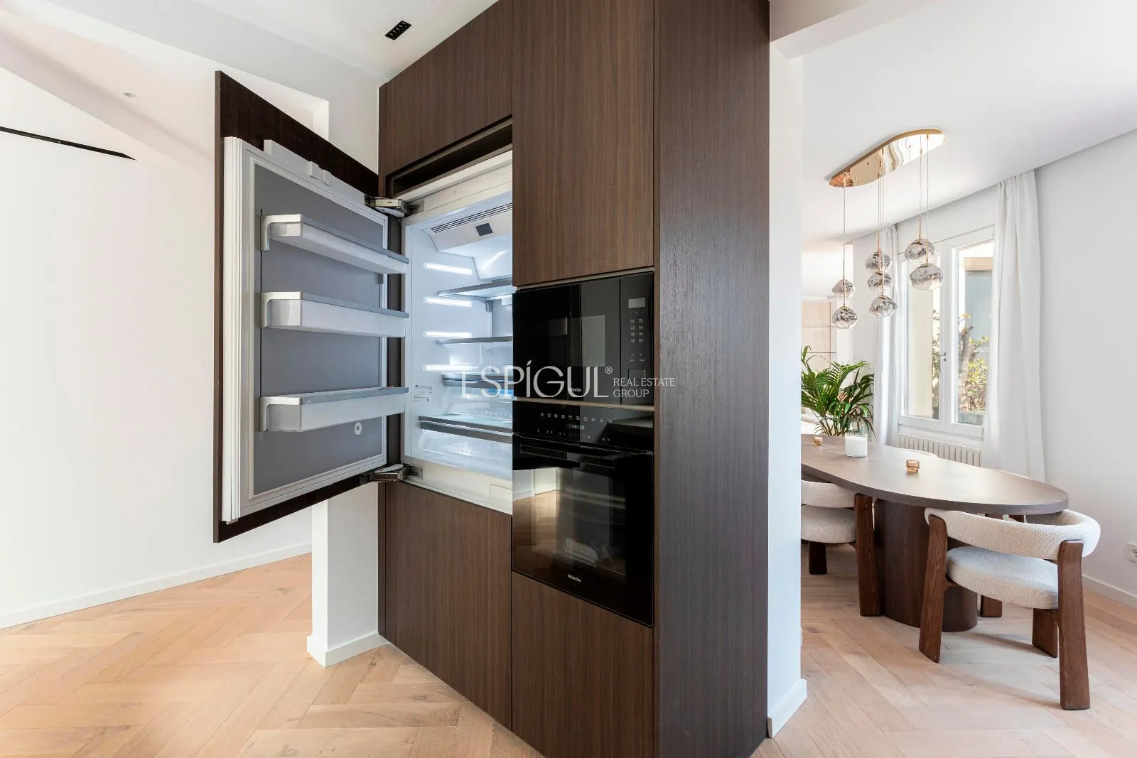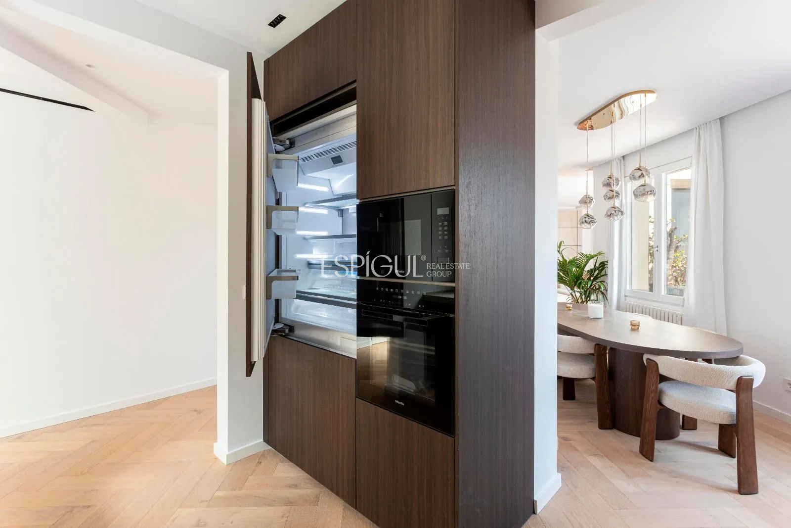 Con más de 241 m² reformados íntegramente, el piso destaca por su extraordinaria amplitud y la luz natural que lo envuelve. Su zona de día, un sofisticado salón-comedor de más de 55 m², se proyecta hacia una terraza de 30 m² que ofrece privacidad, ambiente chill-out y espacio para grandes encuentros al aire libre con vistas abiertas sobre Barcelona.