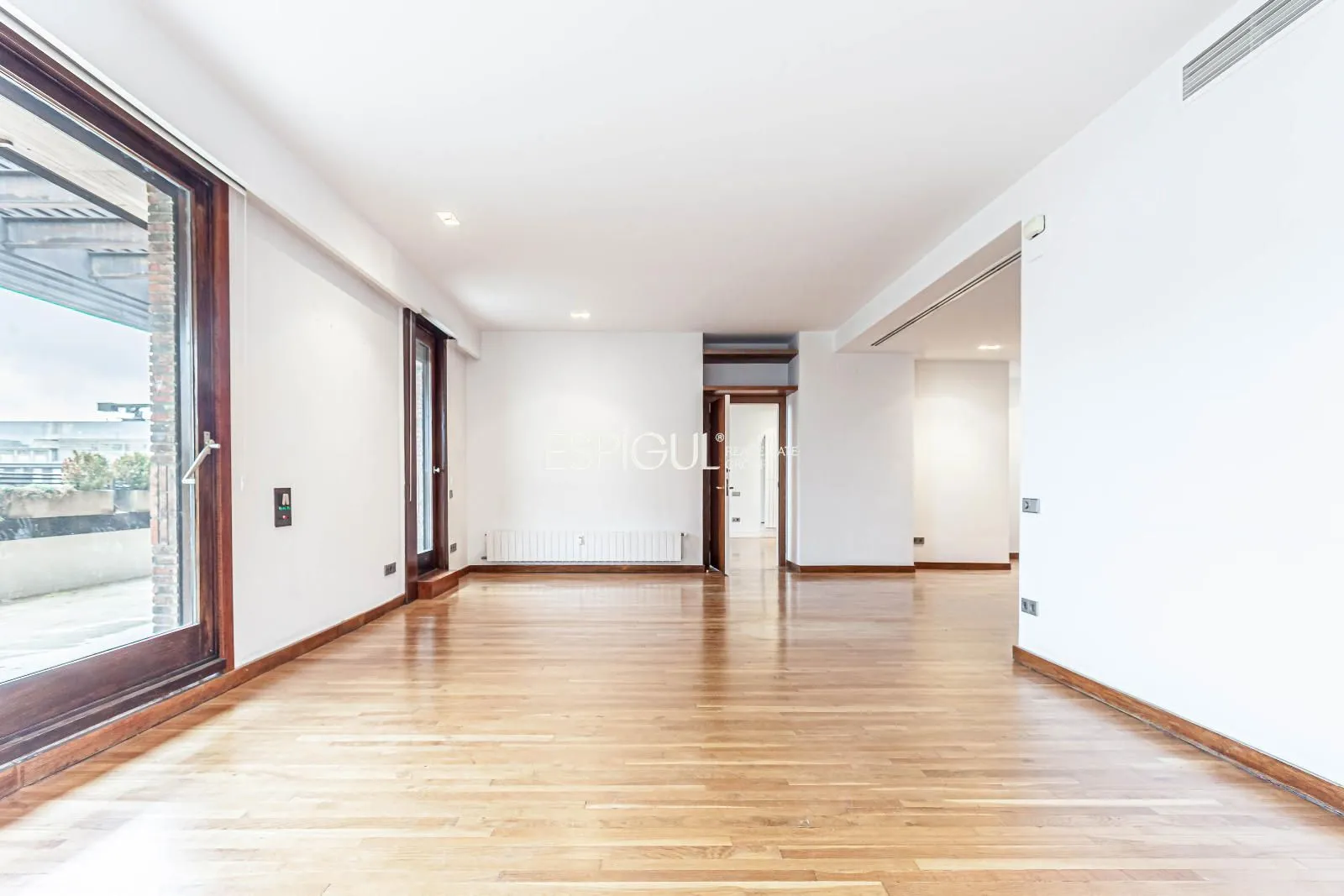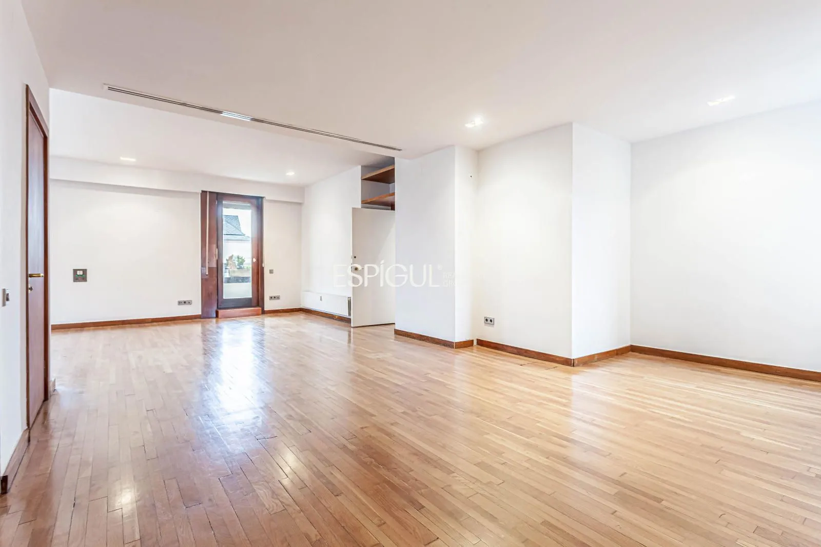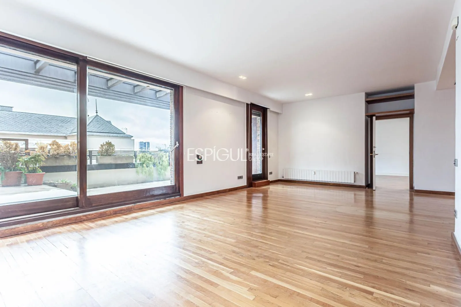 La vivienda cuenta con una distribución generosa y equilibrada, con estancias amplias y bien definidas que permiten disfrutar de espacios confortables y versátiles. El salón principal, de grandes dimensiones, se convierte en el corazón de la vivienda, ideal tanto para la vida familiar como para la celebración de reuniones sociales, con acceso directo a una magnífica terraza privada. Este espacio exterior, amplio y soleado, ofrece un auténtico oasis urbano perfecto para disfrutar de momentos de descanso, comidas al aire libre o veladas exclusivas con total tranquilidad.