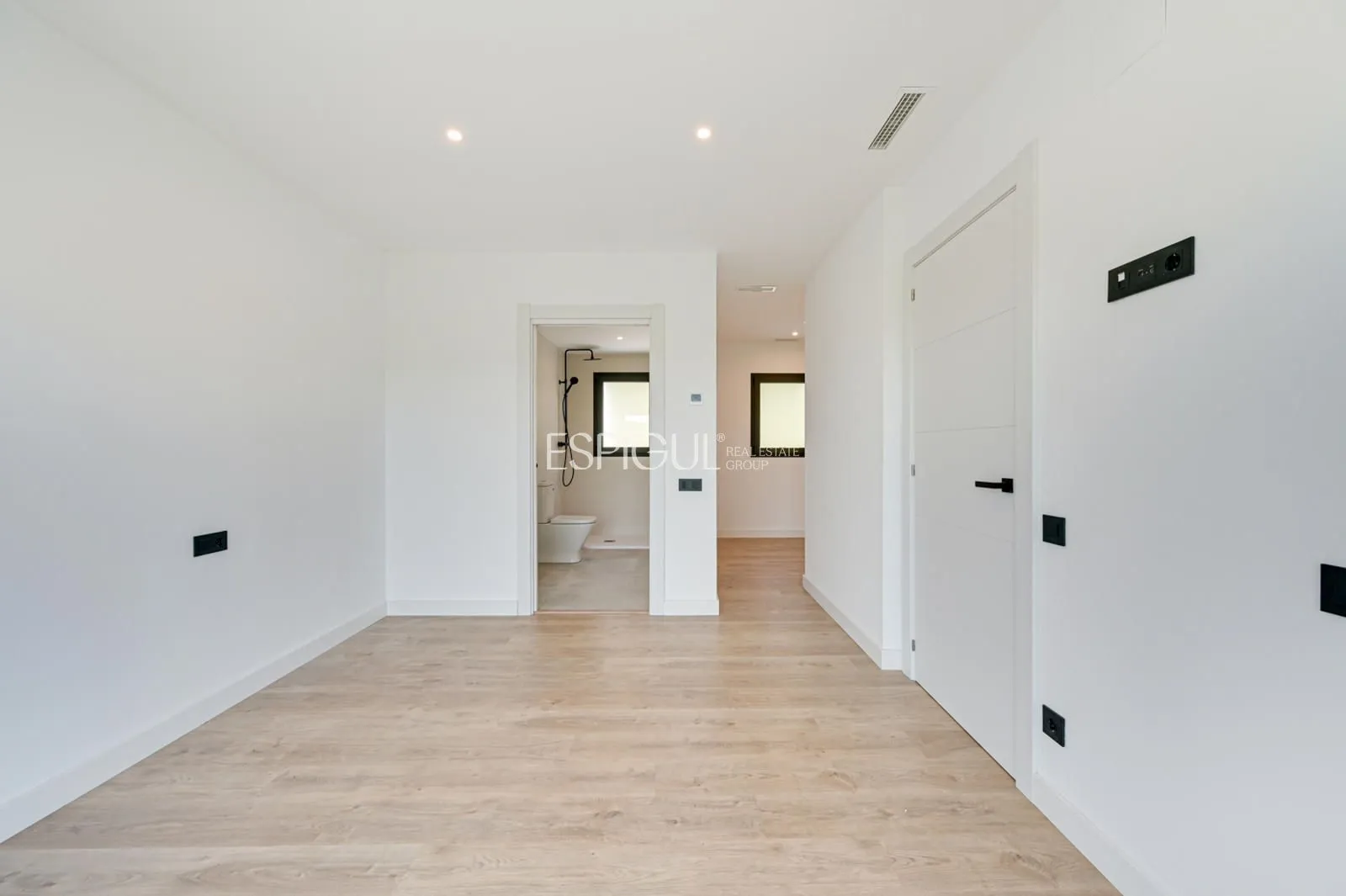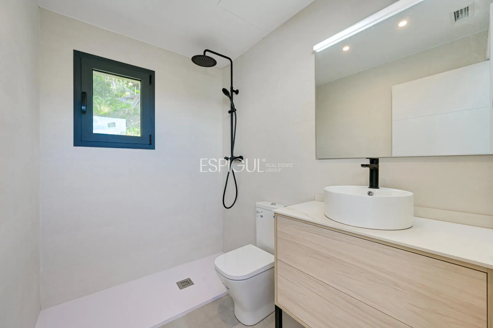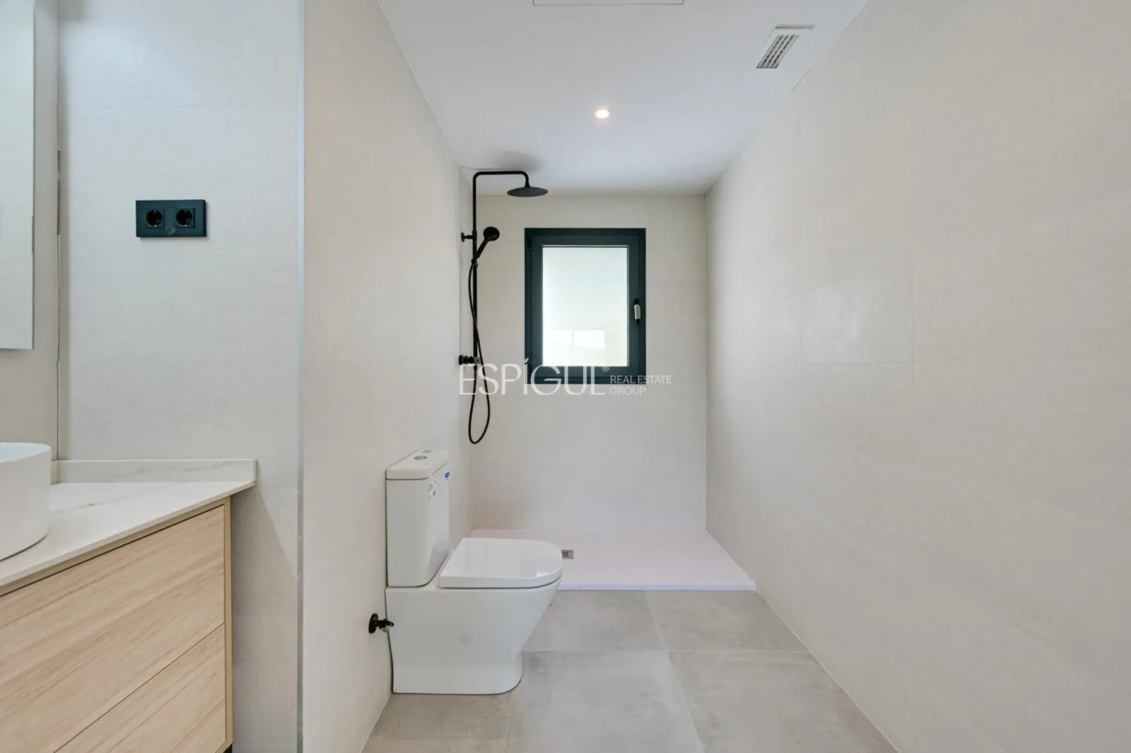 La vivienda ha sido terminada este mismo año con excelentes calidades: sistema de aerotermia, placas solares, cerramientos de aluminio de alta gama y acabados modernos pensados para el confort y la eficiencia energética.