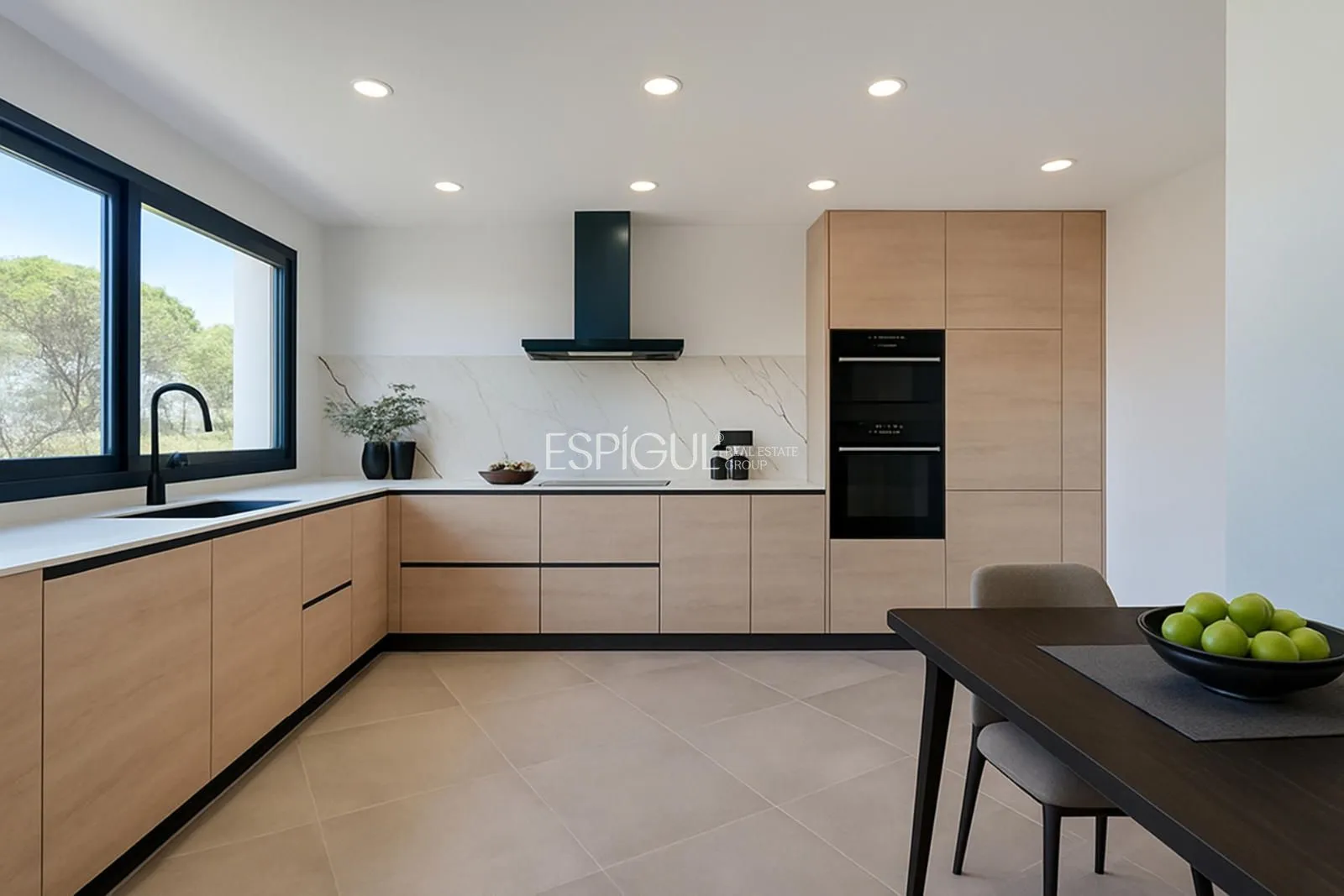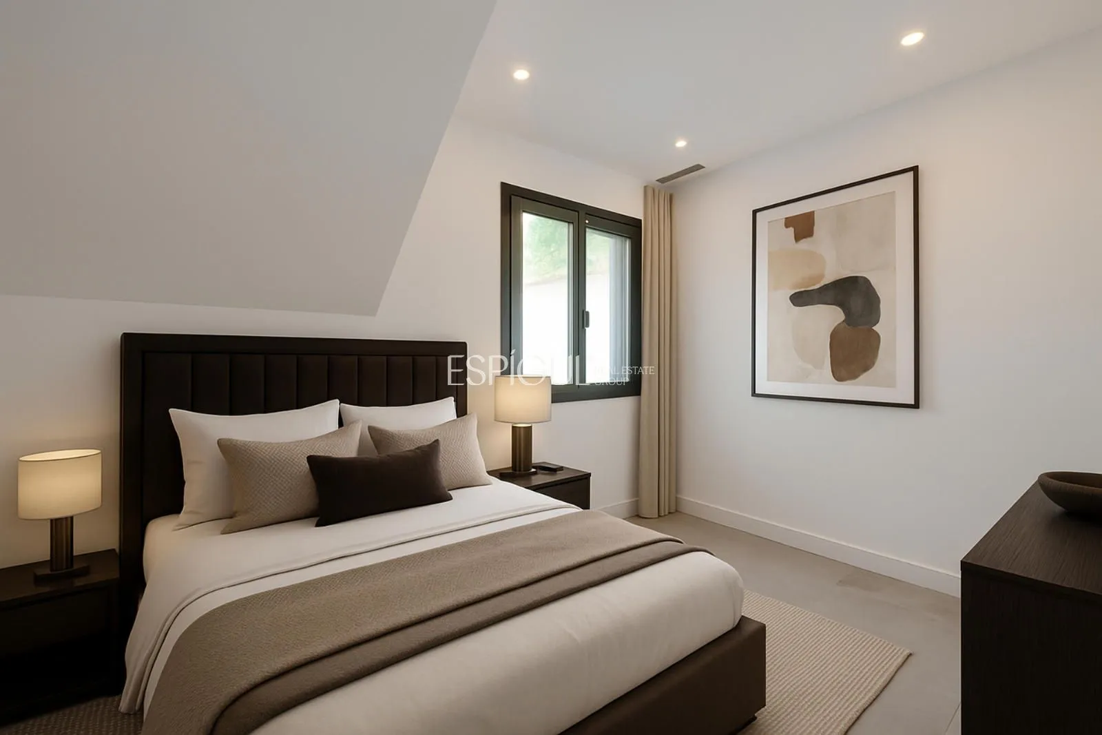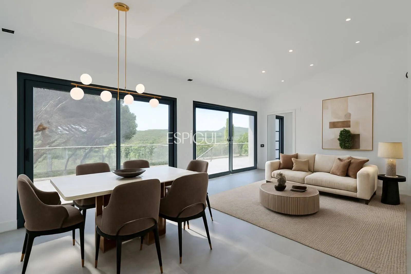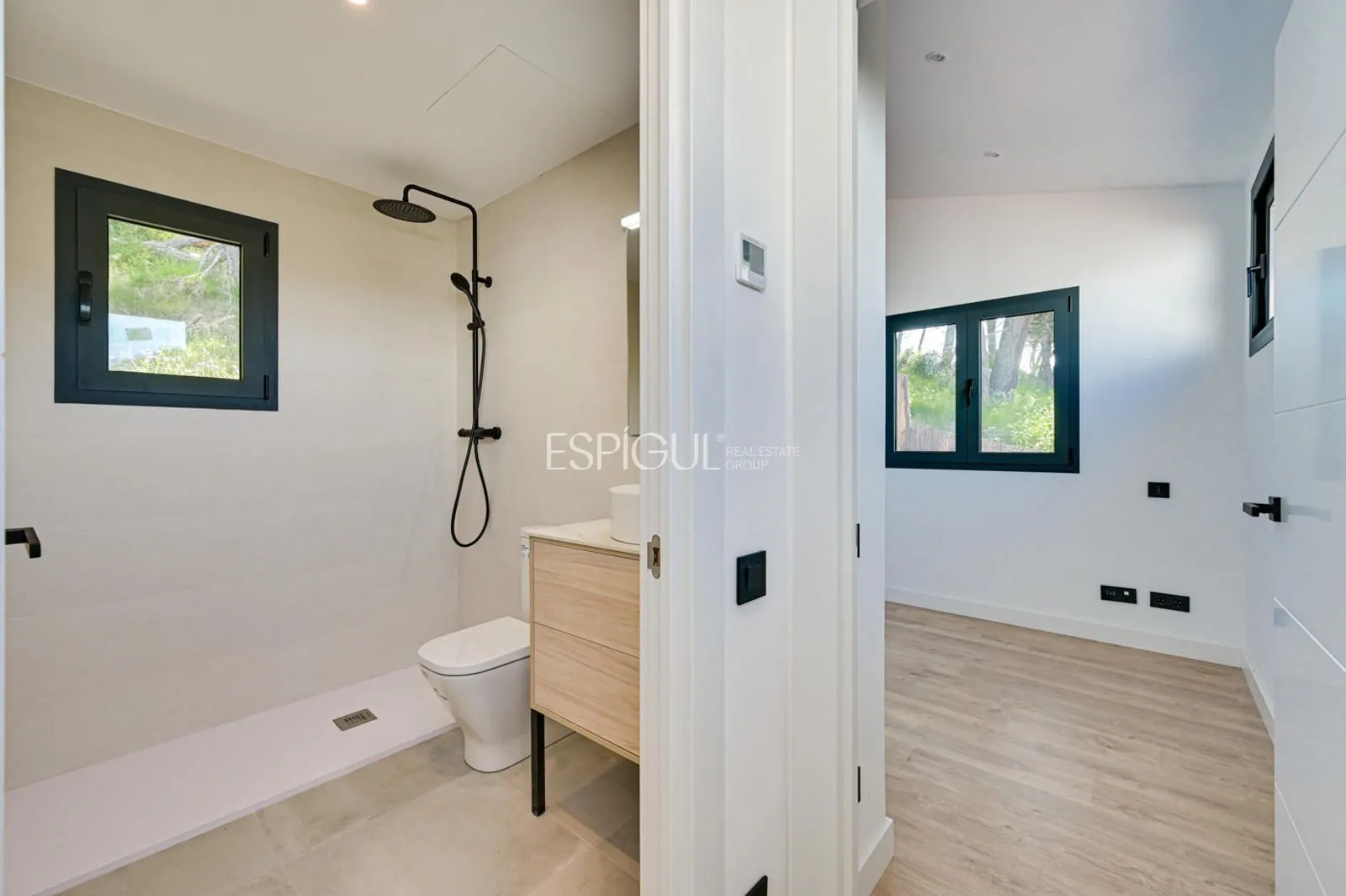 La vivienda ha sido terminada este mismo año con excelentes calidades: sistema de aerotermia, placas solares, cerramientos de aluminio de alta gama y acabados modernos pensados para el confort y la eficiencia energética.