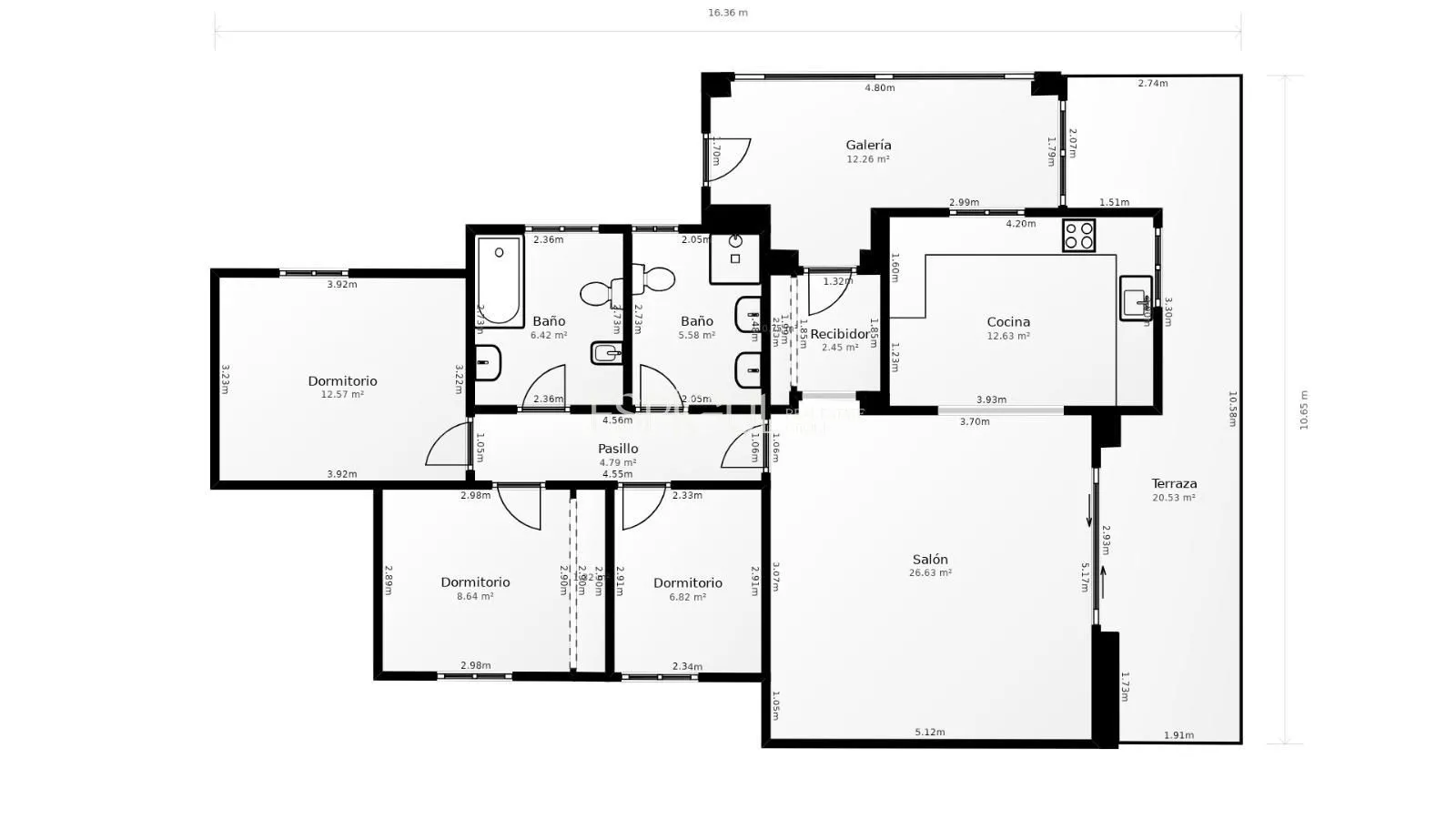 La planta baja corresponde a la segunda vivienda, concebida como un espacio cómodo, funcional y bien distribuido. Dispone de un salón-comedor con cocina abierta, amplio y elegante, que incorpora una vinoteca y cuenta con salida directa a una generosa terraza. La vivienda ofrece un dormitorio doble con vestidor independiente y un baño completo equipado con ducha y bañera de hidromasaje. Además, dispone de una sala polivalente contigua, ideal como despacho, gimnasio o taller.