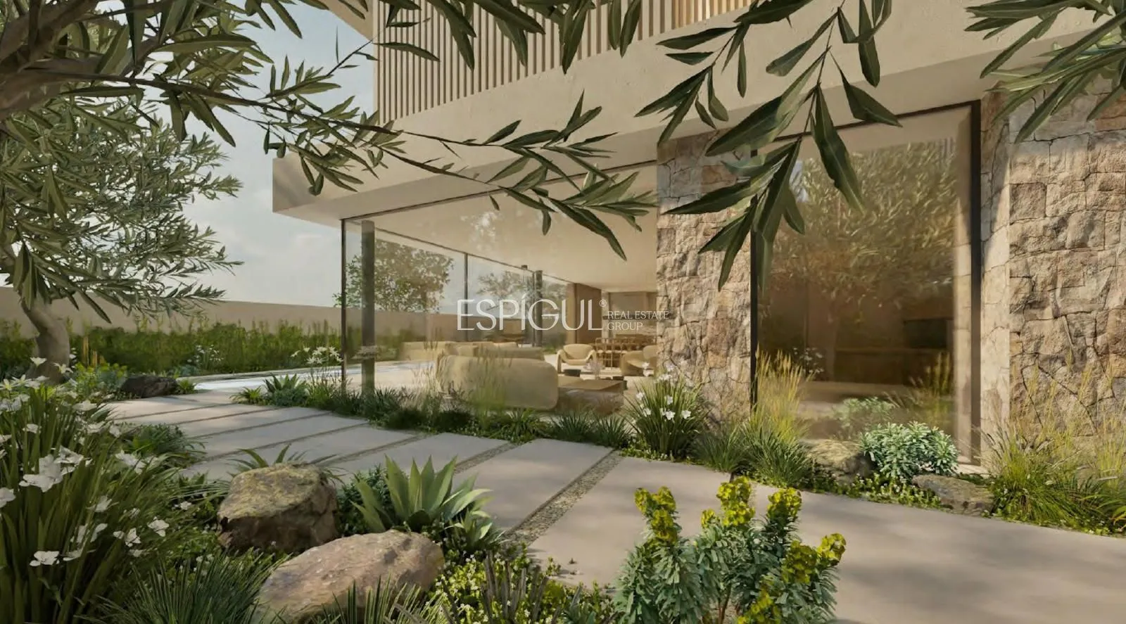 Salón-comedor amplio y luminoso, con acceso directo al jardín y piscina.
