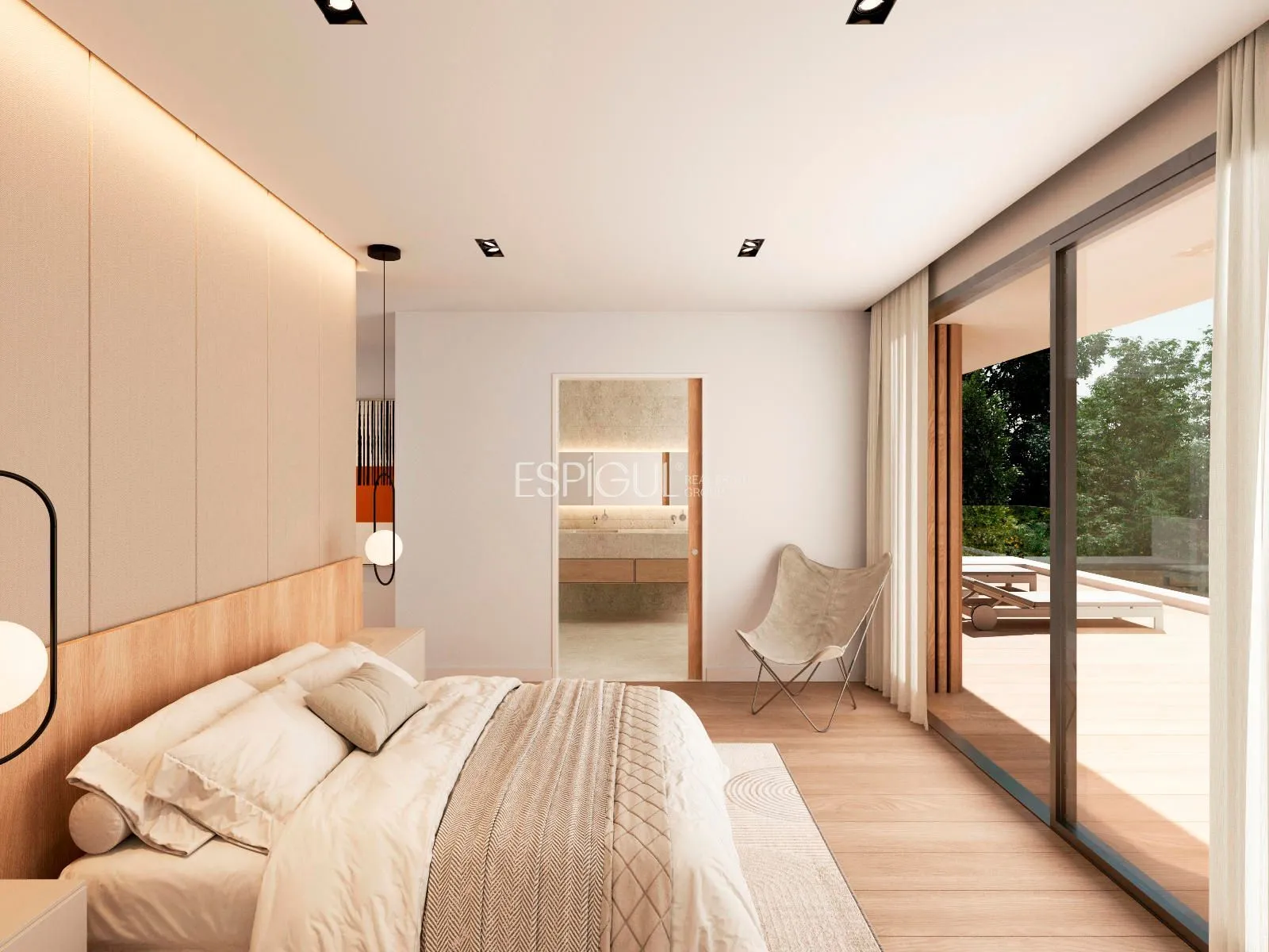 La zona de descanso la encontramos en la segunda planta y está compuesta por; máster suite con vestidor, baño completo con ducha y bañera y salida a terraza de 23 m2 con vistas al jardín. Y, 3 dormitorios dobles con armarios y cada uno con su baño en suite.