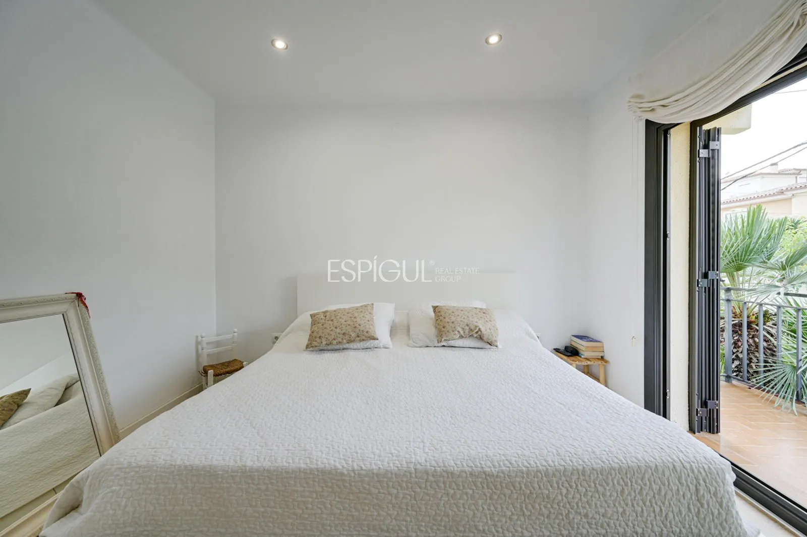 Elegante casa de dos plantas con jardín llano y piscina privada