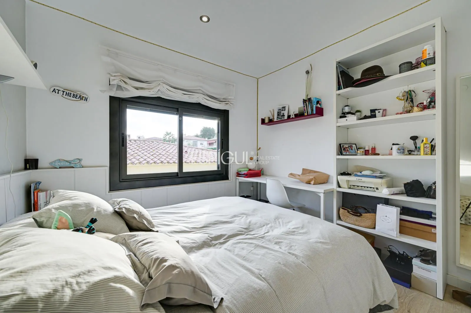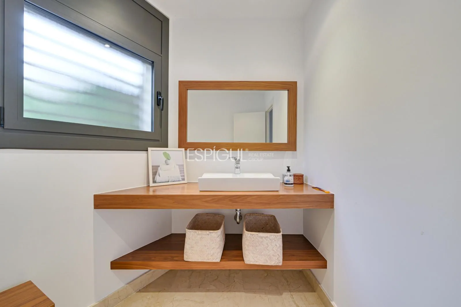 En la planta inferior, a nivel del jardín, se encuentra un porche de 80 m² con comedor de verano y barbacoa, ideal para disfrutar de las reuniones al aire libre. Además, dispone de dos salas con un total de 30 m², perfectas como zona de ocio, despacho o incluso para crear un apartamento independiente. En esta misma planta se ubican el garaje y un aseo de cortesía.
