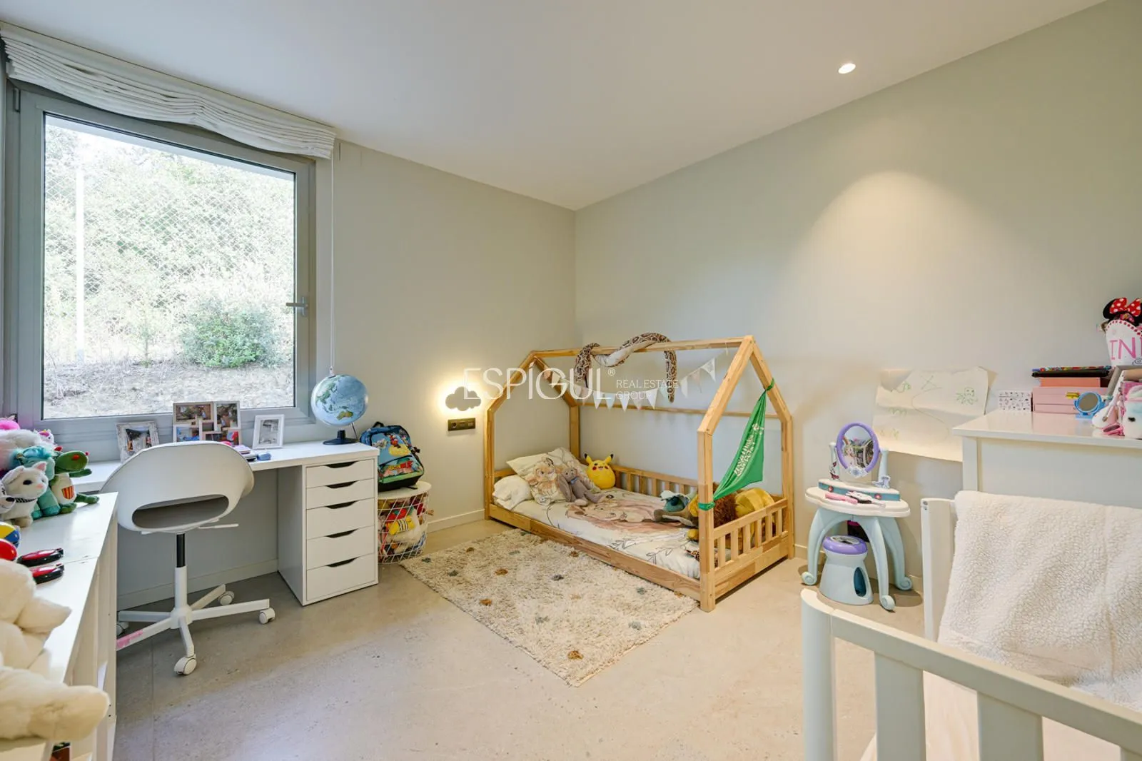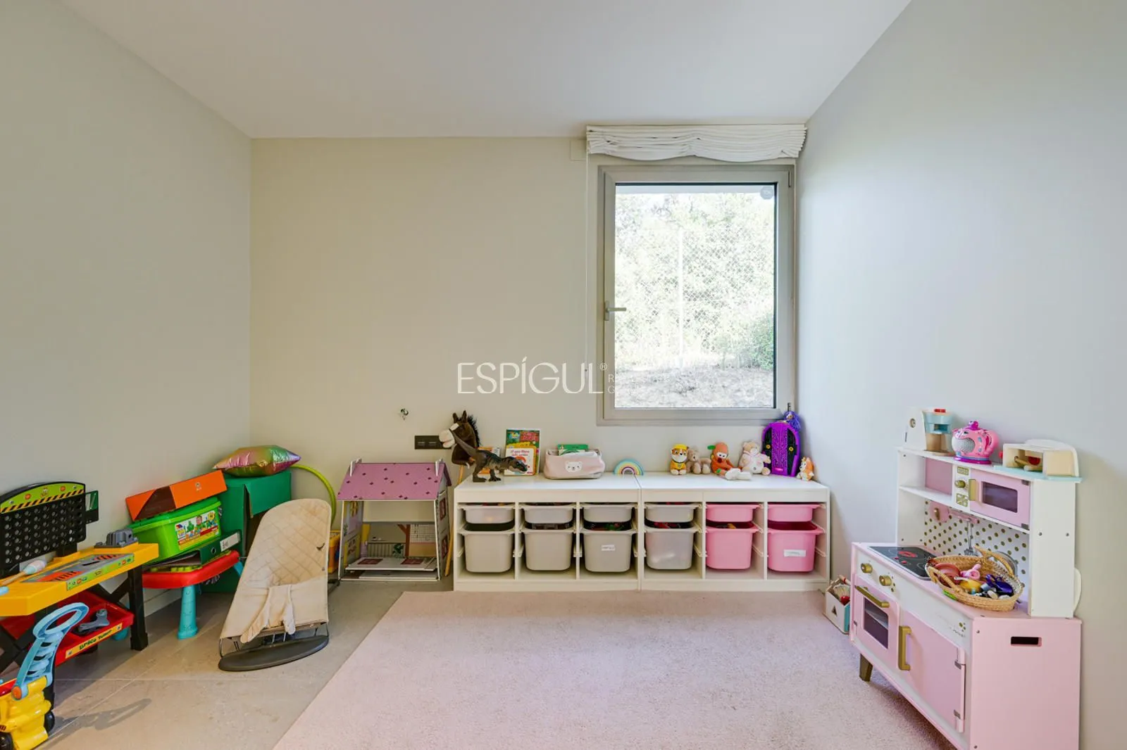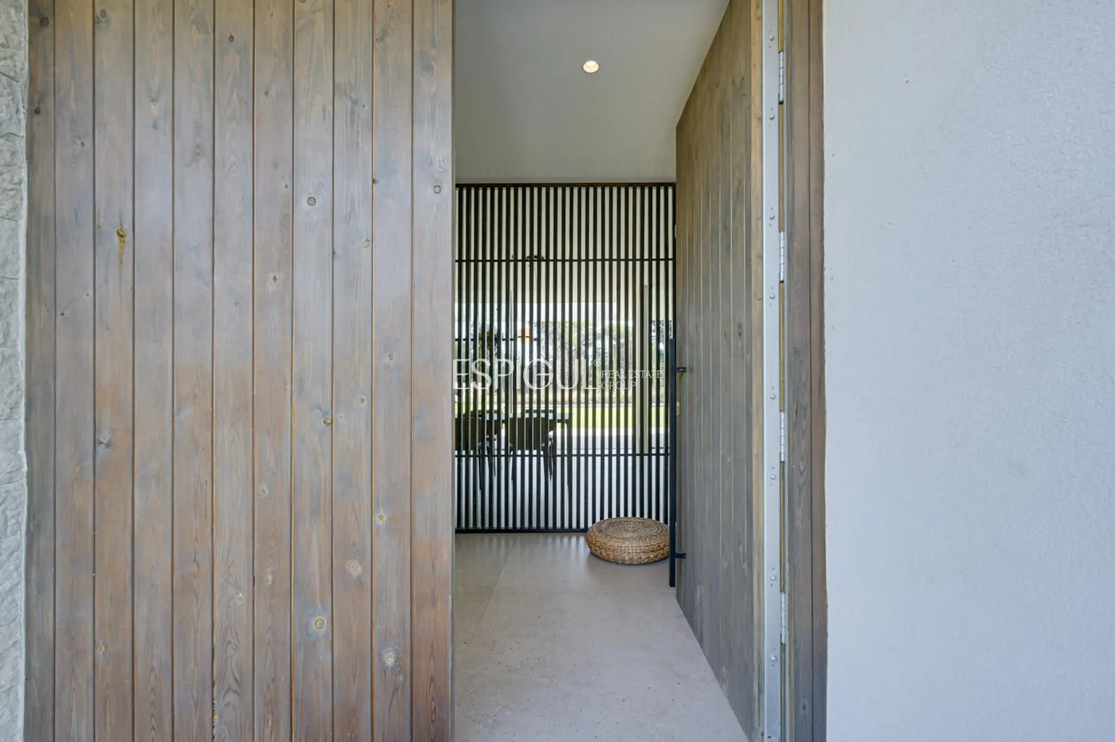 Desde el porche cubierto podrá disfrutar de agradables cenas al aire libre o relajarse junto a la piscina, rodeada de un exuberante jardín mediterráneo. La zona de barbacoa completa este entorno perfecto para disfrutar de reuniones con familia y amigos durante todo el año.