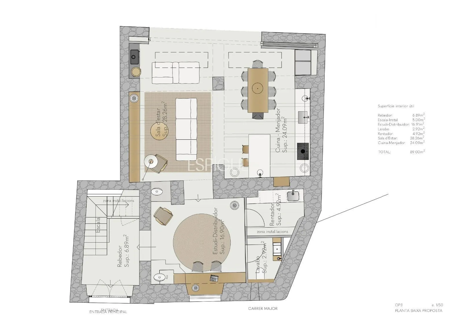 La casa incluye un proyecto de rehabilitación ya diseñado, que te permitirá visualizar todo su potencial desde el primer momento y simplificar el proceso de renovación.