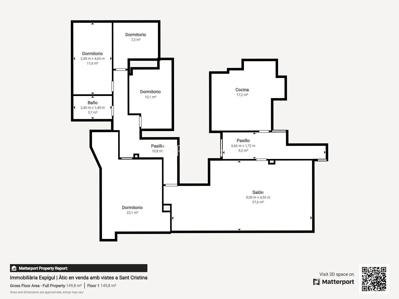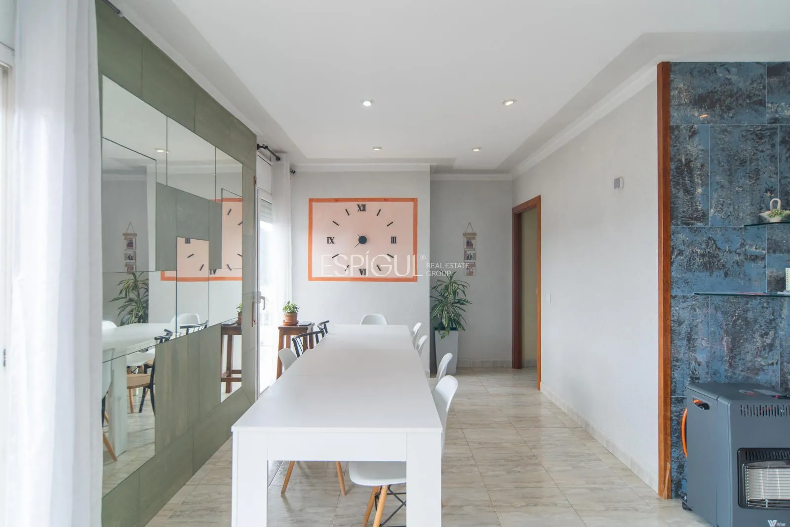 Ático reformado, amplio y luminoso de 5 habitaciones en pleno centro de Santa Cristina de Aro (Costa Brava).Consta de 195 m² útiles. La distribución parte de un recibidor que da acceso a las distintas áreas de la casa. El salón-comedor, de 37 m², cuenta con grandes ventanales que inundan el espacio de luz natural y conducen a un balcón con vistas despejadas.Seguimos con la cocina, equipada con electrodomésticos de alta gama y una práctica península. Dispone de salida directa a una terraza.La vivienda dispone de 5 habitaciones, todas exteriores. Tres de ellas son dobles (una con acceso a balcón y otra con salida a la terraza), mientras que las otras dos son individuales. Además, cuenta con 3 baños completos: uno con ducha y dos con bañera.Además, cuenta con una buhardilla de 100 m², es una zona polivalente perfecta para cualquier uso.Otras características a destacar son, los cerramientos de aluminio con doble acristalamiento, armarios empotrados, sistema de alarma, puerta de seguridad y calefacción por conductos.La finca dispone de parking (no incluido en el precio) y ascensor.
