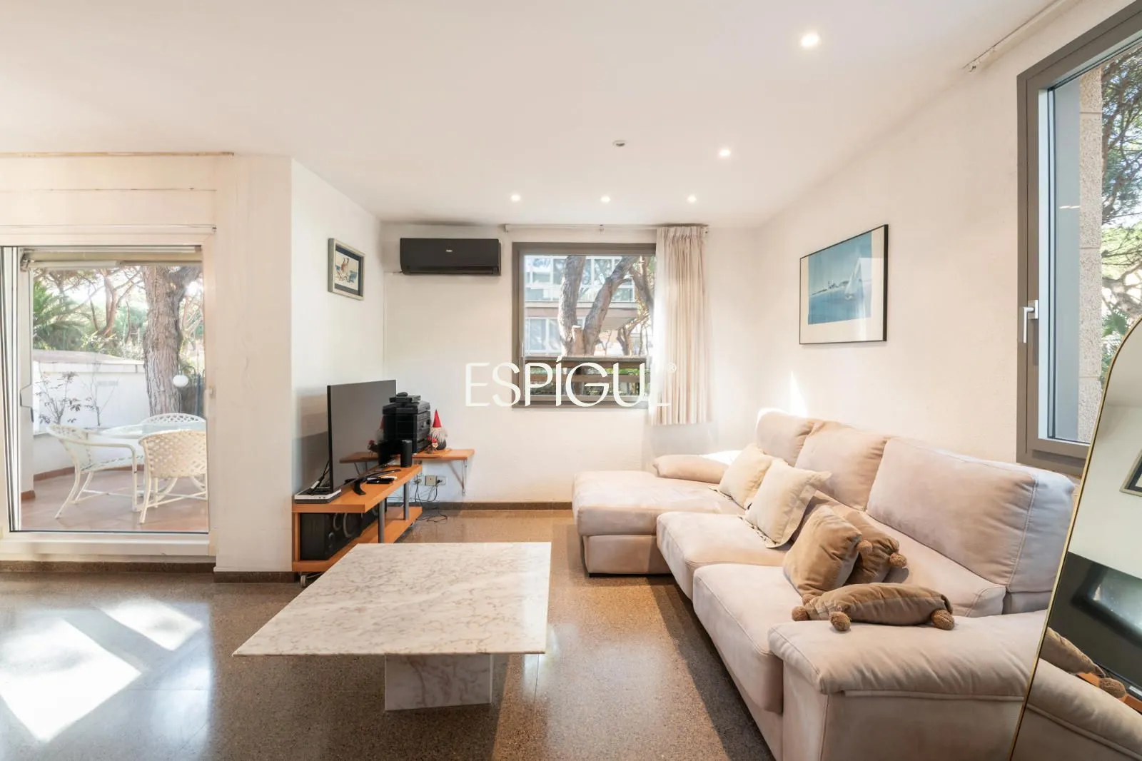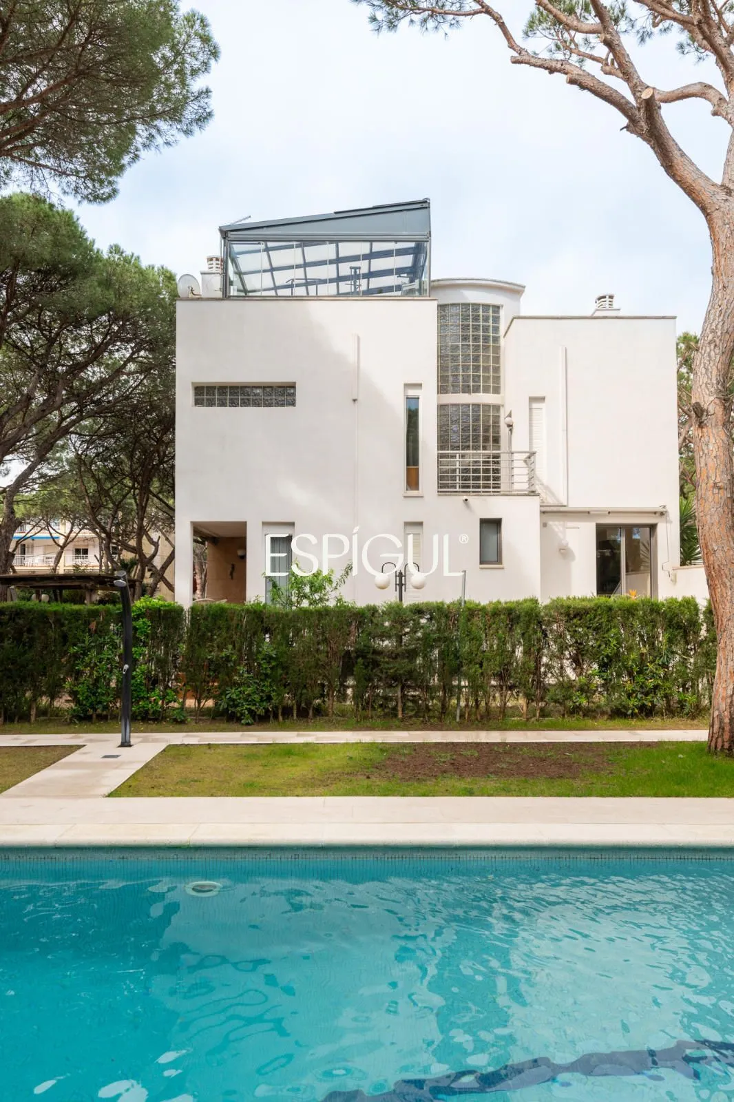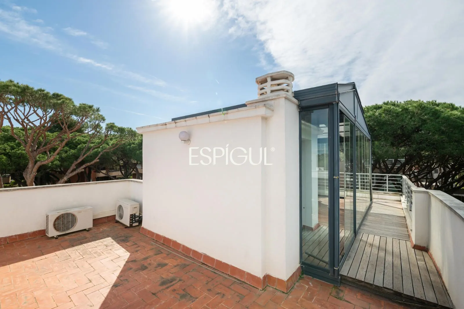 En el exterior, la casa ofrece una terraza con agradables vistas a los pinos, así como un jardín privado con zona de barbacoa, un entorno perfecto para disfrutar del clima mediterráneo en un ambiente íntimo y relajado.