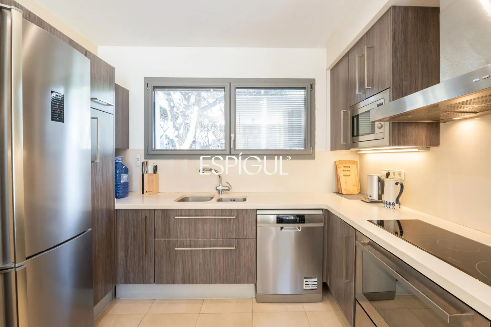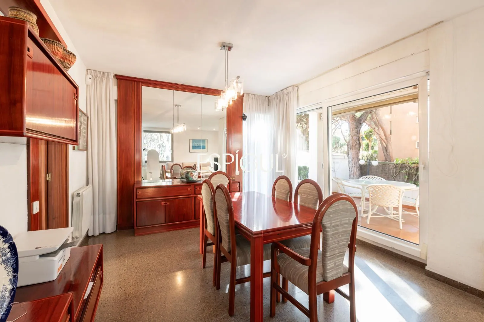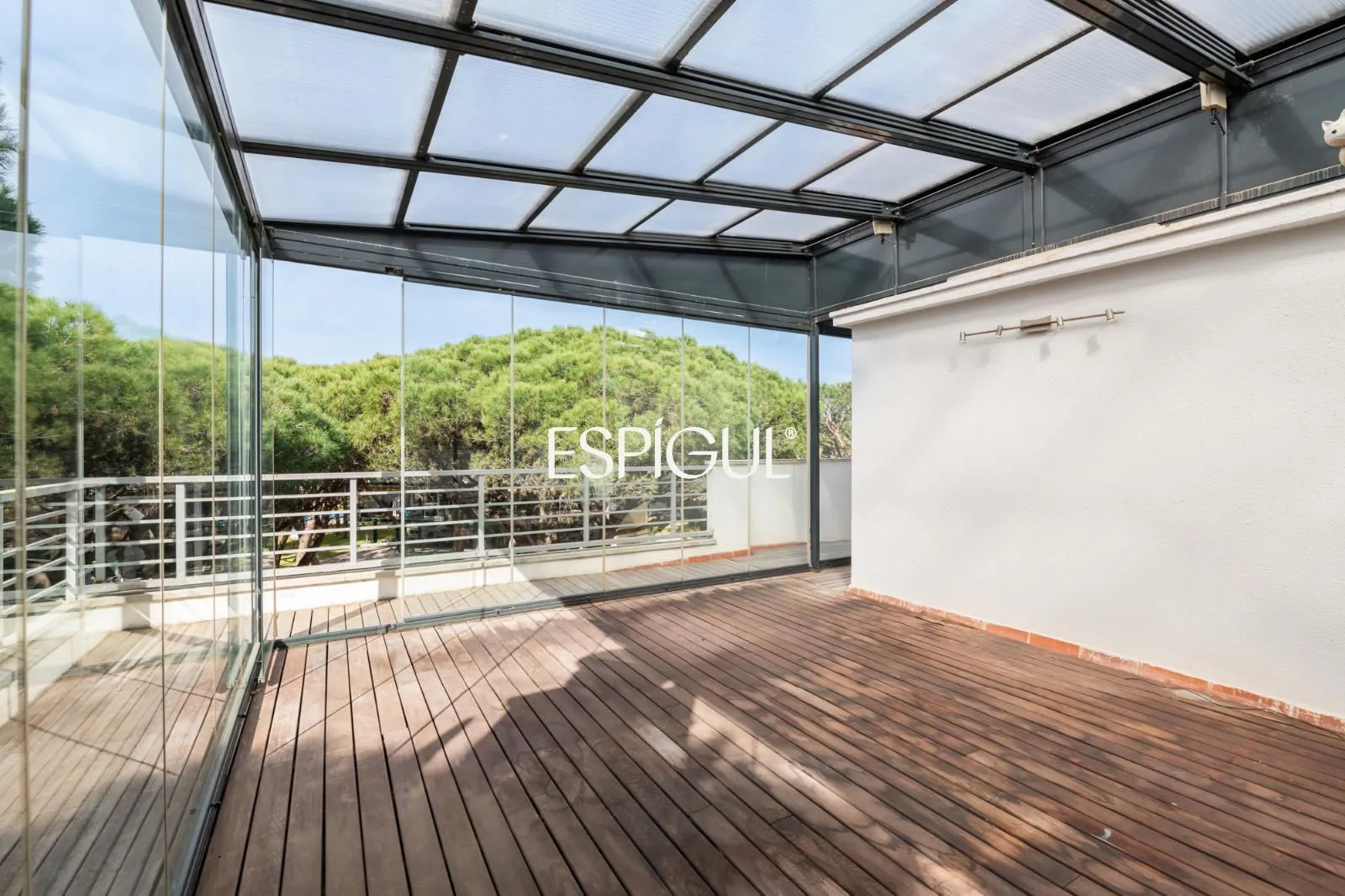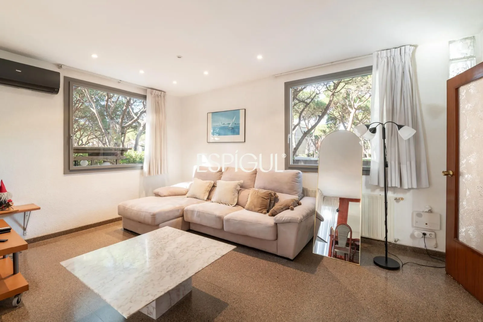 En el exterior, la casa ofrece una terraza con agradables vistas a los pinos, así como un jardín privado con zona de barbacoa, un entorno perfecto para disfrutar del clima mediterráneo en un ambiente íntimo y relajado.