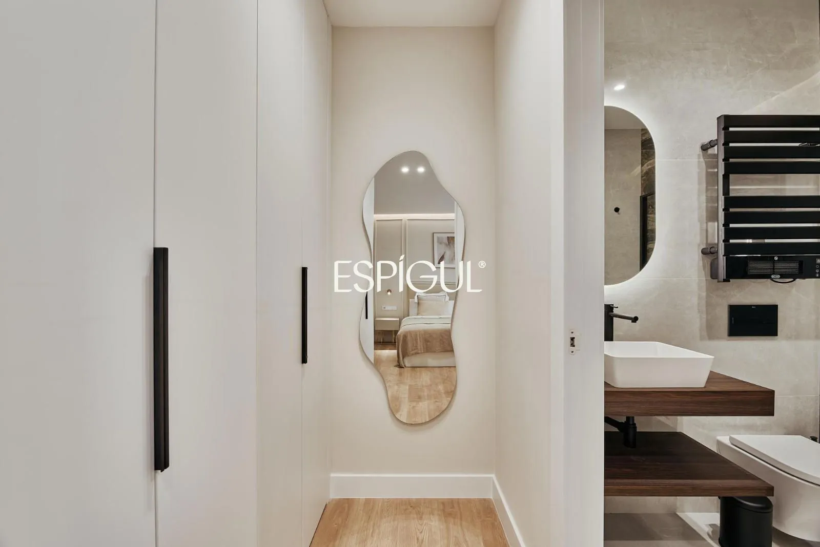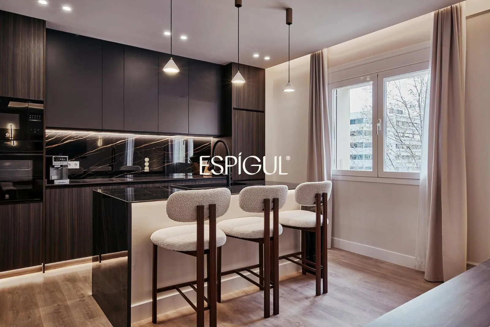 La zona de noche se compone de tres dormitorios y tres baños completos, además de un aseo adicional. La vivienda dispone de vestidor, reforzando el carácter residencial y la organización interior. Se entrega totalmente amueblada y lista para entrar a vivir.