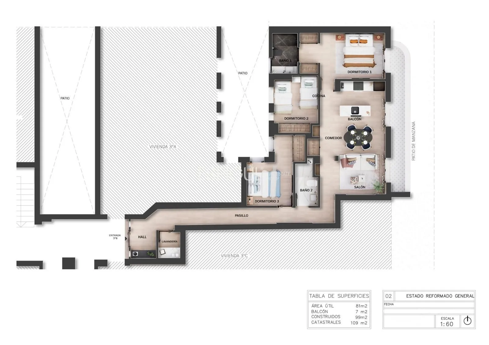 Este espectacular piso reformado se encuentra en la codiciada Calle Velázquez, en pleno corazón del Barrio de Salamanca, una de las zonas más exclusivas y demandadas de Madrid. Situado en la tercera planta de un edificio representativo con ascensor, esta vivienda ofrece el equilibrio perfecto entre elegancia clásica, confort moderno y ubicación privilegiada. Con una superficie catastral de 109 m², el piso ha sido completamente renovado utilizando materiales de alta gama, prestando especial atención al diseño, la funcionalidad y los detalles. Su distribución es amplia y muy bien aprovechada, contando con un luminoso salón comedor que se abre a una encantadora terraza interior de 7 m², ideal para disfrutar de momentos de relax o pequeñas reuniones al aire libre.