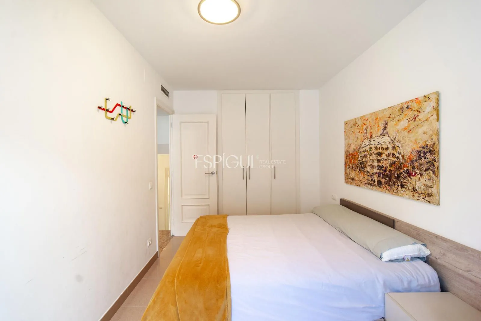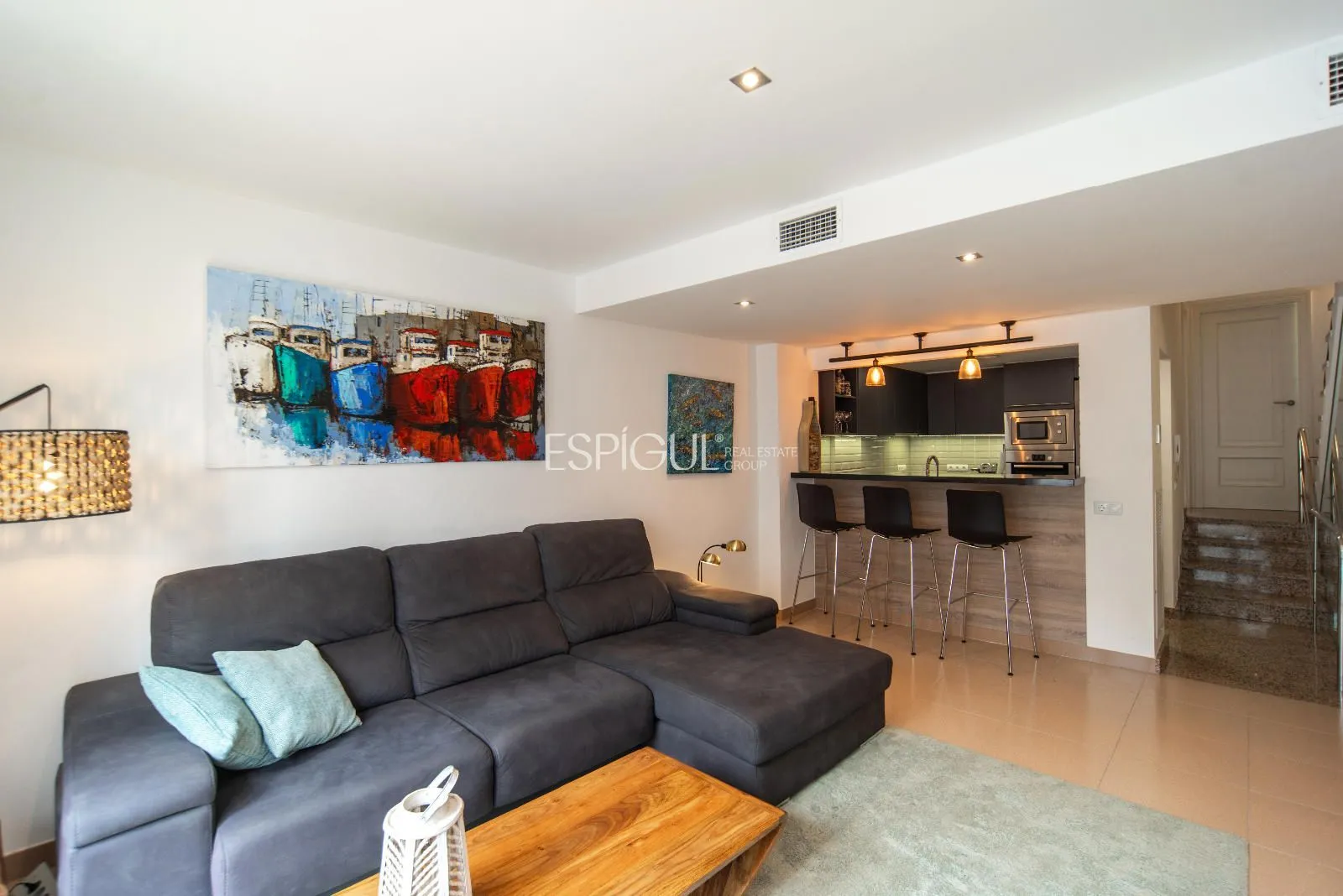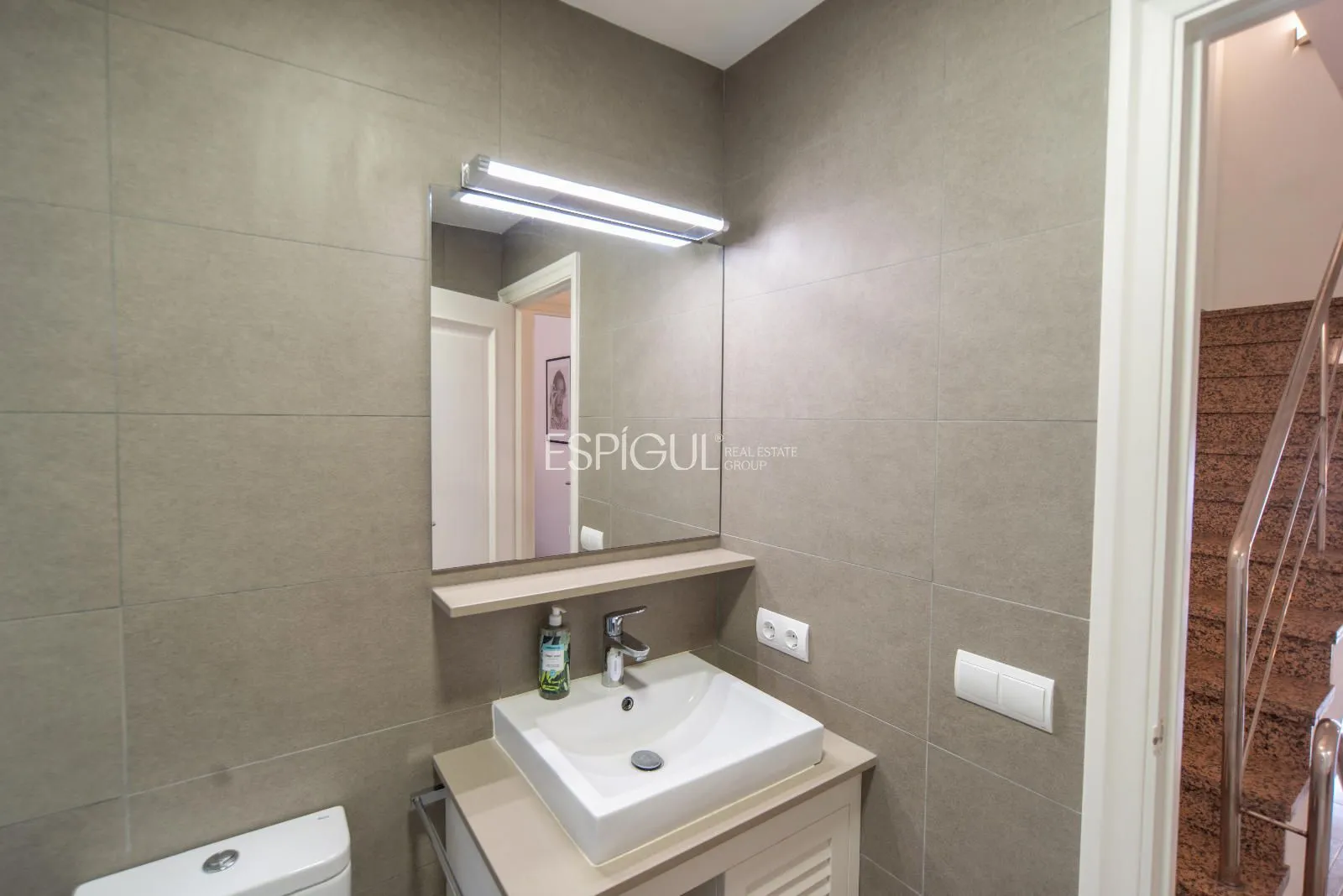 El acceso a la vivienda se realiza a través de un vestíbulo privado con escalera que conecta directamente con la primera planta, donde se encuentran el salón-comedor, una moderna cocina americana y una acogedora terraza chill-out. La distribución en medias plantas permite una excelente organización de los espacios, con un primer dormitorio doble con balcón y un baño completo con lavadero en la primera planta superior.