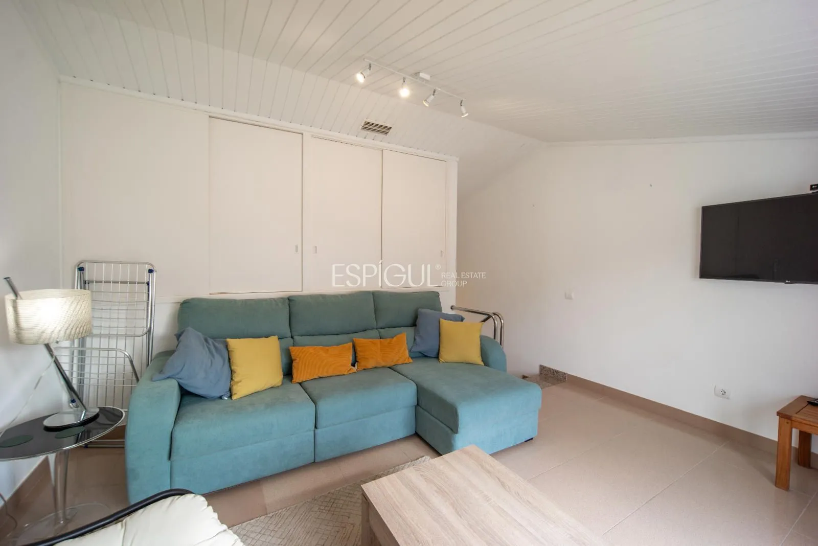 La tercera planta, bajo cubierta, ofrece un precioso estudio con zona de estar y acceso a una terraza solárium superior con vistas panorámicas al pueblo y a la montaña, ideal como posible quinto dormitorio doble.