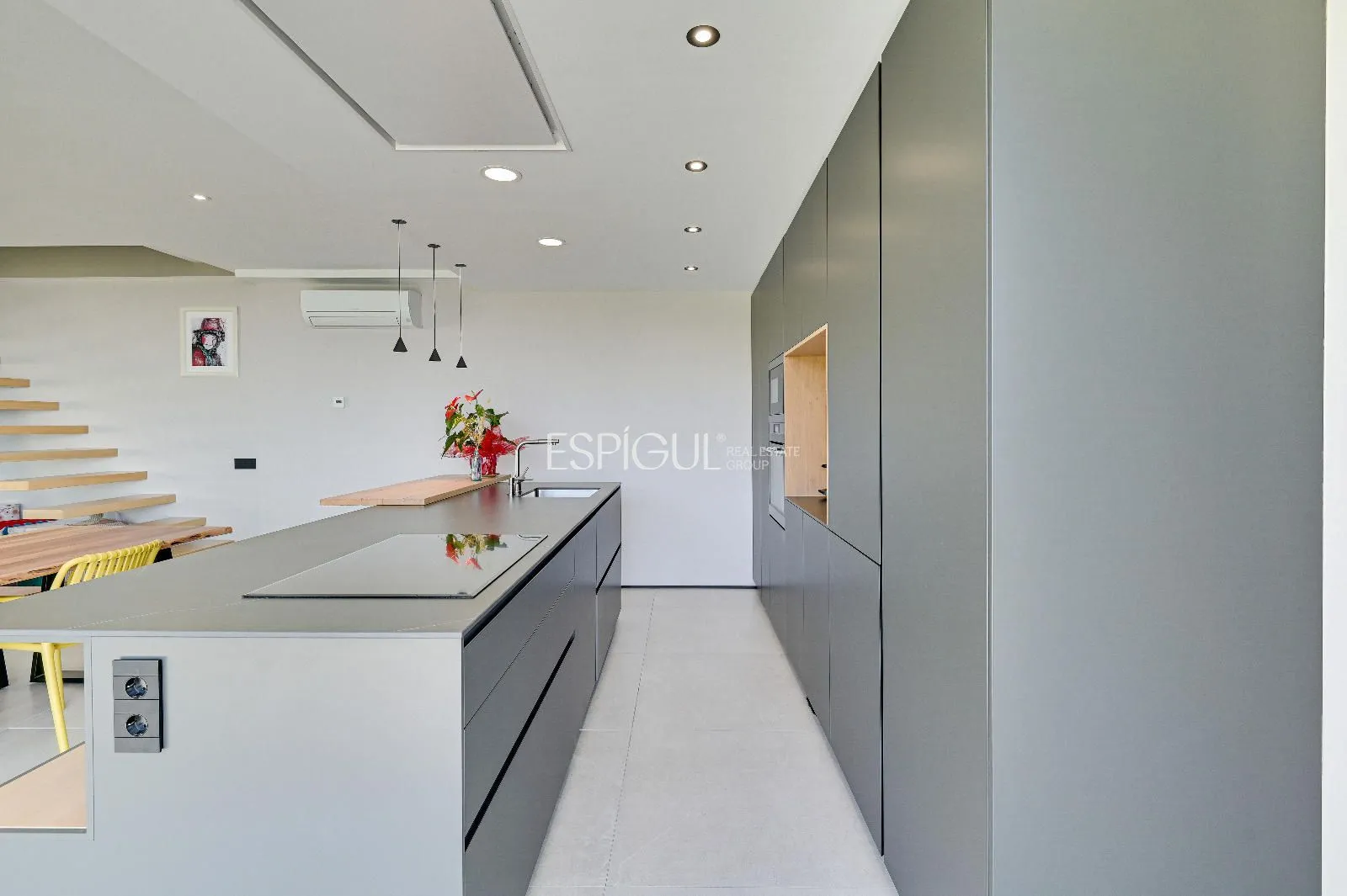 Enclavada en un entorno privilegiado, esta exclusiva propiedad de 445m2 construidos y de líneas modernas combina a la perfección diseño, confort y eficiencia energética. La vivienda se alza sobre cuatro plantas conectadas por ascensor, ofreciendo desde cada rincón espectaculares vistas al mar y a la montaña.