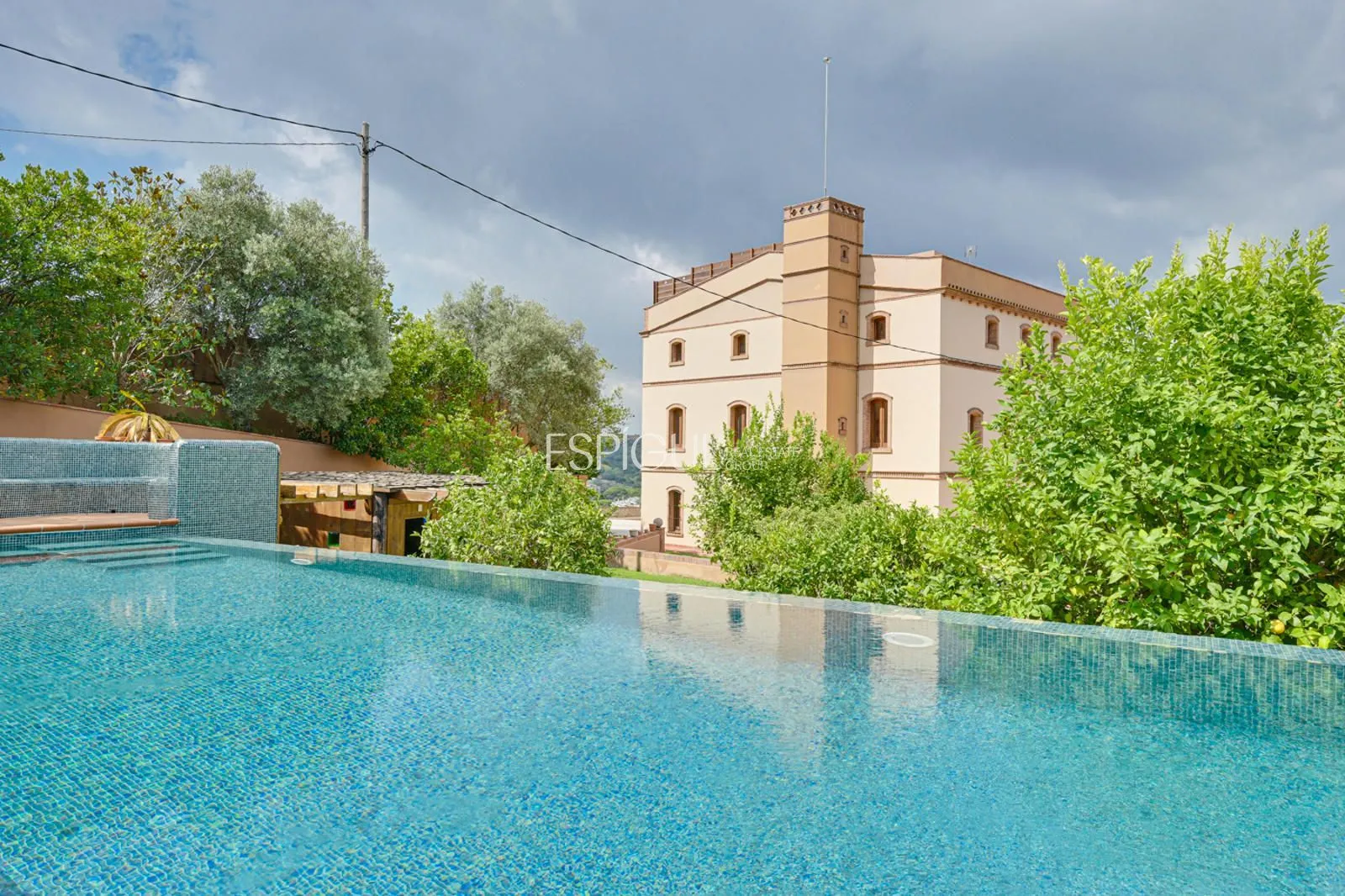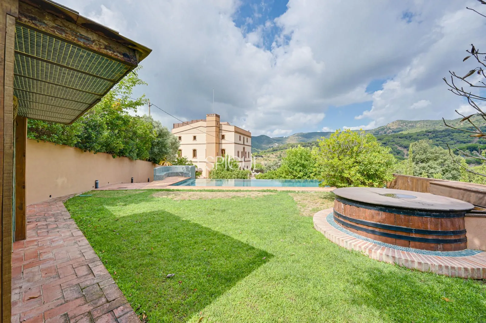 Casa de estilo moderno en Alella con jardín, piscina y vistas a la montaña