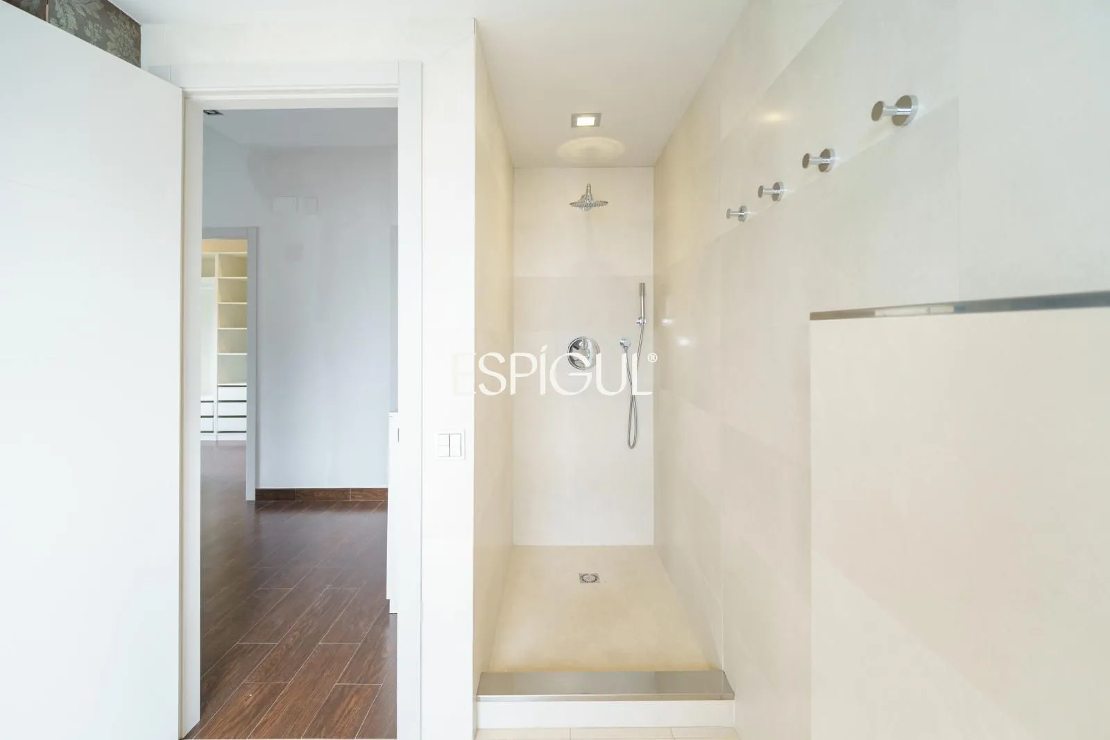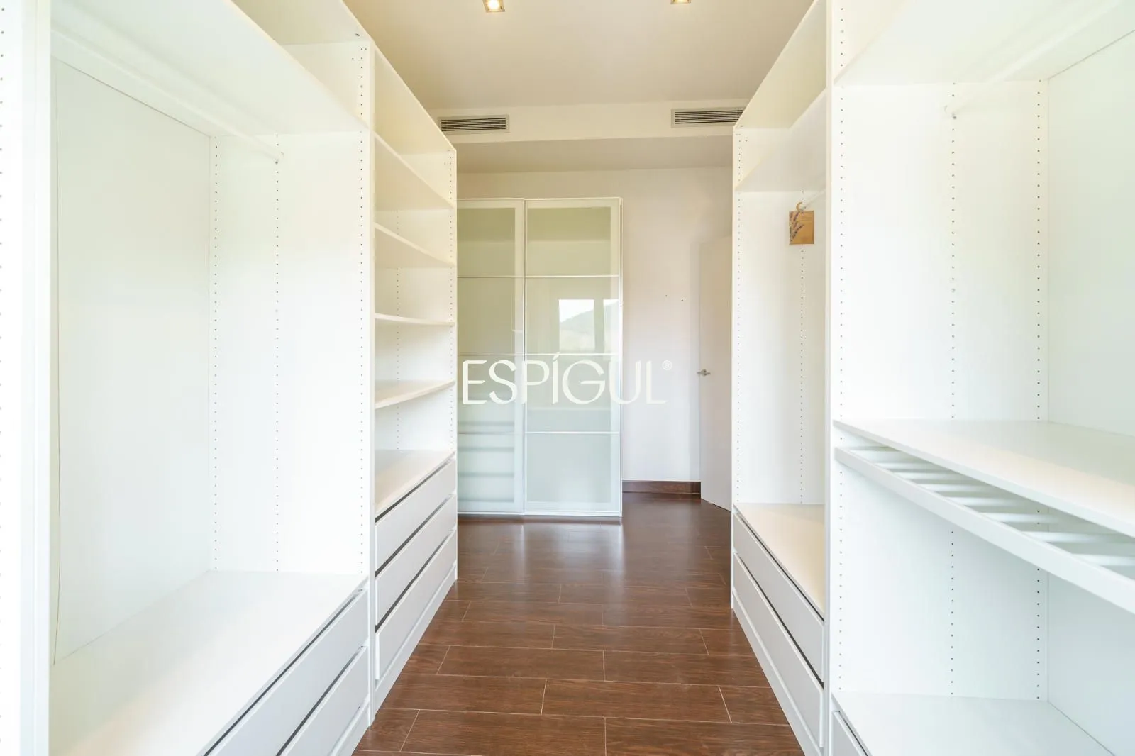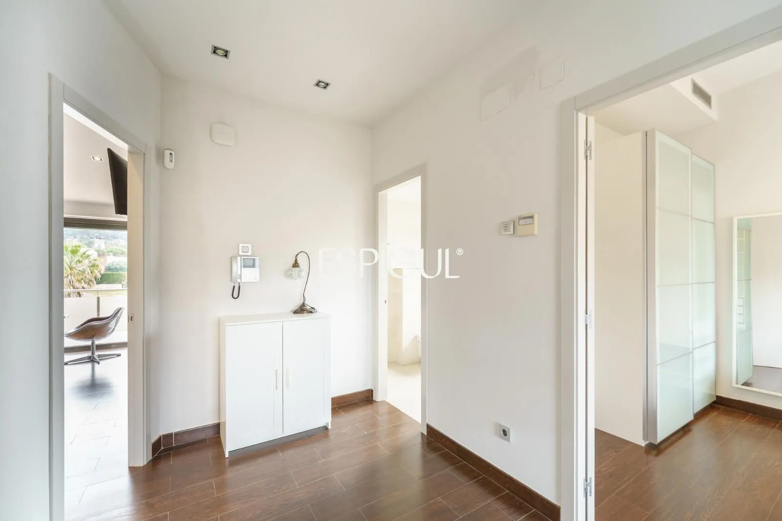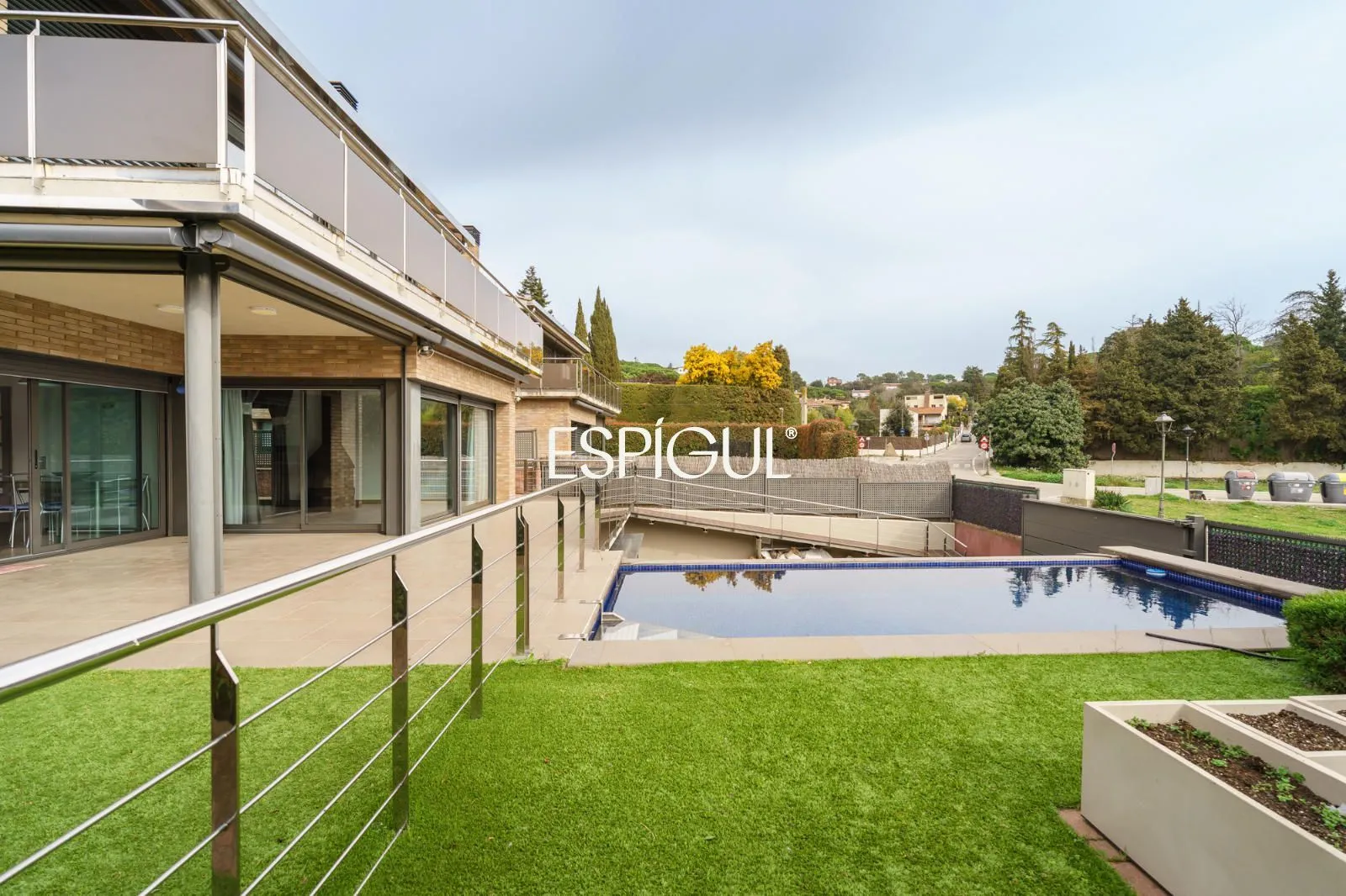 La vivienda cuenta con acabados de alta calidad: carpintería de aluminio Technal, sistema de domótica, aspiración centralizada, piscina salina y calefactable, grifería Grohe, máximo confort y eficiencia gracias al sistema de suelo radiante, persianas motorizadas, toldos.
