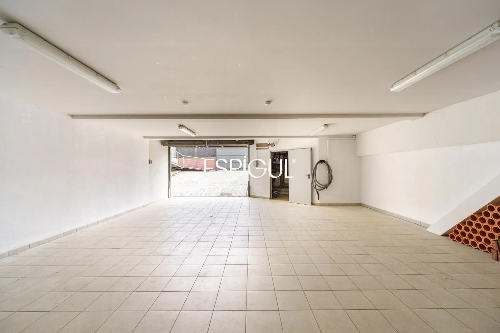 En la planta inferior, la vivienda cuenta con una zona lavadero totalmente equipado con mobiliario funcional, junto a una habitación individual con baño completo, perfecta como dormitorio de servicio o despacho privado. También alberga un funcional garaje con espacio para dos vehículos, accesible directamente desde la calle a través de una cómoda rampa.