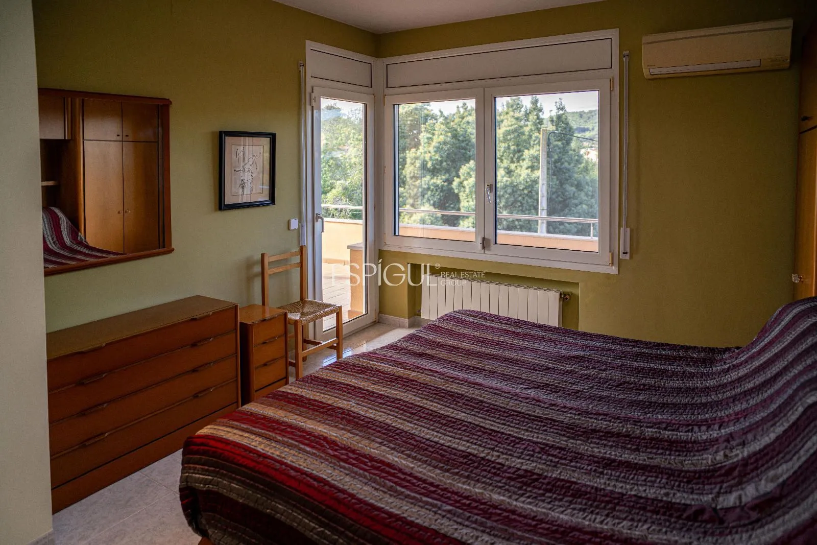 La casa dispone de cuatro habitaciones luminosas, entre ellas una suite principal con vestidor y baño privado, que se abre a una terraza con vistas despejadas al entorno. Los otros tres dormitorios cuentan con amplios armarios empotrados y comparten dos baños completos.